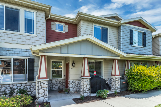 Brand new on the market and move in ready! This Townhome in the Rockwell neighborhood is clean, fresh and up to date. With upgrades like solid surface counters, new carpet, crown moulding, and can lights throughout, it is sure to please almost every buyer. The home sits so that the front door faces the park area. Once inside the great room greats you where dining, family room, kitchen with two pantries and half bath great you. Upstairs you find the master suite with two more bedrooms. The attached 2 car garage is spacious and has plenty of storage and shelving. Low maintenance living thanks to the HOA taking care of landscaping, snow removal and sprinkler systems. Plus the pool, gym and amenities make you feel like your living in a resort, every day of the week. The entire development is located close to shopping, dining, business offices, parks, schools and even walking distance to DoTERRA. Ask for you private showing today!