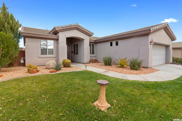 Move in ready,3 bedroom, 2 bath home with an open kitchen/living room. Living room has a fireplace. Secluded and beautifully landscaped backyard with water feature and an enclosed patio. Master bath includes a walk-in tub. In the highly desired Coral Canyon community with the LOWEST HOA fees which include great amenities including pool, pickle ball court, workout room, parks and trails. Square footage figures are provided as a courtesy estimate only. Buyer is advised to obtain an independent measurement.