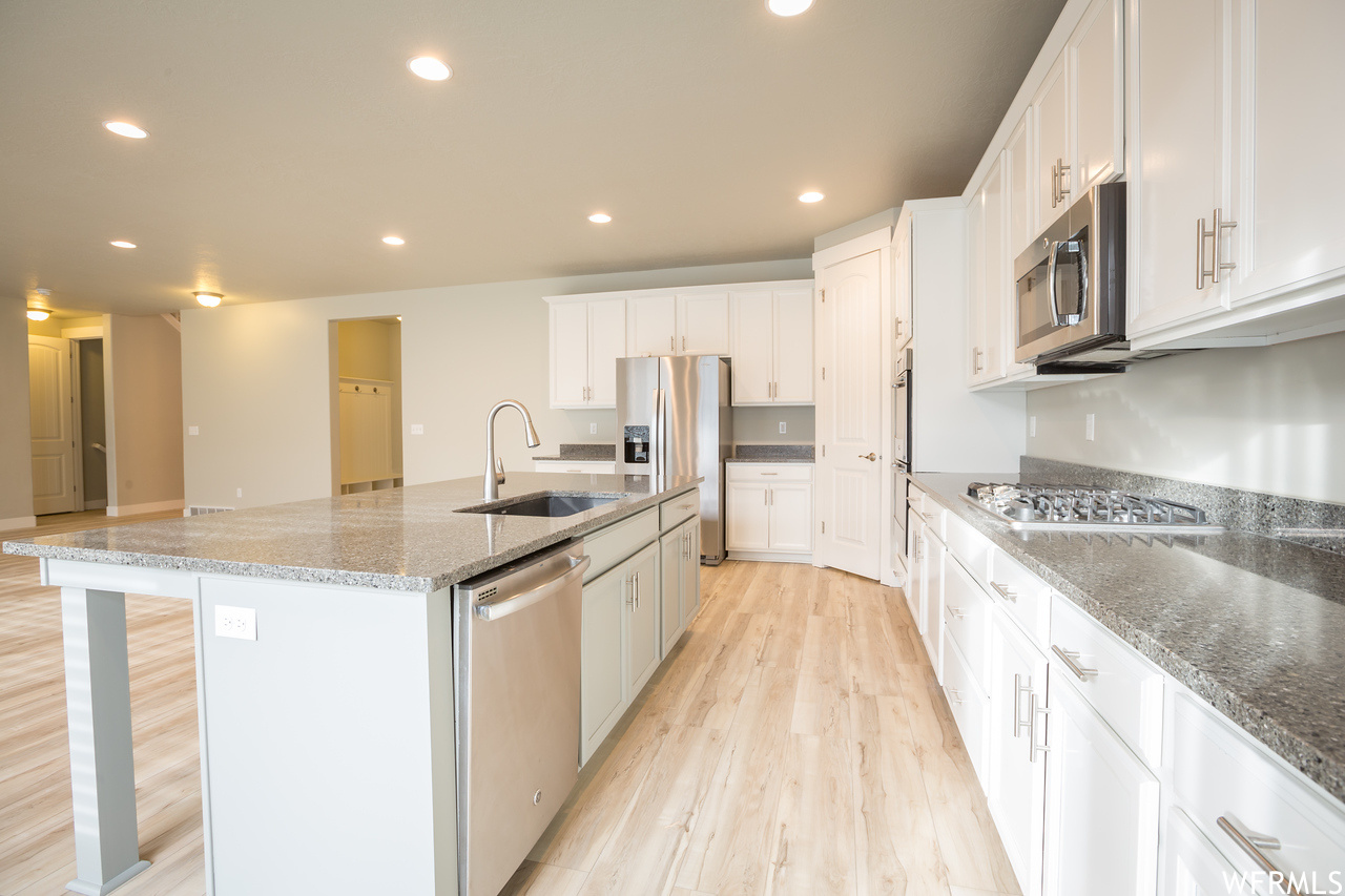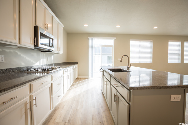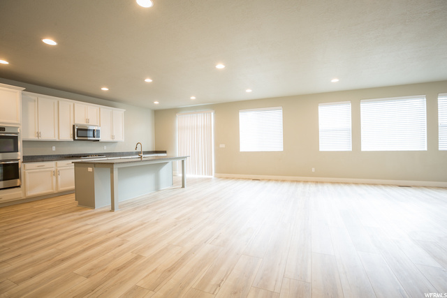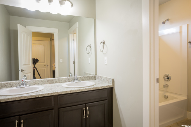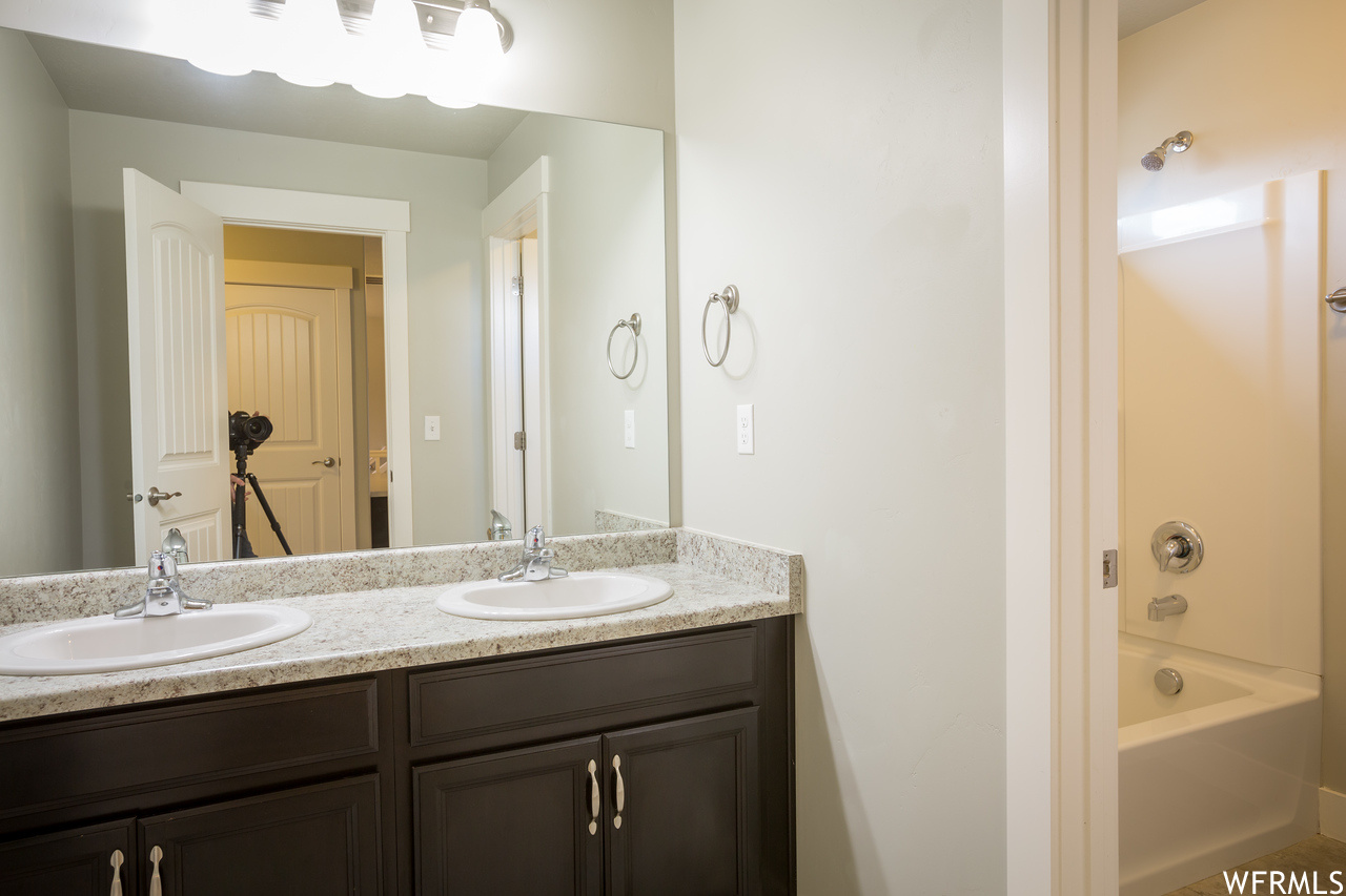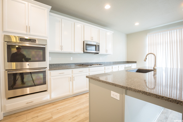 ABSOLUTELY THE BEST DEAL IN VINEYARD!!! Nearly new, large, spacious, two-story house, with master bedroom and bathroom on the main level. New laminate wood flooring on the main level, new carpet on the main and second levels, and new paint throughout much of the house. Need space for entertaining? This home has it all - a chef's kitchen, with tons of counter space, double ovens, gas cook top and large pantry. A large upstairs loft for kids to play and do their homework. A fully furnished basement with its own kitchenette and large living area. How would you like to take the kiddies to the park, pool, clubhouse, and one of the best splash pads in the state. Waters Edge offers all of these amenities to its residents.