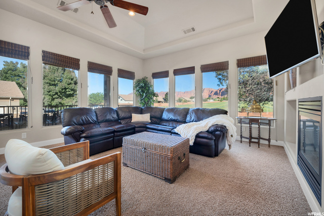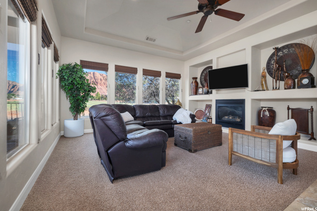 Relax, kick back, and enjoy the views of the majestic red rocks. This gourmet kitchen boasts gorgeous granite countertops, gas built in range, and lots of space to invite a few cooks in to the kitchen! The main floor offers two bedrooms and two baths, including the master bedroom, which has a huge walk in closet with direct laundry access. The master bath offers plenty of space and a separate soaking tub and shower. Guest bedroom also has a separate outdoor access in case you would like to use it as an office. If square footage is what you are looking for ... we have that too. Two large guest rooms are located in the daylight basement , as well as a full bath and second laundry room. Invite all the friends and family over because the downstairs entertaining area has plenty of room. An added bonus to this home is a theater room and tons of storage. You can never have TOO much storage space. Room for all of those Halloween and Christmas decorations, food storage, etc inside instead of in the garage. This home is located on a quiet lane that is shared with three other homes. Great location, great views, no HOA, all for under $188/sq ft.