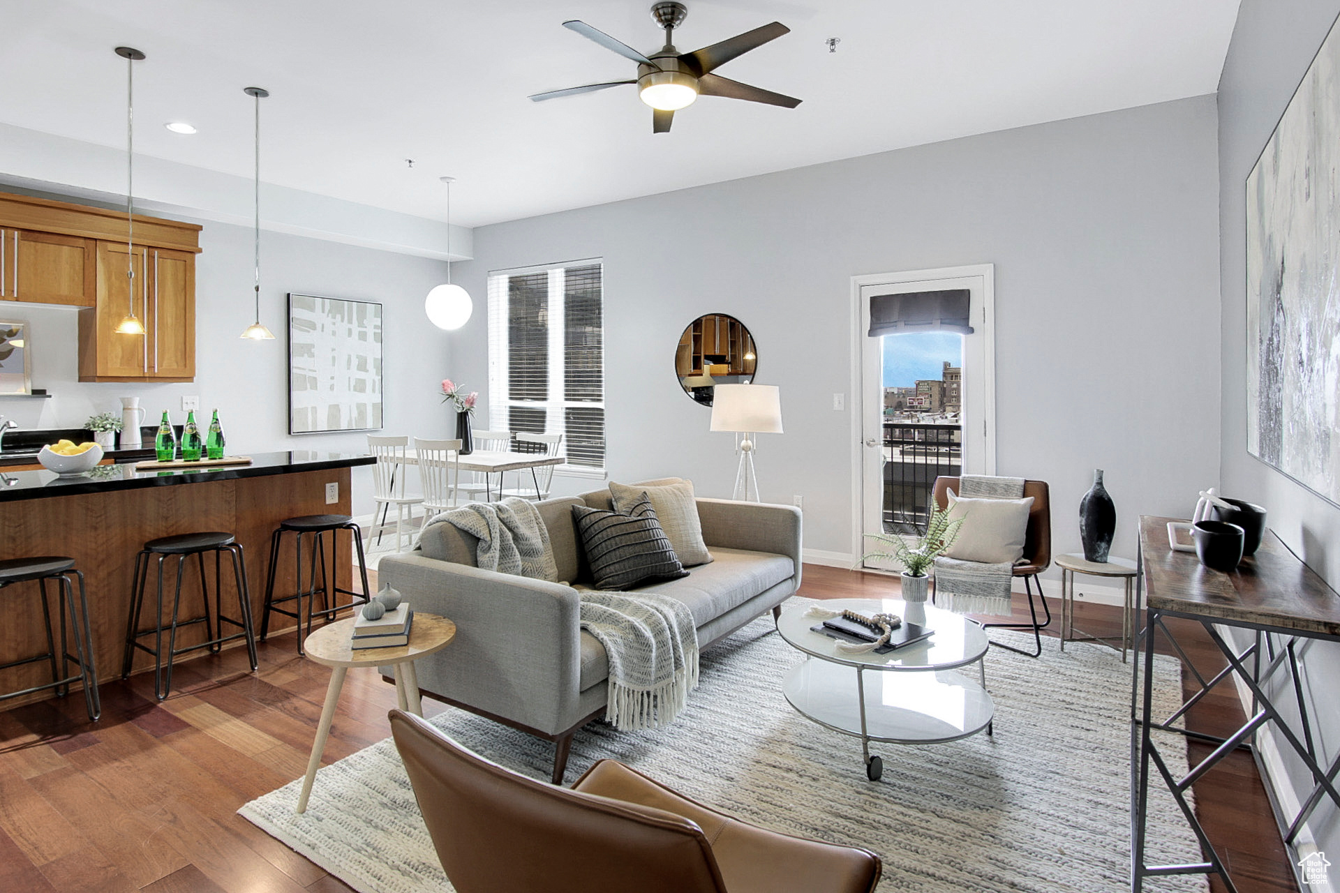 Discover your urban retreat in the heart of vibrant Salt Lake City! This well-crafted condo perfectly blends modern elegance with city convenience, strategically located in downtown. Enjoy easy access to transportation, City Creek Mall, parks, cafes, and dining. Upon entering, the open-concept kitchen seamlessly flows into the living area, filled with natural light from newly installed double-panel windows and a balcony door. Hardwood floors and tasteful tiles enhance the space's aesthetic. The 6th-floor balcony, with extra width and length, provides breathtaking city and mountain views visible from the kitchen, living room, and primary bedroom. Delight in moments at the updated spa, BBQ area, clubhouse, gym, and the building's stylish ambiance. Equipped with an in-unit washer, dryer, secure storage, and a dedicated parking space, convenience is a priority. Seize the opportunity to infuse your style and transform this move-in ready gem into your dream home.