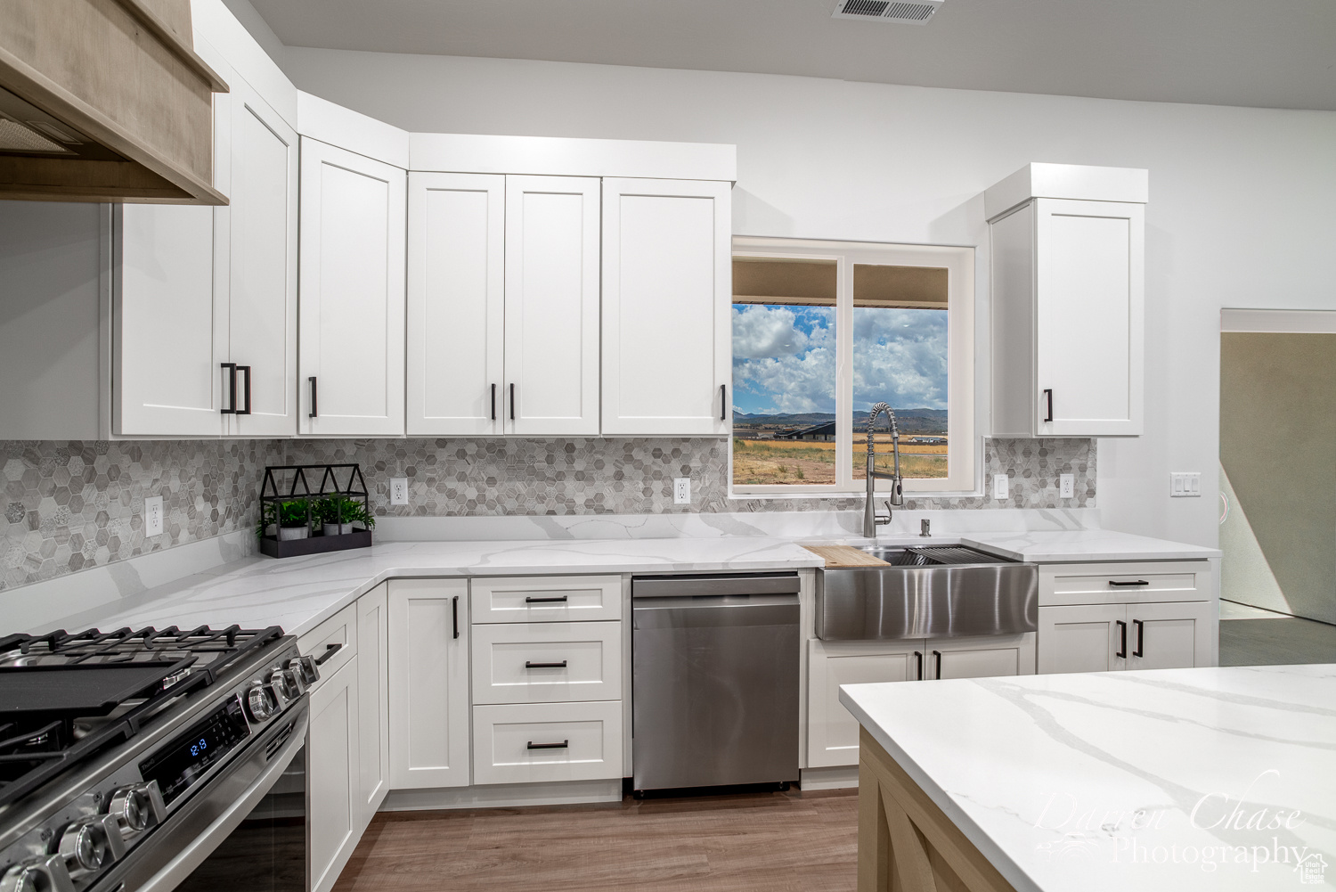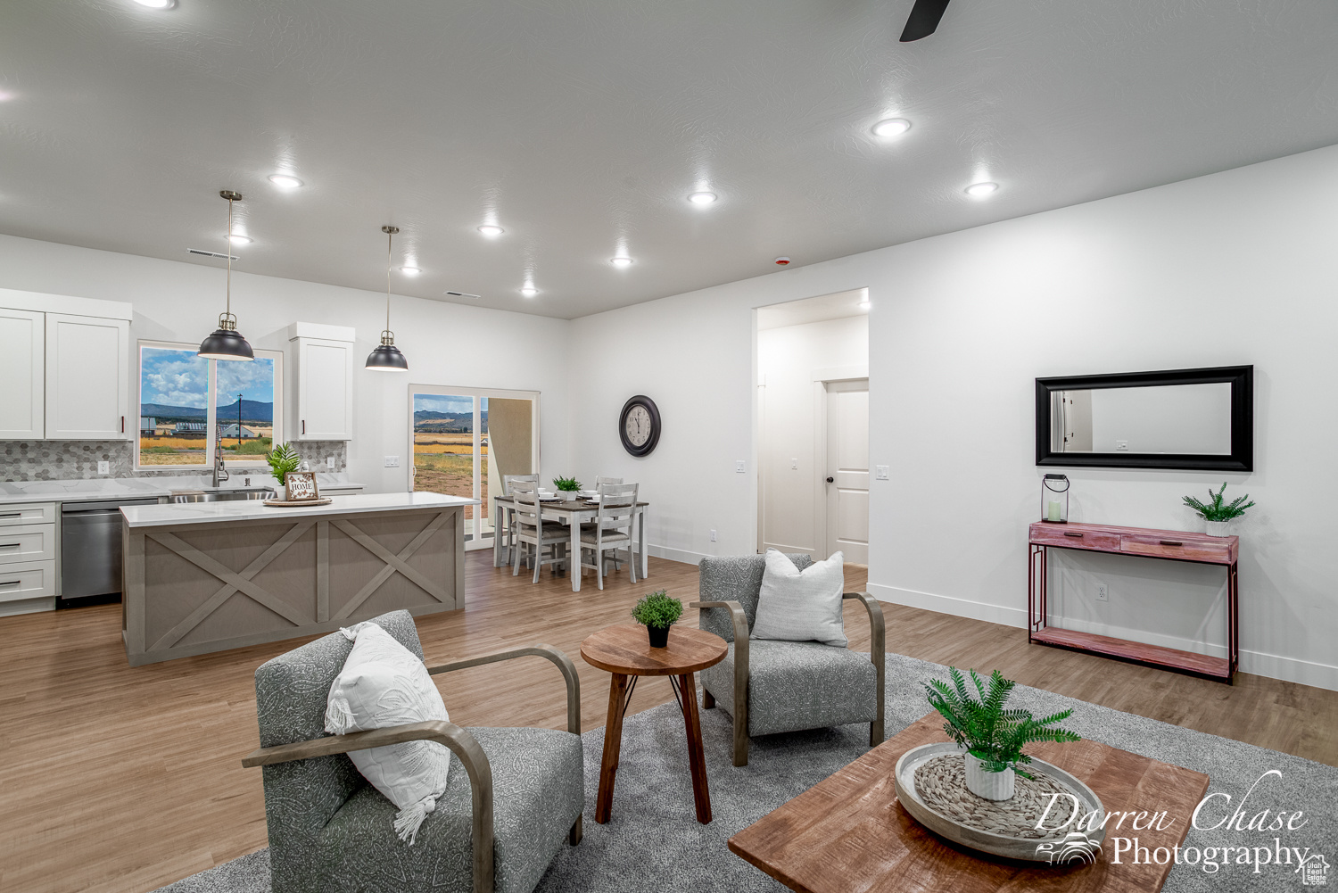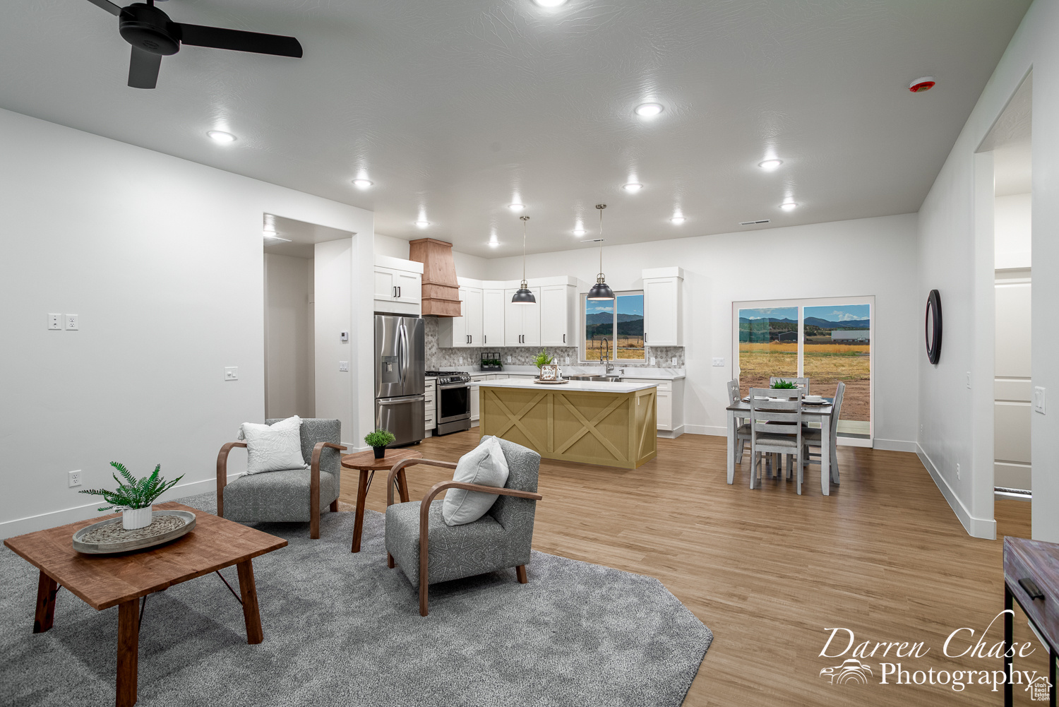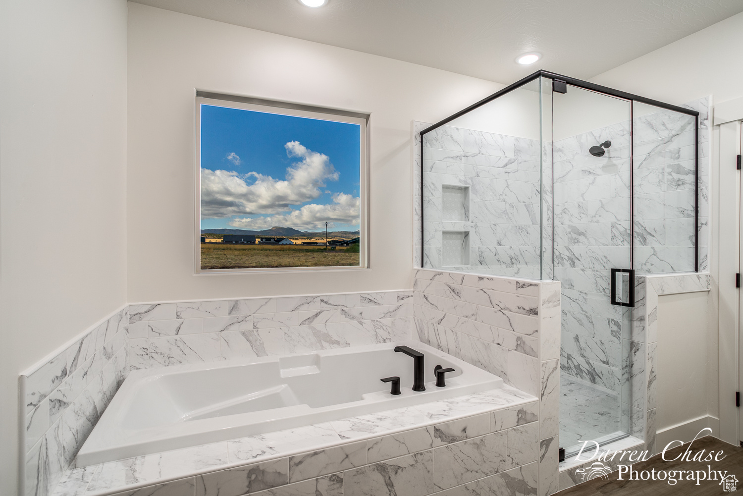 New Custom Home with Mountain Views in Enterprise, Utah This home features a thoughtful, open-concept layout designed for comfortable living. The gourmet kitchen is a chef's delight, complete with a massive walk-in butler's pantry and elegant marble countertops. The master suite is your personal oasis, boasting a beautiful tile shower, a soaker tub, and a large walk-in closet that connects directly to the laundry room for ultimate convenience.