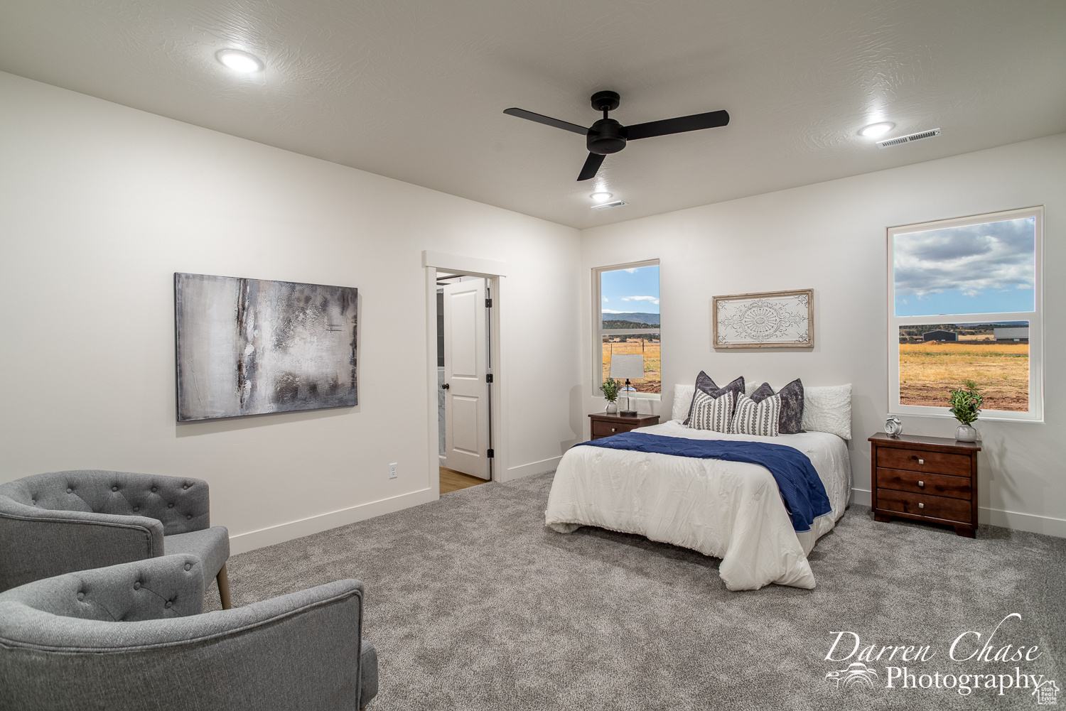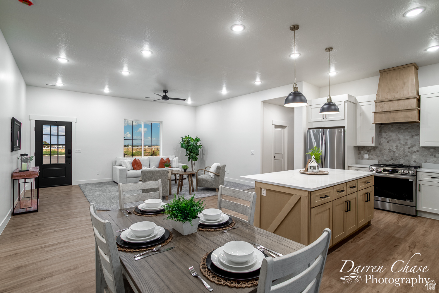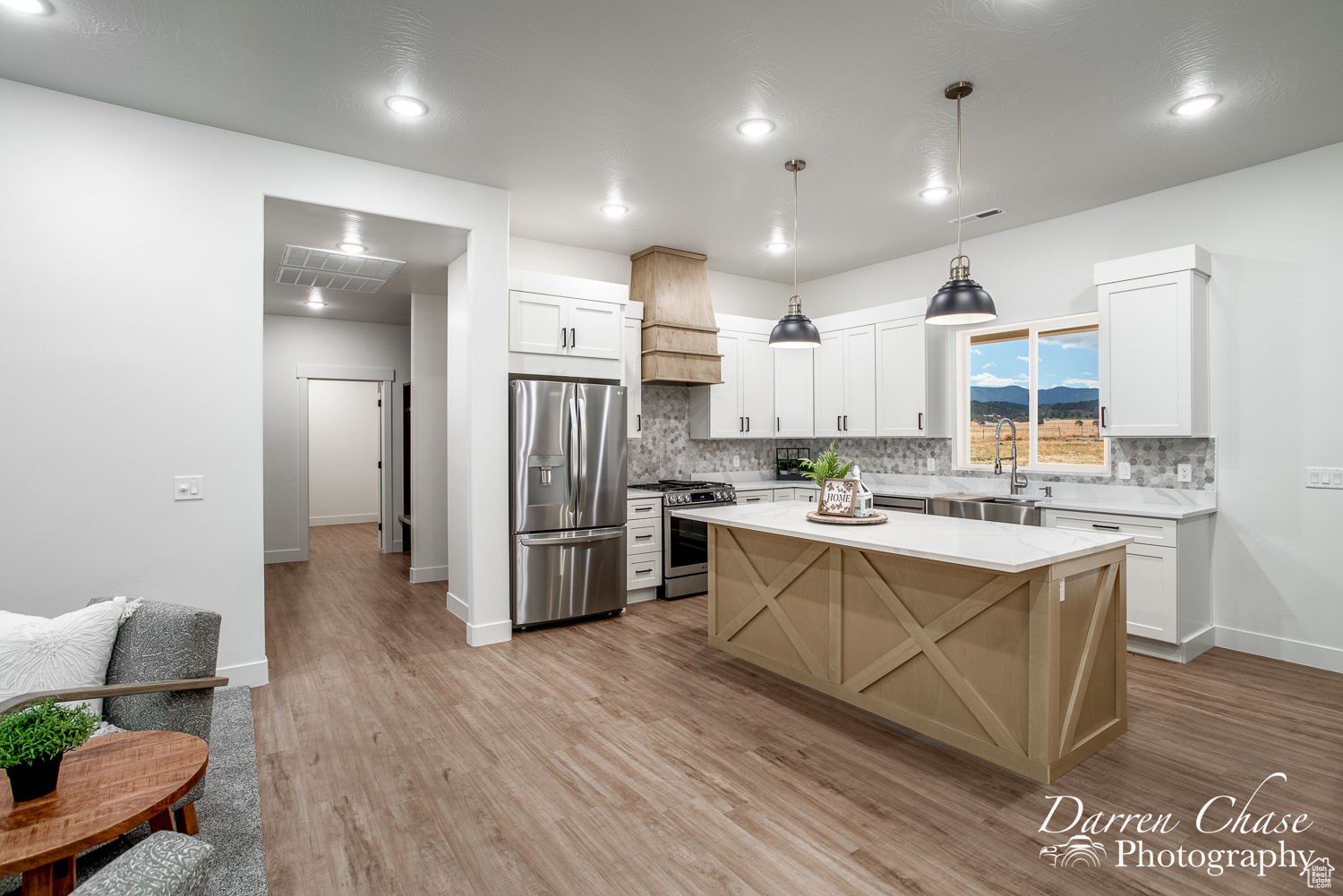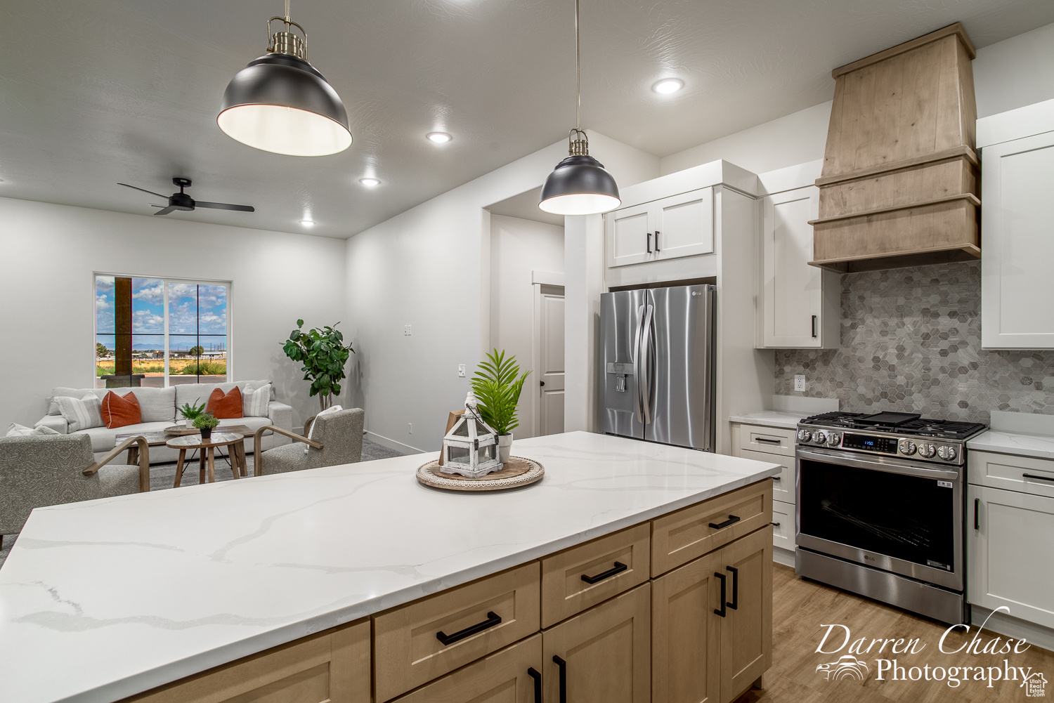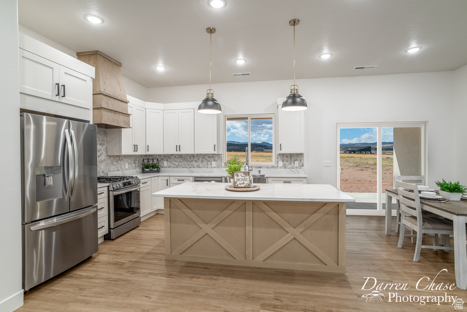 New Custom Home with Mountain Views in Enterprise, Utah This home features a thoughtful, open-concept layout designed for comfortable living. The gourmet kitchen is a chef's delight, complete with a massive walk-in butler's pantry and elegant marble countertops. The master suite is your personal oasis, boasting a beautiful tile shower, a soaker tub, and a large walk-in closet that connects directly to the laundry room for ultimate convenience.