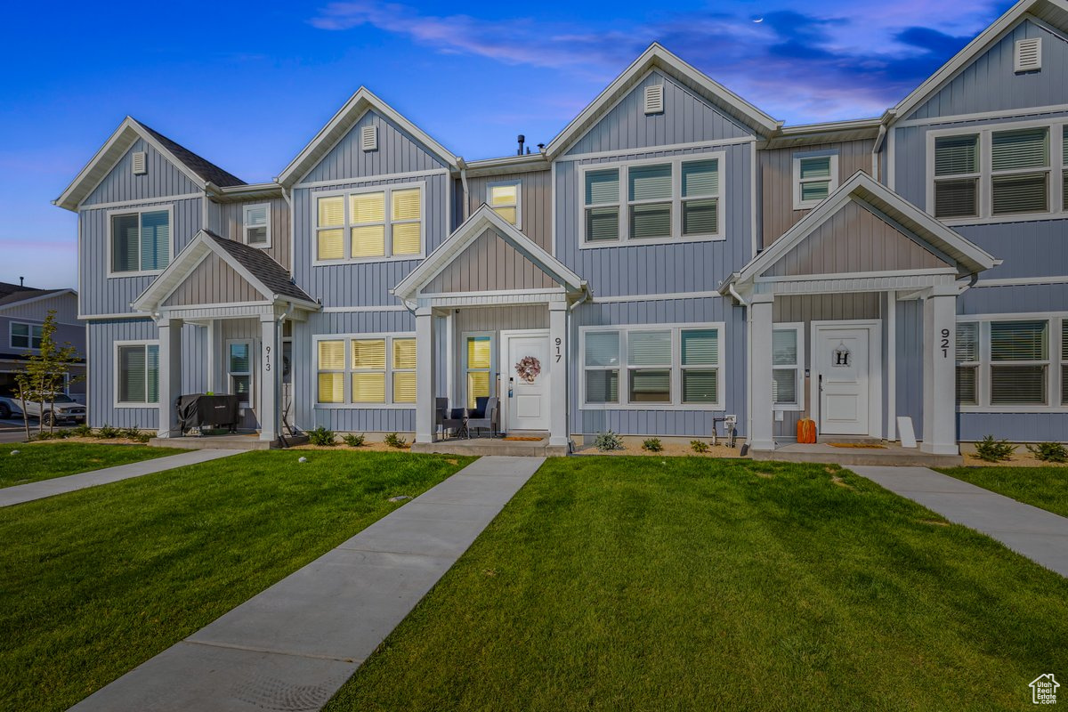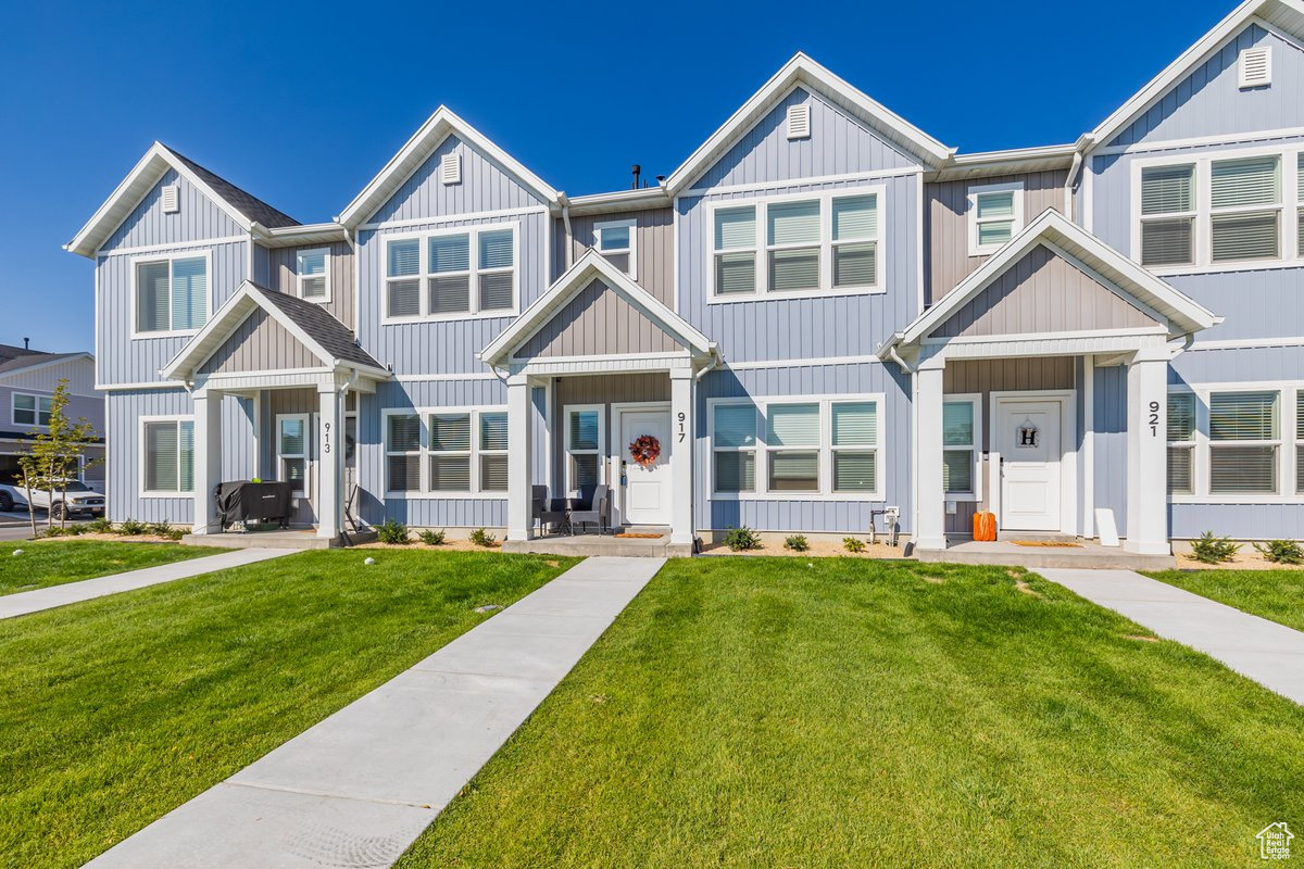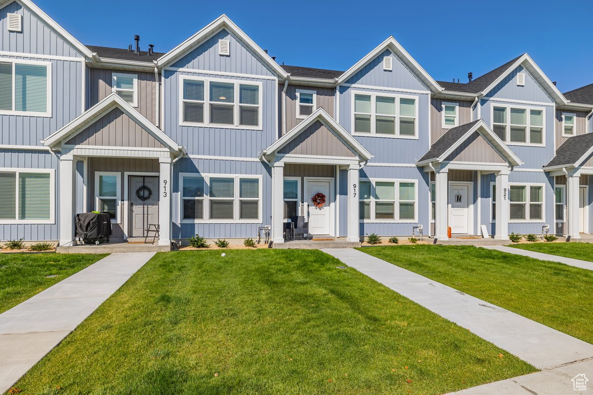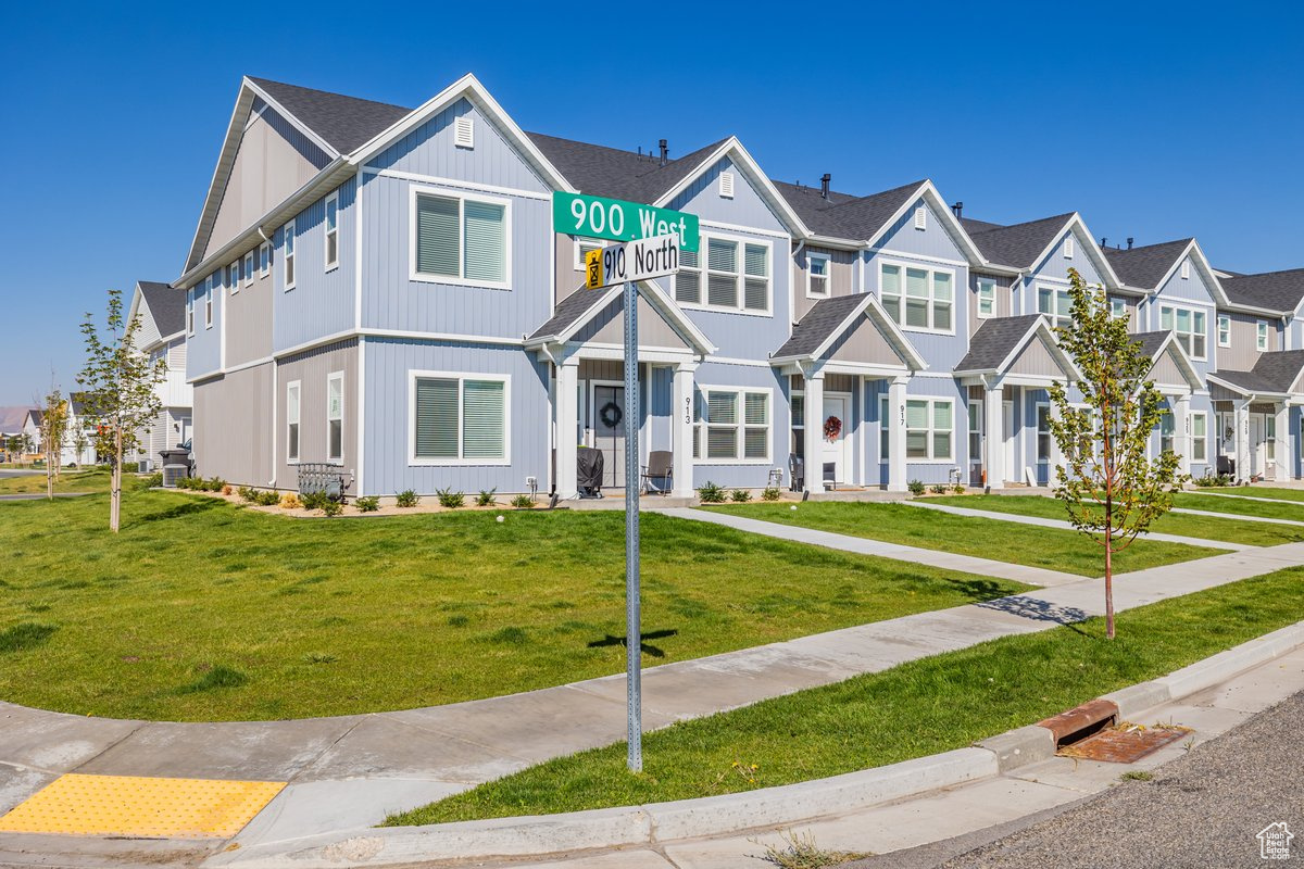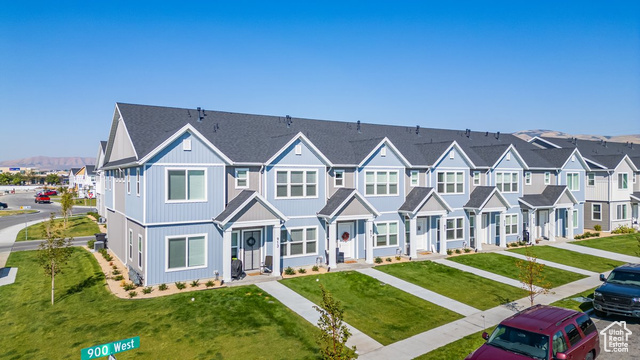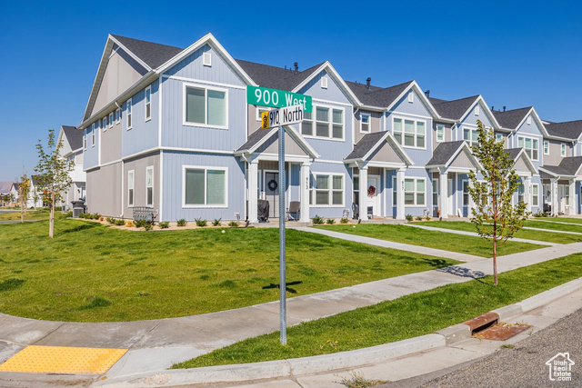 This stunning townhome offers an open concept on the main floor, with 9 ft ceilings on the main, Quartz kitchen counter tops throughout, white cabinets through out, and a spacious pantry. Enjoy an owner suite with double vanity sinks and large W.I.C. Amazing location just minutes from down town Tremonton. This particular unit has one of the largest grass area in the community.