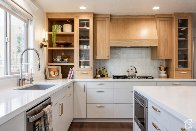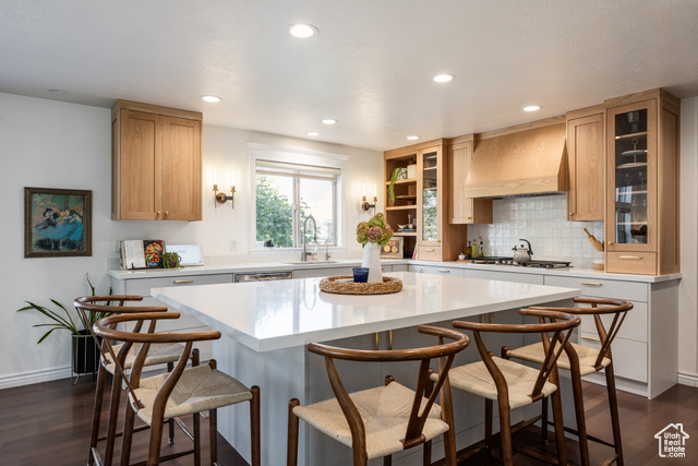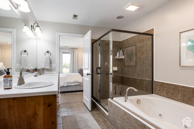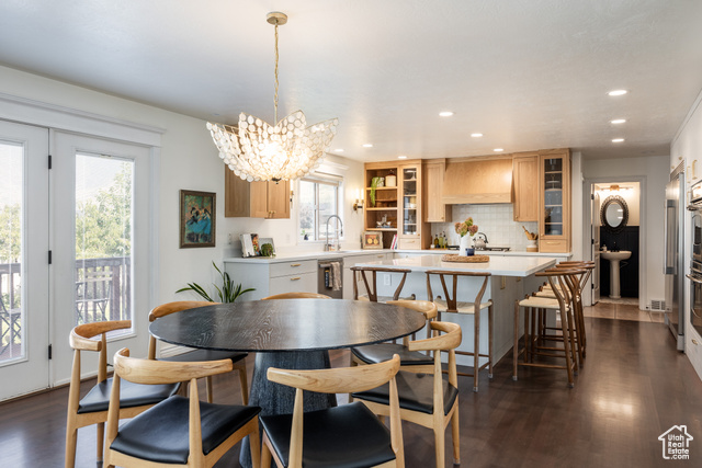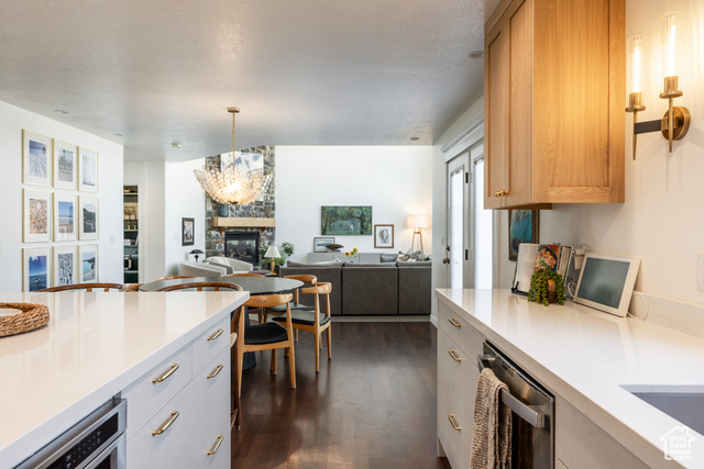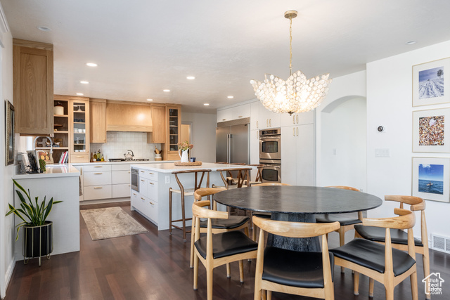 This spacious and contemporary home in Farmington is as warm and inviting as you might suspect from the outside. Beautifully updated throughout, it's a perfect blend of modern and traditional, and we think you'll find this property has everything you need. With six bedrooms and five bathrooms, there's room for everyone here, and-unlike many homes touting ample square footage-this one is thoughtfully and lovingly designed with the sort of touches that make for the distinct feeling of "home". Perched peacefully on an established street in a lovely neighborhood, the home is flooded in natural light from a wall of windows, which is amplified by vaulted ceilings. The main living spaces have been remodeled to add charm and uniqueness, and a towering stone fireplace brings coziness to the wide open space. A new kitchen was completed in 2022 and brings a modern and clean feel to the home, including beautiful, light wood cabinetry, a minimal but striking backsplash, and a sizable island for any/all prep needs or entertaining. The palette here is warm and enticing, and the added details are thoughtful, to say the least: from punctuating wallpaper in some rooms to perfectly chosen sconces and paint colors, this home is perfectly furnished to ensure that everyone inside feels cozy and comfortable. An ample back yard has a sitting area with mature shade trees, grass for picnics and play, and a small basketball court, so all are welcome to enjoy. Located close to schools, trails, and I-15, the accessibility here is unparalleled, but given the care and attention put into this home, we're betting you'll find it hard to leave.
