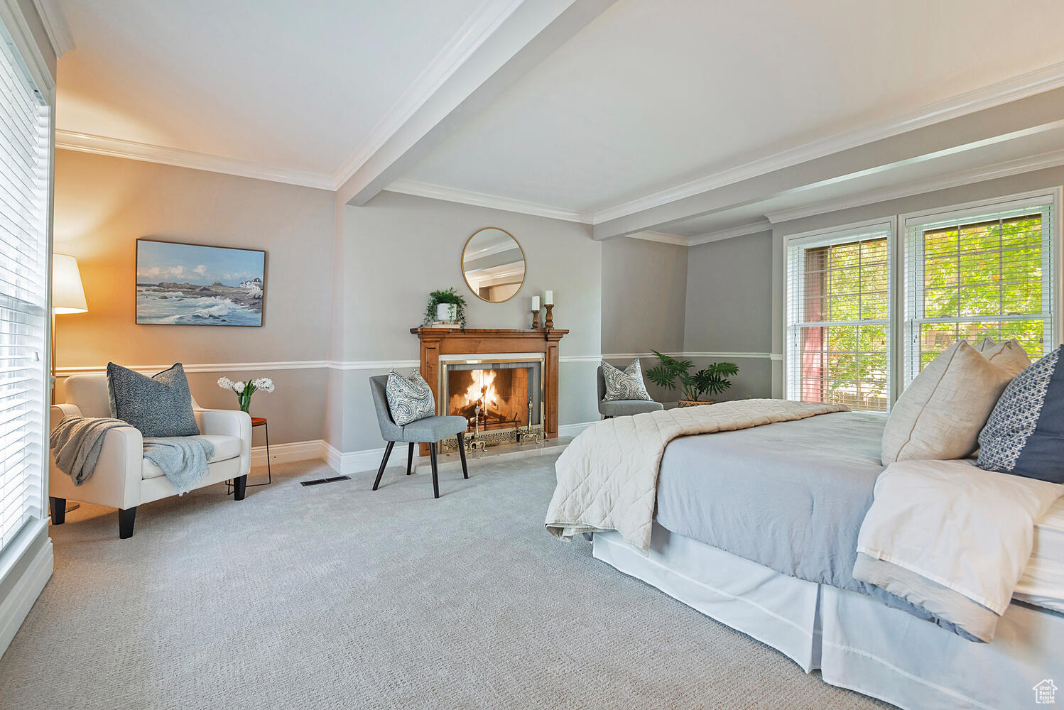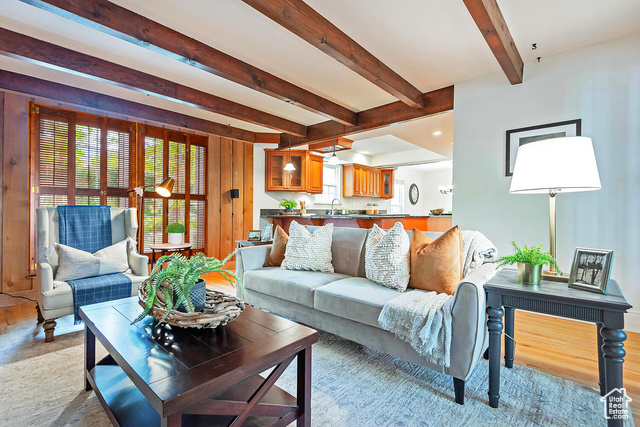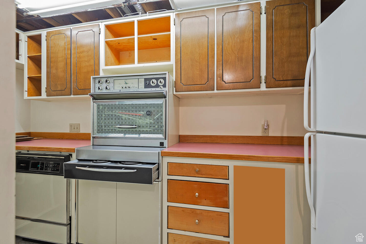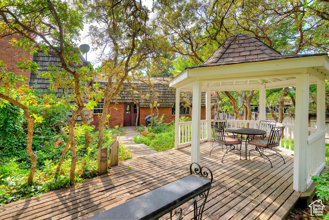 Offer(s) received. All offers due Monday, October 14th by 5 p.m. Tucked on the high east bench just below Big Cottonwood Canyon is a tranquil cul-de-sac lined with lush landscaping and mid century homes. This home bares all the charm of a mid-century modern home with angled lines and beamed ceilings. Hardwood floors have been installed throughout much of the main level to add to the homes charm. The kitchen has been updated with custom cabinetry, granite countertops and stainless appliances. It offers a spacious eating nook and opens up to a cozy family room with 1 of 3 fireplaces. The formal living room offers large picturesque windows bringing in natural light to this oversized room with brand new carpet. The new carpet continues upstairs into the wonderful primary suite with more large windows, angled walls and another fireplace. The primary ensuite is larger than most in the era with a full vanity, shower and closets. Another full bath and 3 more bedrooms finish off the second level. The basement includes new carpet, a second family room with the 3rd fireplace and classic oak wainscoting. Another large room that could function as a 5th bedroom or large office adorns the same wainscoting. There is an unfinished bathroom and a second kitchen used for canning. There is still plenty of unfinished space perfect for a shop or office with a walkout to the backyard. The windows have been updated throughout the house. Houses like this in Cottonwood Heights are hard to come by. This one is a true charmer and just minutes from world class skiing, hiking and biking trails, groceries stores, top rated schools and convenient to I215 access. Square footage figures are provided as a courtesy estimate only. Buyer is advised to obtain an independent measurement.
