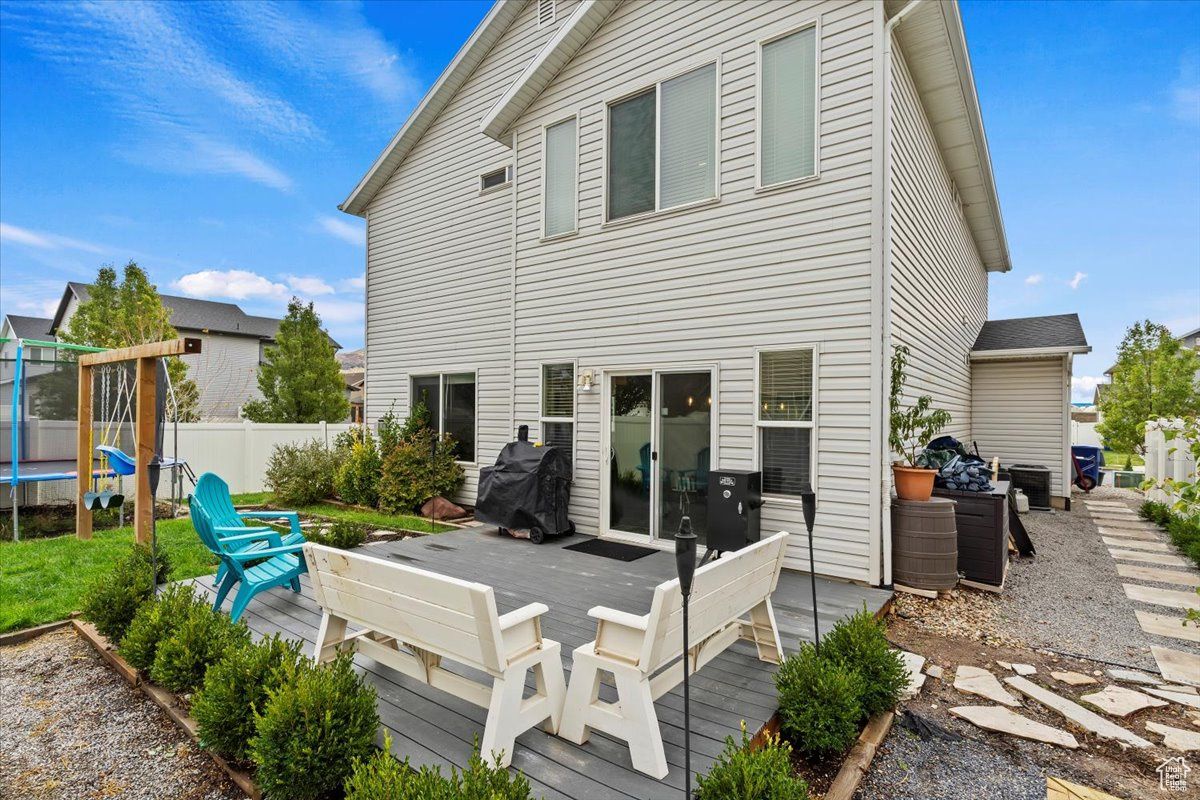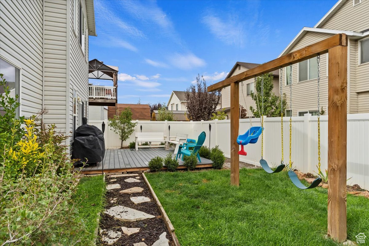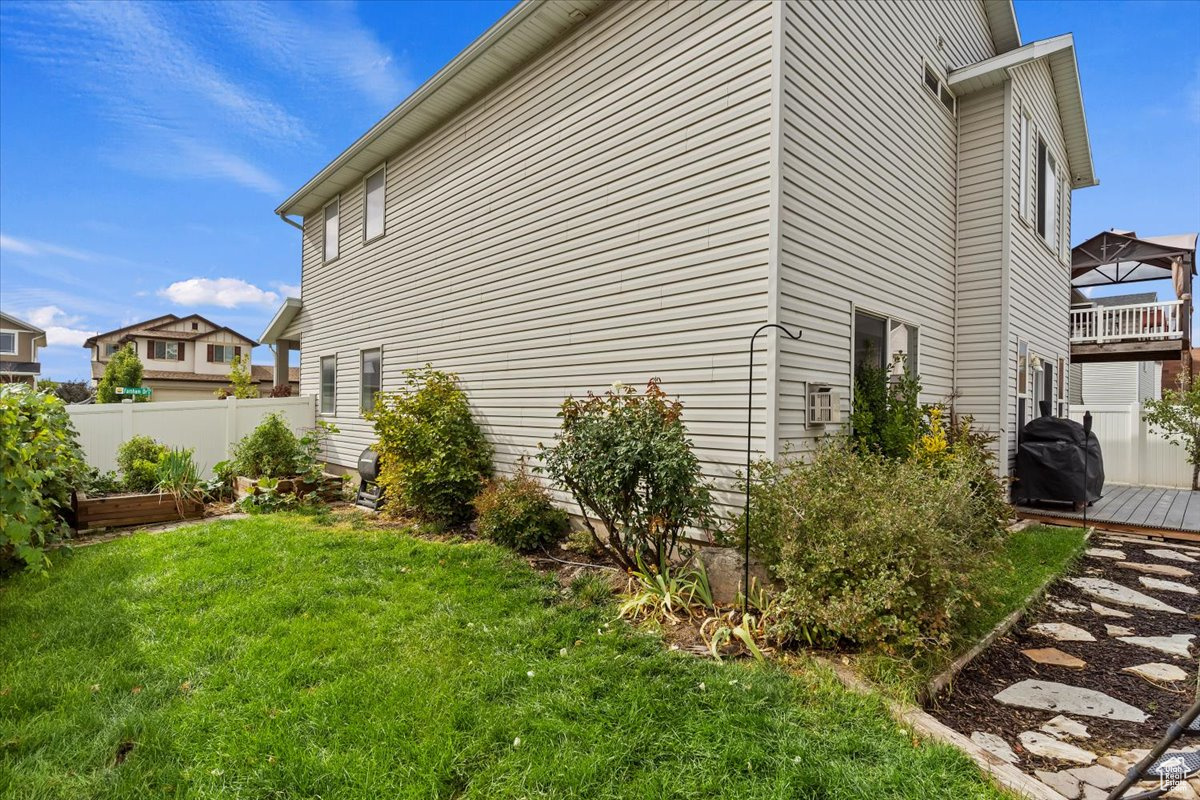 **MULTIPLE OFFERS RECEIVED: Highest & Best Offers due by NOON on Monday, Oct 28th** Welcome home! This home features built-in speakers with surround sound, fiber internet, Cat-6 wiring, and a self-monitored video surveillance system. The extended kitchen offers a gas range, stainless steel appliances, and a new backsplash. The primary suite includes vaulted ceilings and double-head shower. Additional highlights include built-in mudroom storage, a magnetic chalkboard wall, loft area, laundry room with floor drain, sound insulated interior walls, oversized under-stair storage with a light, and an extra-wide garage. Outside, enjoy the floating deck, garden boxes, built-in sandbox, and eave plugs for holiday lights. All rain gutters connect to one central line that drains out to front yard. Home sits in a great neighborhood within walking distance to South Community Park & Legacy Splash Pad. Close proximity to schools, shopping, and quick access to I-15 and Legacy Highway. Just 10 minutes to Lagoon & Station Park and 15 minutes to downtown SLC & SLC International Airport!