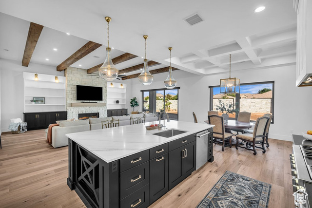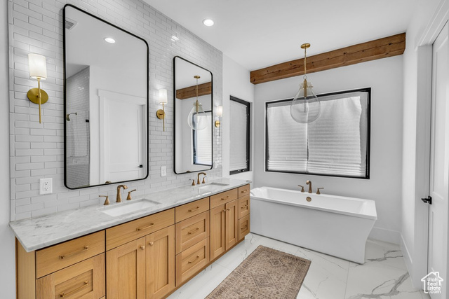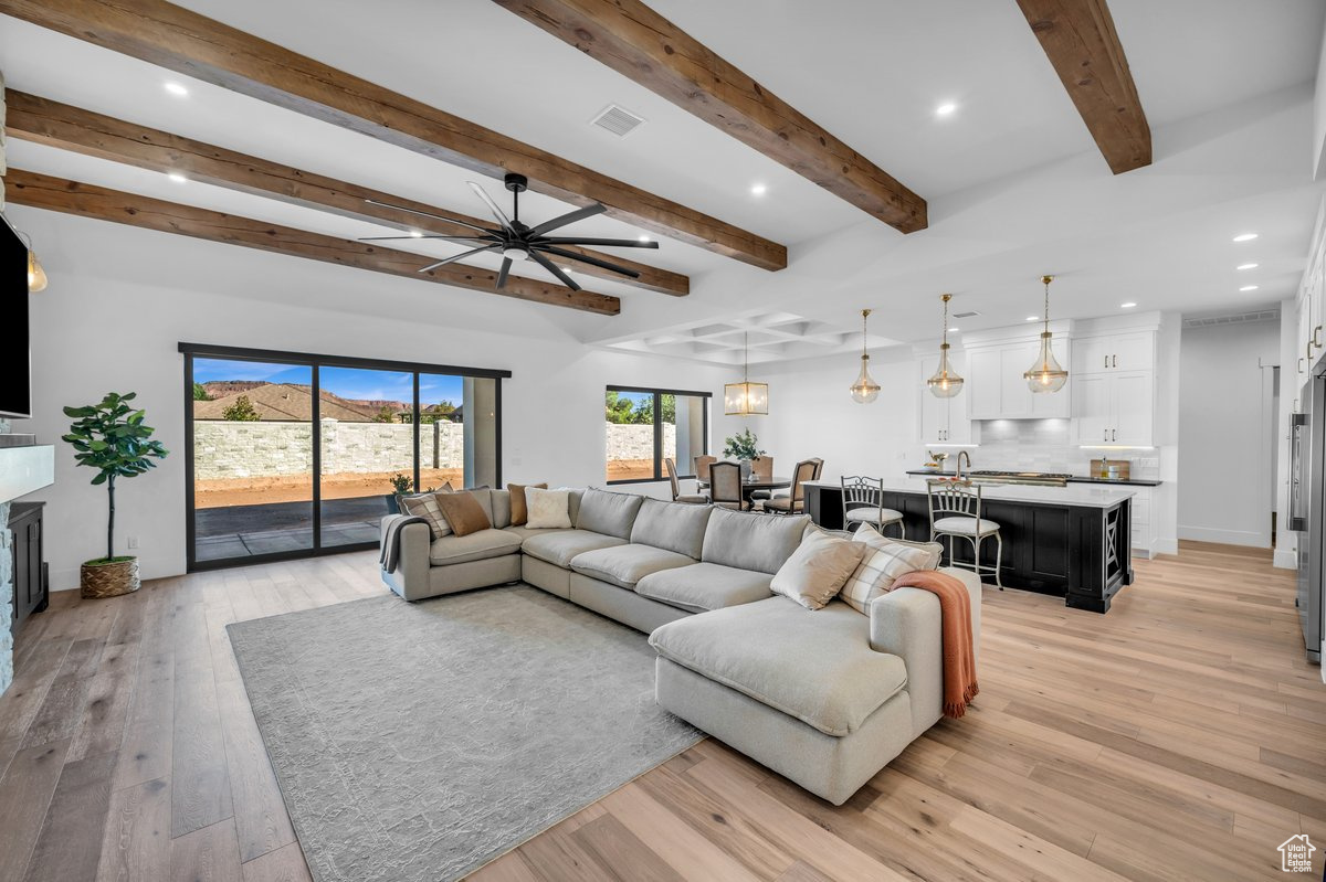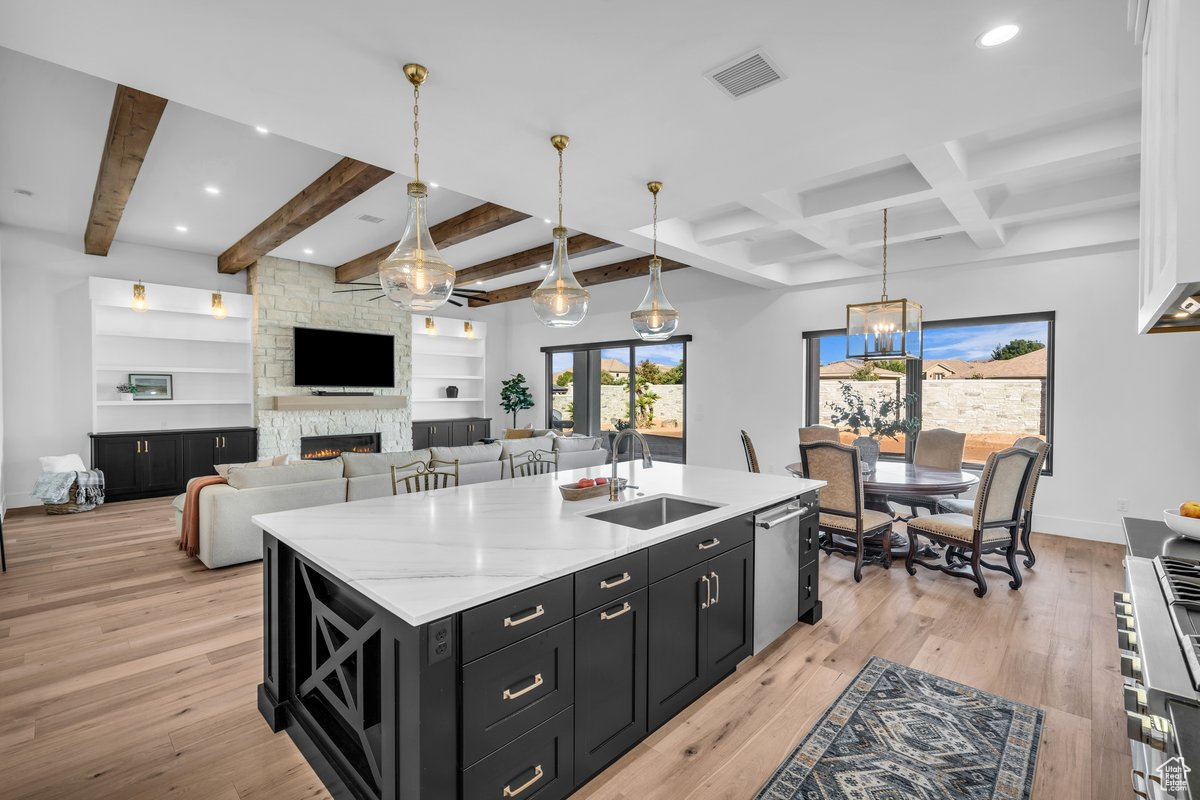 Stunning custom-built home situated on a nearly 1/3-acre lot, one of the largest in Hawkeye Pointe with an oversized 3-car garage, expansive RV parking space, and plenty of room for a pool! Centrally located in a great community on Dixie Power, this home is crafted with every premium upgrade imaginable boasting luxurious finishes and meticulously designed details throughout. Enjoy 10'-14' ceilings with solid wood beam and chauffeured ceiling accents, designer-grade carpet, Anderson windows, and premium exotic quartz and granite countertops. The spacious layout includes Jack and Jill bedrooms, walk-in closets in nearly every room, a custom laundry room that will blow you away, and an incredible 4th bedroom that could serve as a casita with its own private entrance. Floor-to-ceiling tile is featured in the showers and backsplashes, with the luxurious master suite offering a handmade-tile shower with three oversized shower heads, including a rainfall option, and a huge walk-in closet with pull-downs. The gourmet kitchen is a chef's dream featuring a huge island, two-tone white and black soft-close cabinets, a commercial-size fridge and freezer, Thermador double ovens, and bonus double mini slide-out drink fridges. Additional highlights include instant hot water with a tankless system for ultimate convenience. Buyer to verify all information, deemed reliable, however buyer to verify all info including utilities, rental restrictions, and HOA information if applicable.