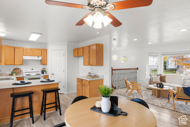 Welcome home! This charming, move-in-ready gem is in excellent condition, featuring fresh paint and new flooring throughout. Major updates from 2020 include a new roof, skylight, furnace, water heater, and solar panels with protective mesh-perfect for energy savings without the bird drama! The kitchen offers the bonus of a double oven, and outside, you'll love the 12x16 shed with plenty of power, windows and architectural-grade shingles, plus a large, fully fenced backyard complete with a trampoline and basketball standard. A spacious patio and RV pad make this home ideal for outdoor fun and extra storage. This well-loved home in a fantastic neighborhood is ready and waiting for its next lucky owner