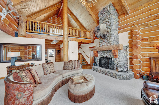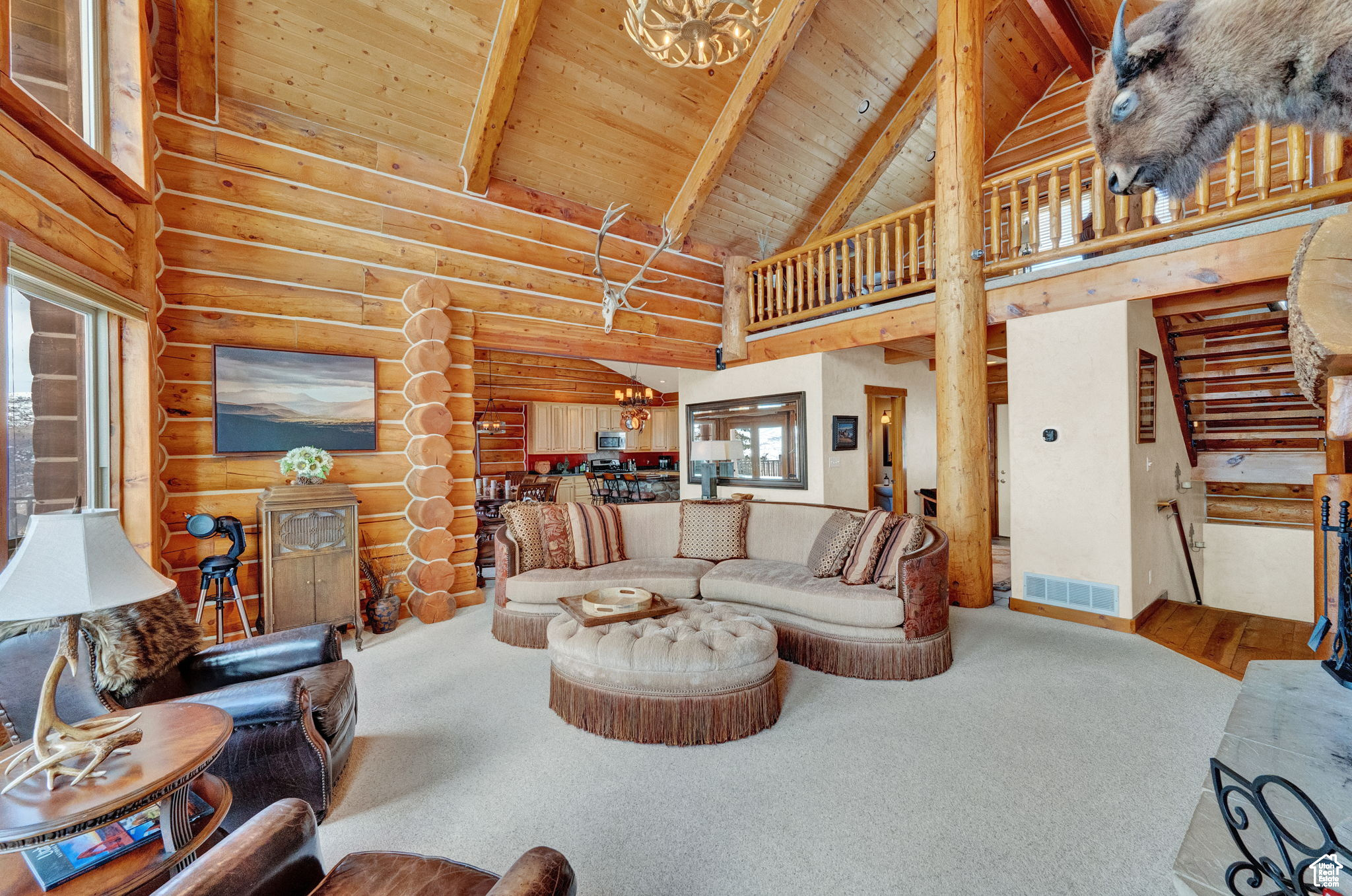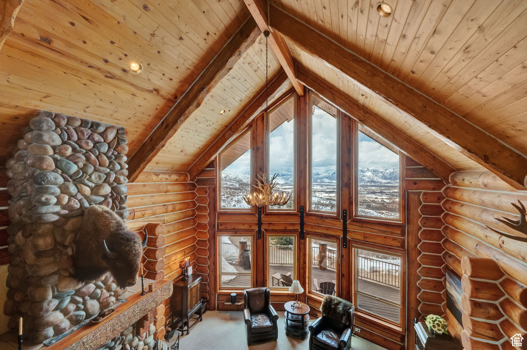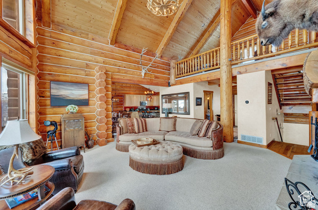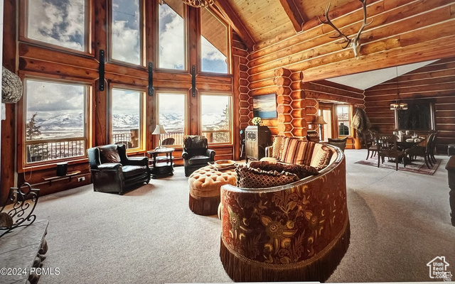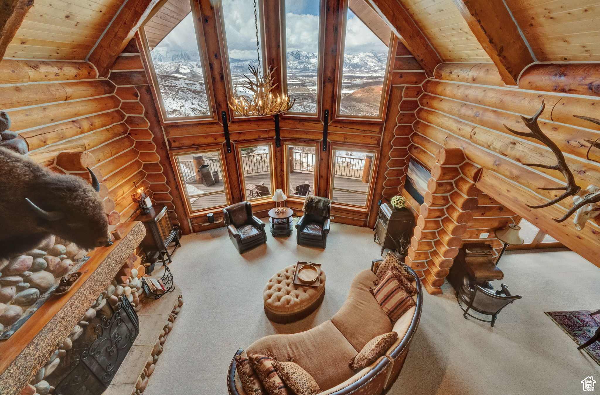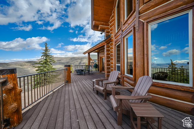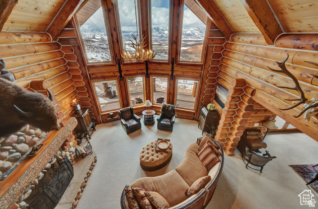 This stunning log mountain home offers incredible, breathtaking views of Mount Timpanogos and the entire Wasatch Back! The towering, vaulted tongue and groove ceilings, massive windows, the spacious, sprawling back deck and open great room concept, makes this mountain haven the perfect setup for ultimate entertaining or beautiful quiet sunset evenings! This rustic retreat features a main level luxurious master ensuite complete with gas burning stove, skylights, enormous jetted tub, walk-in closet and French doors that open out onto the deck. The open loft is used as a study, but could also function as additional sleeping quarters. Imagine working from home in this dreamy retreat! The downstairs offers the same unbelievable views with a cozy, comfortable family room area, full bathroom and two large bedrooms. Offered fully furnished, turnkey with kitchenware and linens! Gorgeous landscaped yard with paved driveway. Dual water heaters, brand new AC and Water Science filtration system. The craftsmanship and meticulous style of this cabin perfectly compliments a true mountain lifestyle! Surrounded by recreational activities at your fingertips including, boating on nearby lakes, world-class golf, phenomenal skiing, epic snowmobiling, hunting, hiking, access to Uinta National Forest, mountain biking, ATV-ing and more! Located only 5 minutes from Timber Lakes entrance. Only 55 minutes to the SLC airport and just minutes from all the wonderful amenities of the Heber Valley & Park City! YEAR ROUND access!