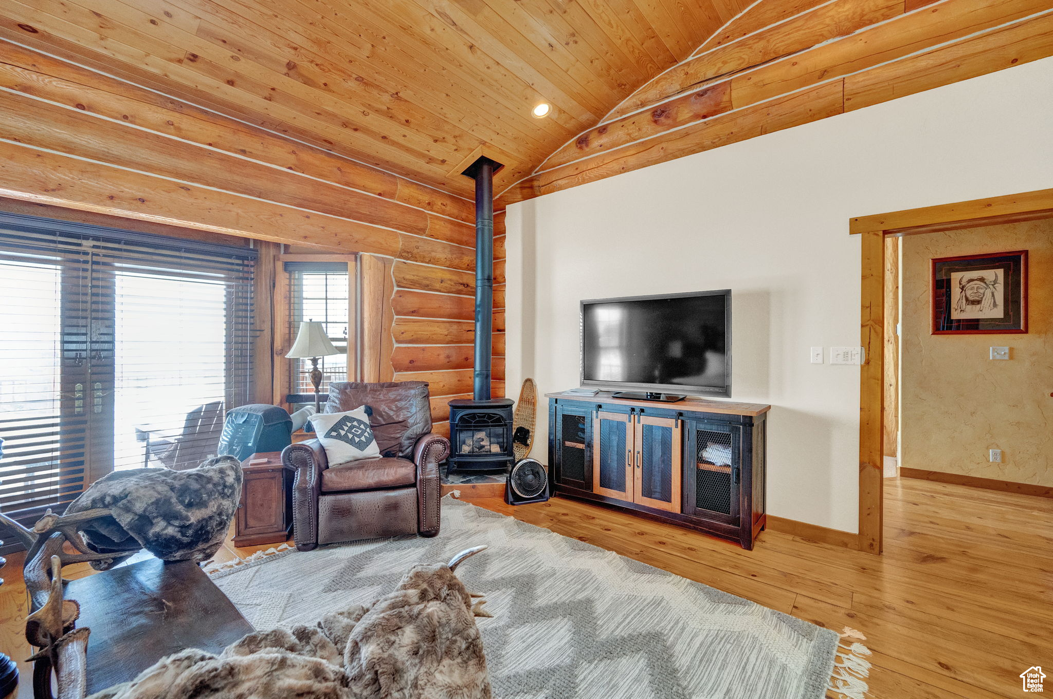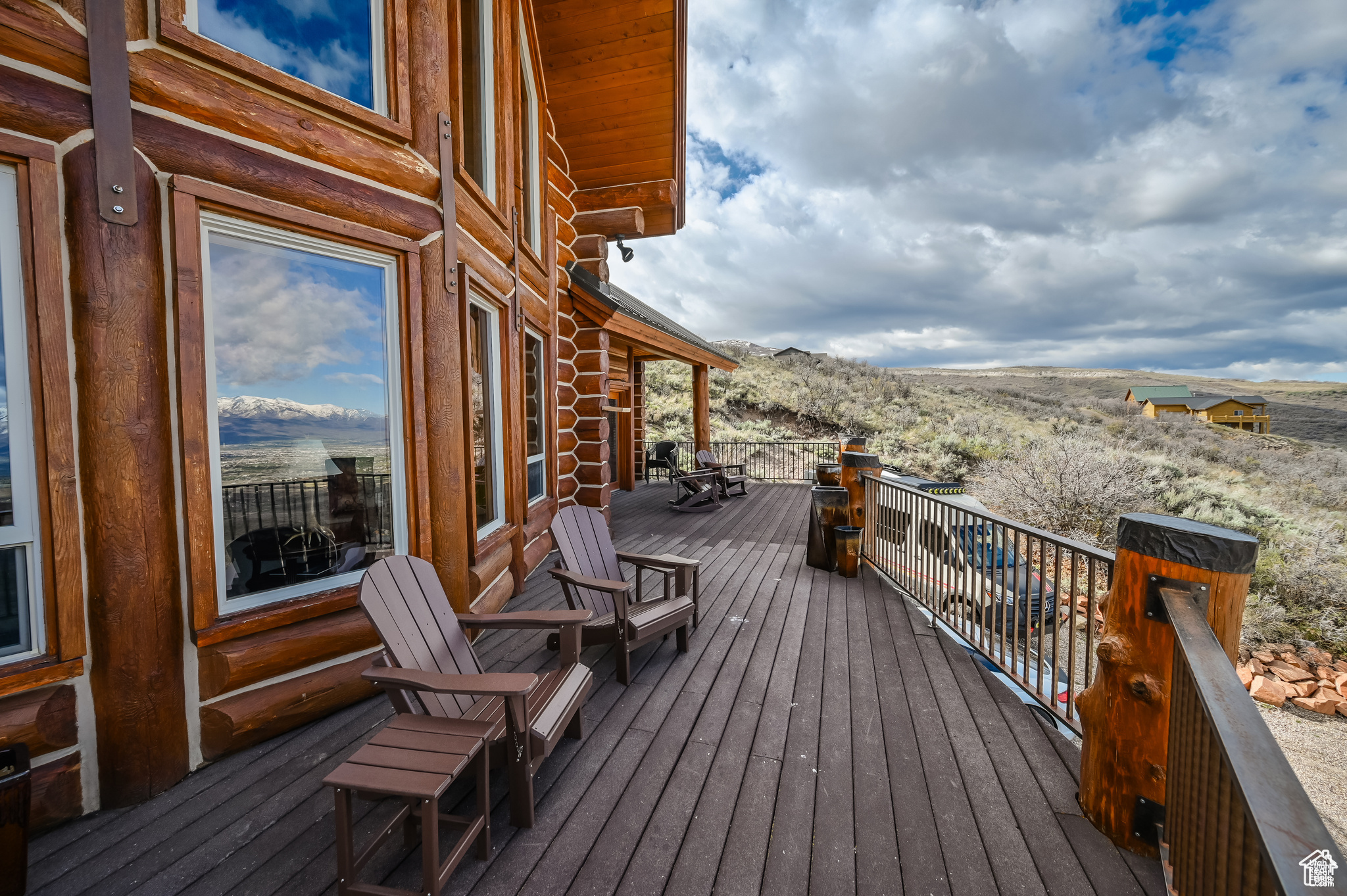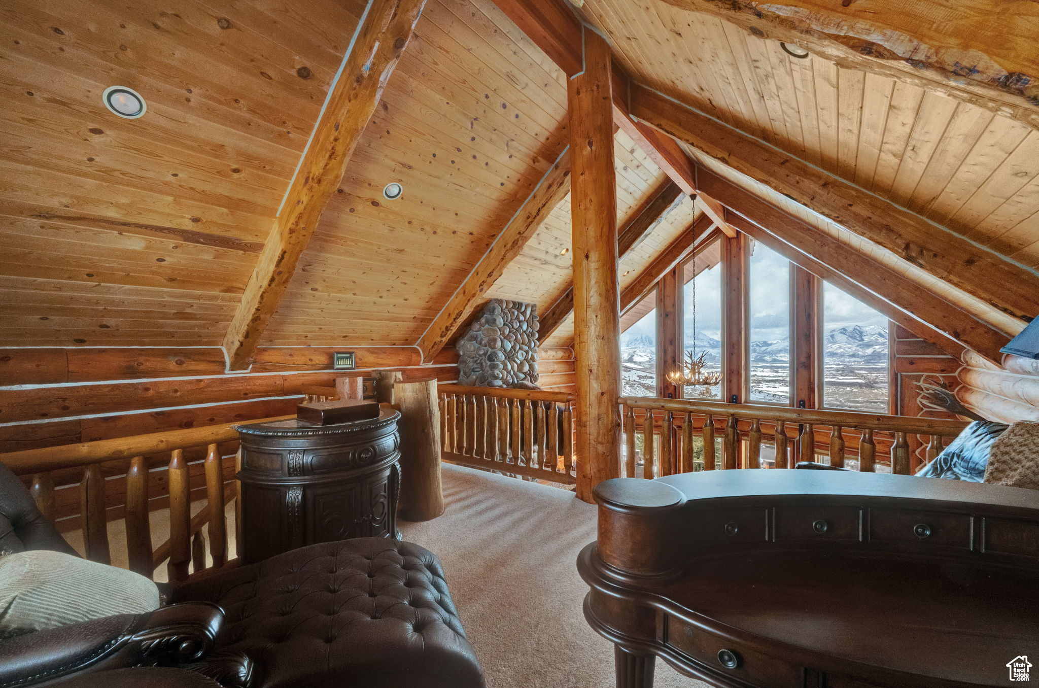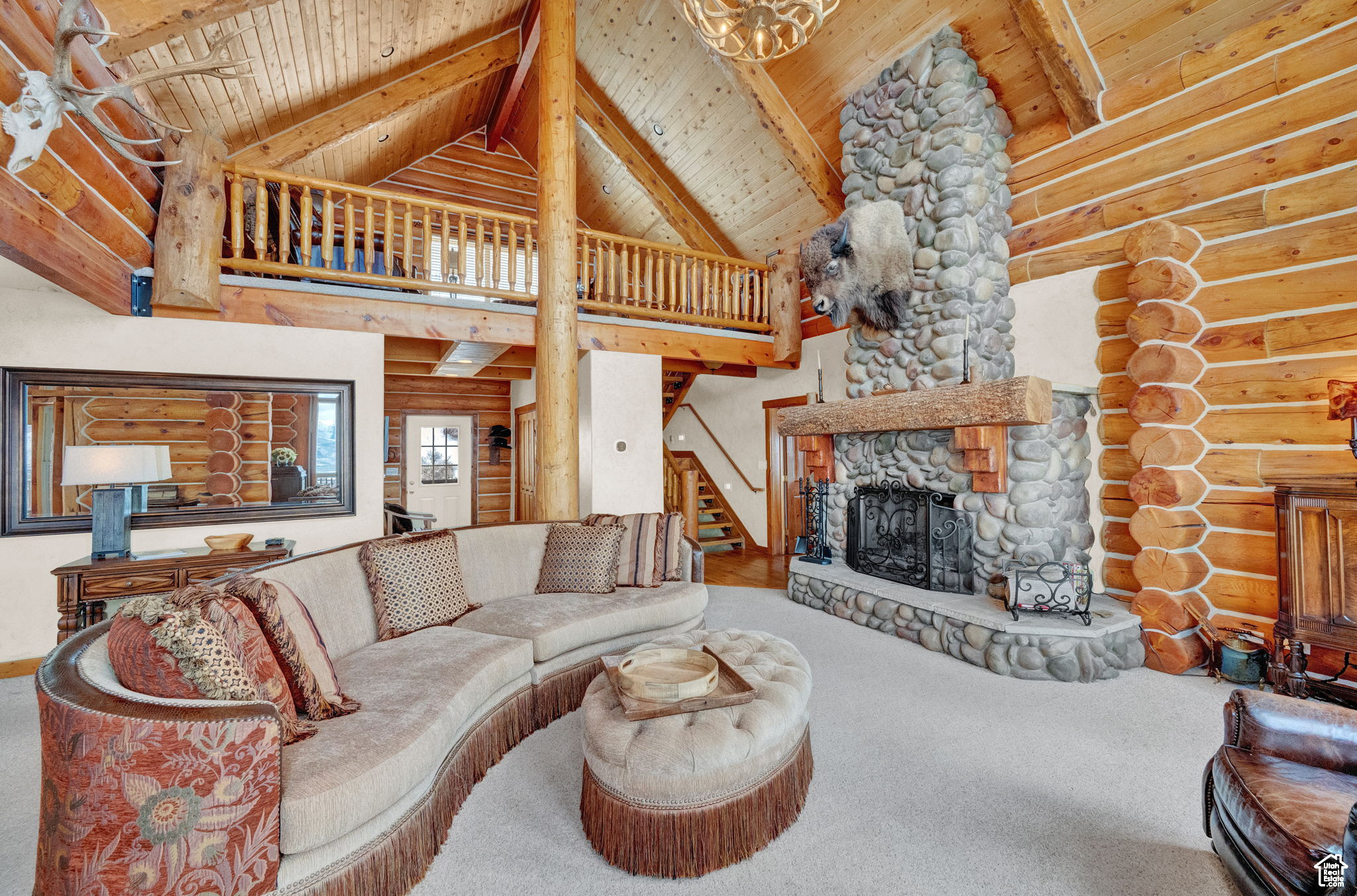 This stunning log mountain home offers incredible, breathtaking views of Mount Timpanogos and the entire Wasatch Back! The towering, vaulted tongue and groove ceilings, massive windows, the spacious, sprawling back deck and open great room concept, makes this mountain haven the perfect setup for ultimate entertaining or beautiful quiet sunset evenings! This rustic retreat features a main level luxurious master ensuite complete with gas burning stove, skylights, enormous jetted tub, walk-in closet and French doors that open out onto the deck. The open loft is used as a study, but could also function as additional sleeping quarters. Imagine working from home in this dreamy retreat! The downstairs offers the same unbelievable views with a cozy, comfortable family room area, full bathroom and two large bedrooms. Offered fully furnished, turnkey with kitchenware and linens! Gorgeous landscaped yard with paved driveway. Dual water heaters, brand new AC and Water Science filtration system. The craftsmanship and meticulous style of this cabin perfectly compliments a true mountain lifestyle! Surrounded by recreational activities at your fingertips including, boating on nearby lakes, world-class golf, phenomenal skiing, epic snowmobiling, hunting, hiking, access to Uinta National Forest, mountain biking, ATV-ing and more! Located only 5 minutes from Timber Lakes entrance. Only 55 minutes to the SLC airport and just minutes from all the wonderful amenities of the Heber Valley & Park City! YEAR ROUND access!