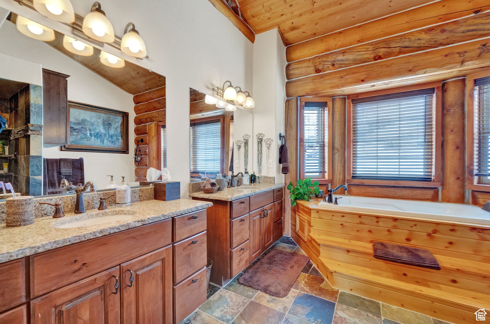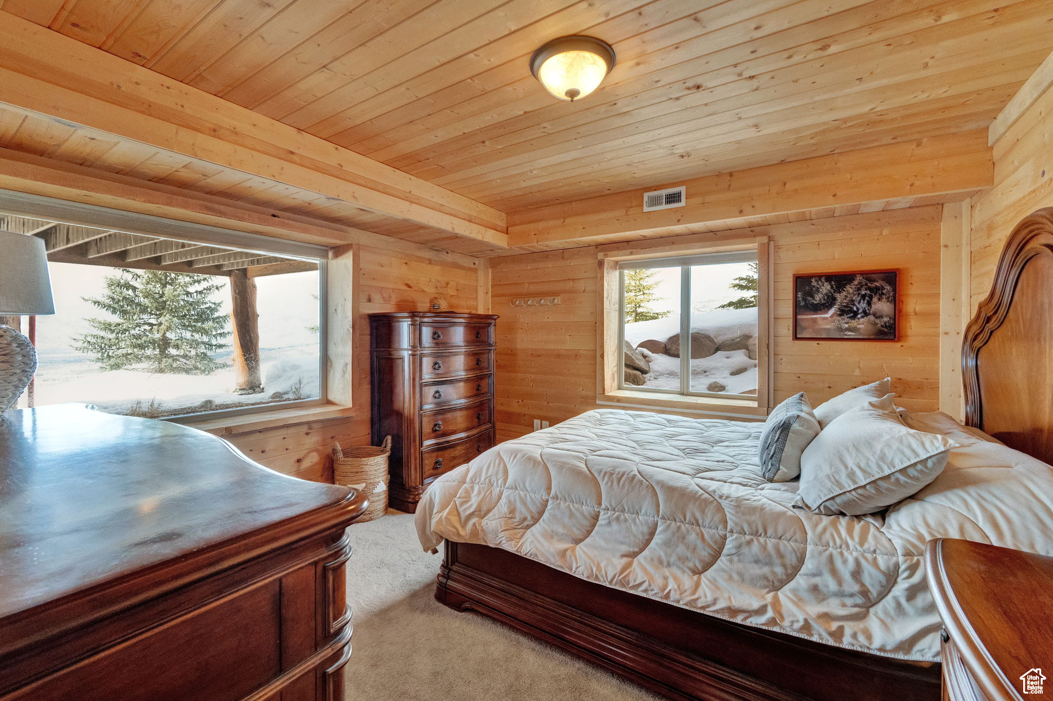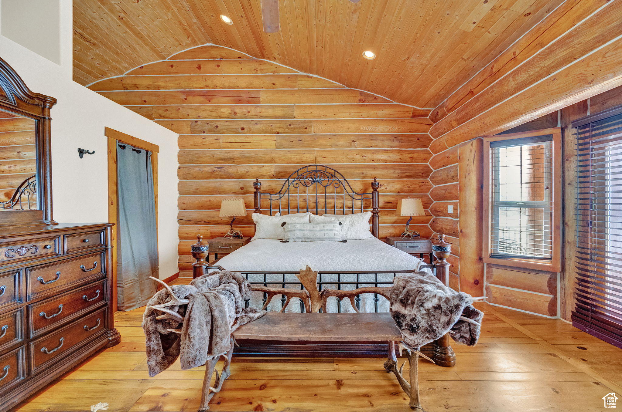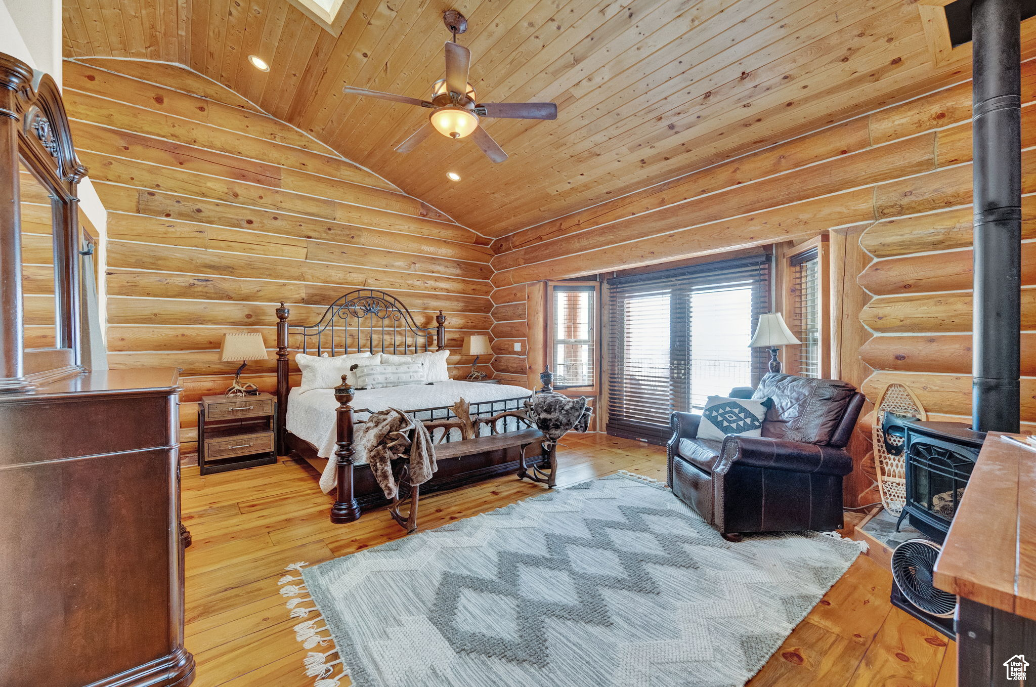 This stunning log mountain home offers incredible, breathtaking views of Mount Timpanogos and the entire Wasatch Back! The towering, vaulted tongue and groove ceilings, massive windows, the spacious, sprawling back deck and open great room concept, makes this mountain haven the perfect setup for ultimate entertaining or beautiful quiet sunset evenings! This rustic retreat features a main level luxurious master ensuite complete with gas burning stove, skylights, enormous jetted tub, walk-in closet and French doors that open out onto the deck. The open loft is used as a study, but could also function as additional sleeping quarters. Imagine working from home in this dreamy retreat! The downstairs offers the same unbelievable views with a cozy, comfortable family room area, full bathroom and two large bedrooms. Offered fully furnished, turnkey with kitchenware and linens! Gorgeous landscaped yard with paved driveway. Dual water heaters, brand new AC and Water Science filtration system. The craftsmanship and meticulous style of this cabin perfectly compliments a true mountain lifestyle! Surrounded by recreational activities at your fingertips including, boating on nearby lakes, world-class golf, phenomenal skiing, epic snowmobiling, hunting, hiking, access to Uinta National Forest, mountain biking, ATV-ing and more! Located only 5 minutes from Timber Lakes entrance. Only 55 minutes to the SLC airport and just minutes from all the wonderful amenities of the Heber Valley & Park City! YEAR ROUND access!