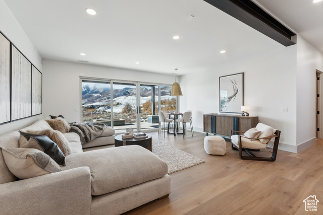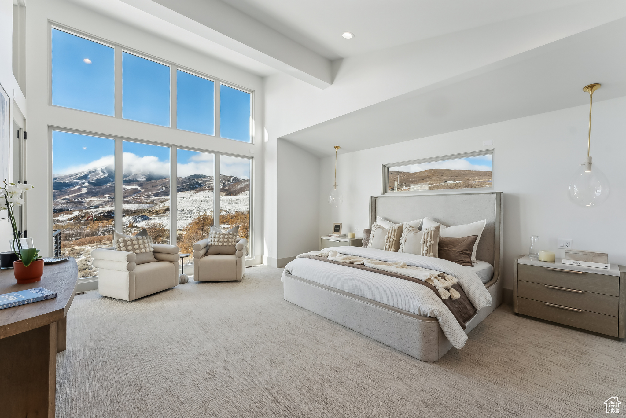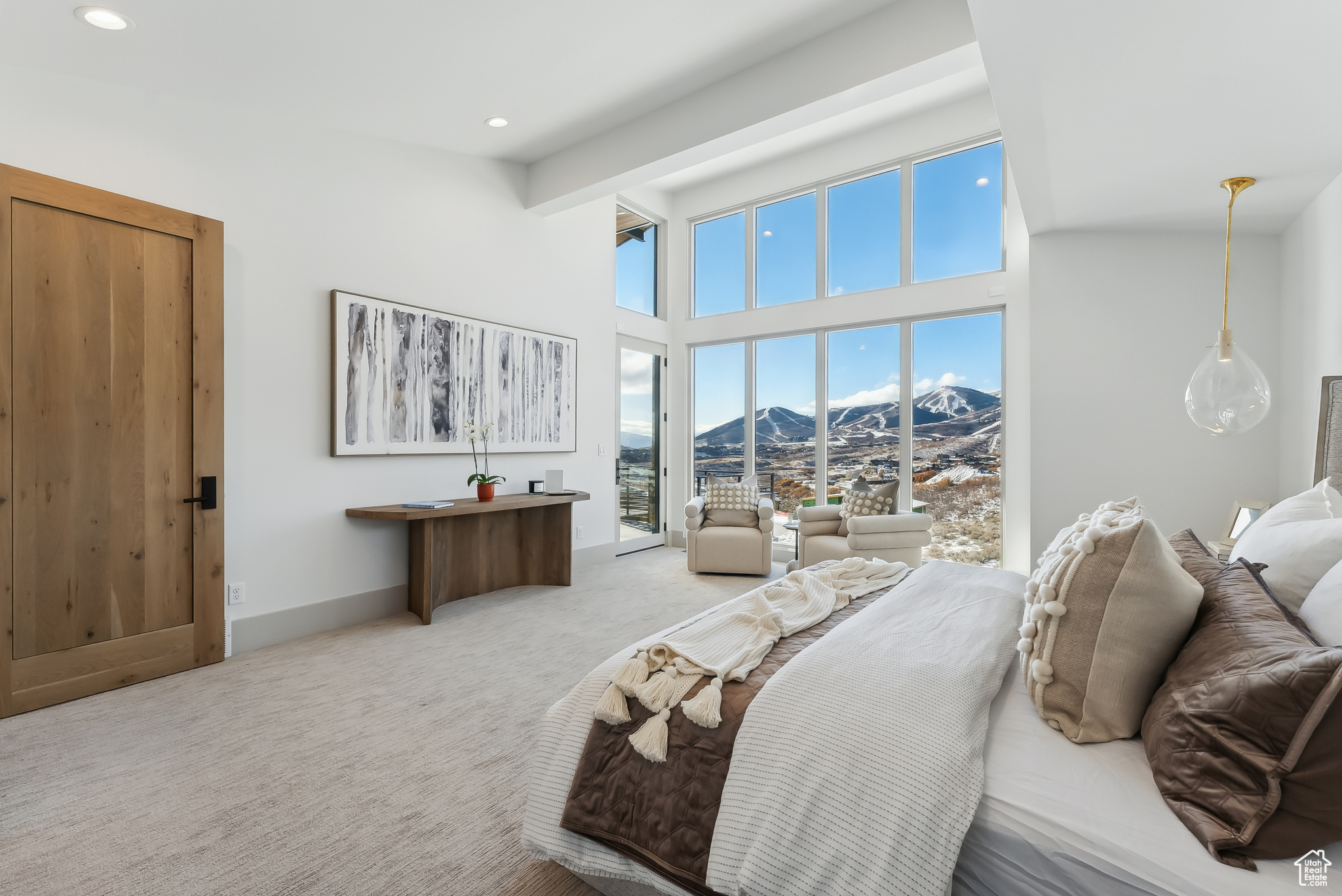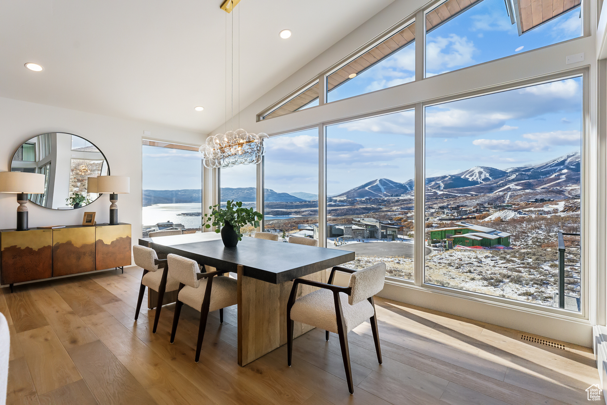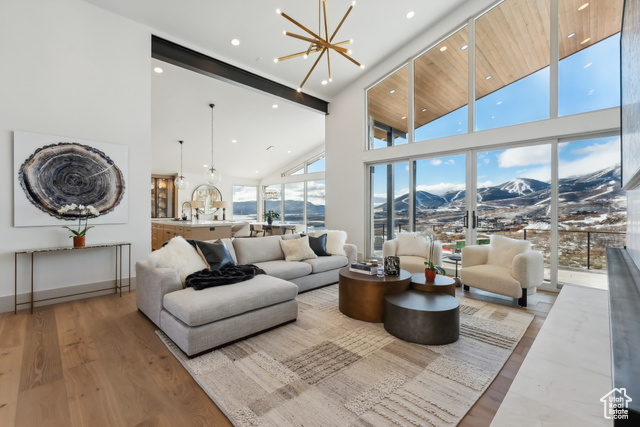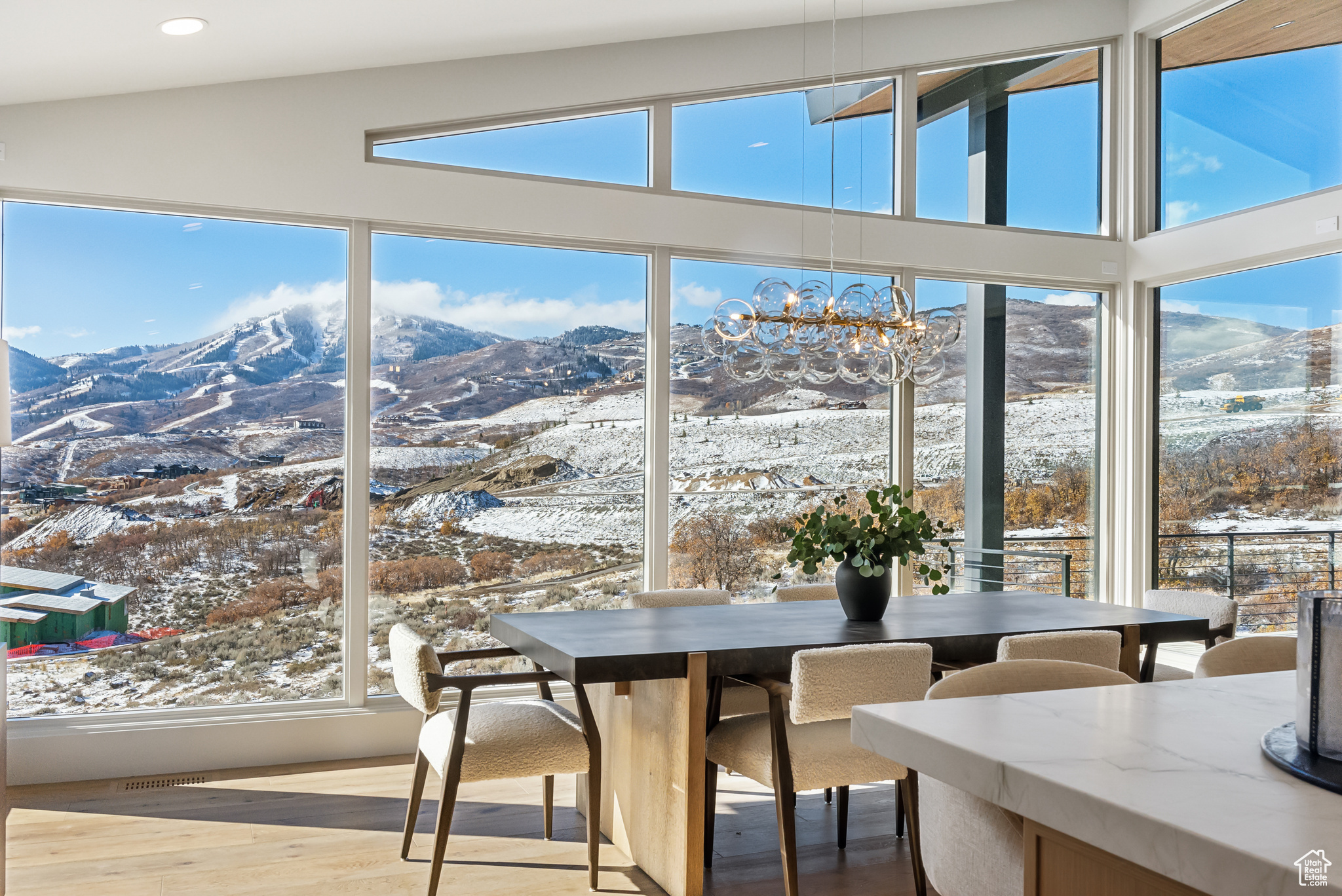 Stunning brand new home w/Deer Valley & lake views adjacent to SkyRidge open space & trails. Beautiful brand new home, move in ready just in time for ski season! SkyRidge offers direct ski resort shuttle service that drops off at Deer Valley's gondola and offers ski shuttle pick up at your front door! Great 2 level mountain contemporary floor plan with spacious main level primary complete with spa like bathroom and large walk-in closet with W/D hookups. Sweeping Deer Valley ski resort & Jordanelle lake views from great room, dining, kitchen, primary bedroom and large entertaining deck. Luxurious finishes throughout. Gorgeous kitchen with Thermador appliances, huge island in kitchen, natural stone countertops dramatic fire place, vaulted ceilings, Heated driveway, oversized 2 car garage. 4 ensuite bedrooms plus 2 powder baths. Spacious downstairs family room has a charming wet bar with ice maker, fridge, sink and wine storage. This home is situated on a fabulous lot directly adjacent to SkyRidge open space AND is walking distance to the future SkyRidge Club house and future amenities including, pool, restaurant, fitness, golf and so much more. Huge kitchen with spacious butlers pantry. Generous laundry room with double sets of W/D's. Custom outdoor fire feature on patio by family room. Built by McCarthy Custom Homes & Highland Group Design. Staged by Sticks & Stones. Furniture not included in List price. Easy to show, Call listing agent.