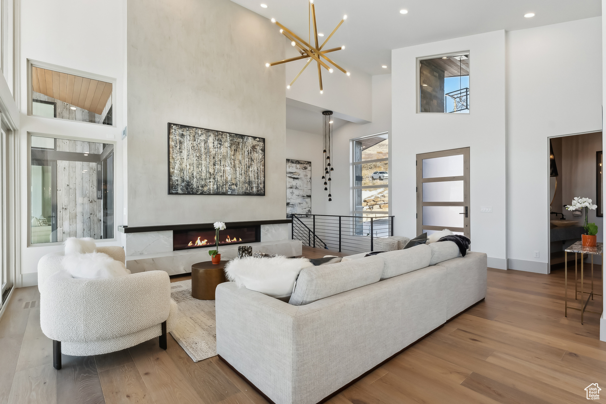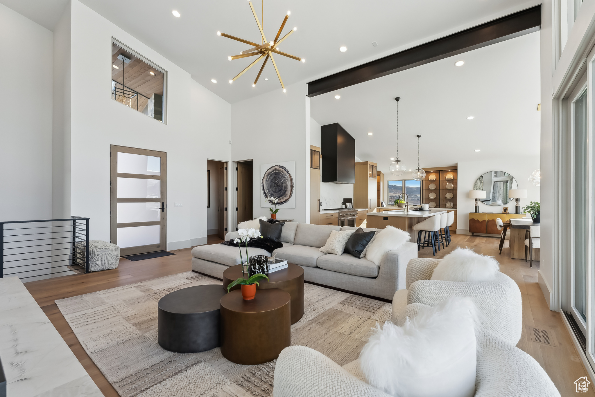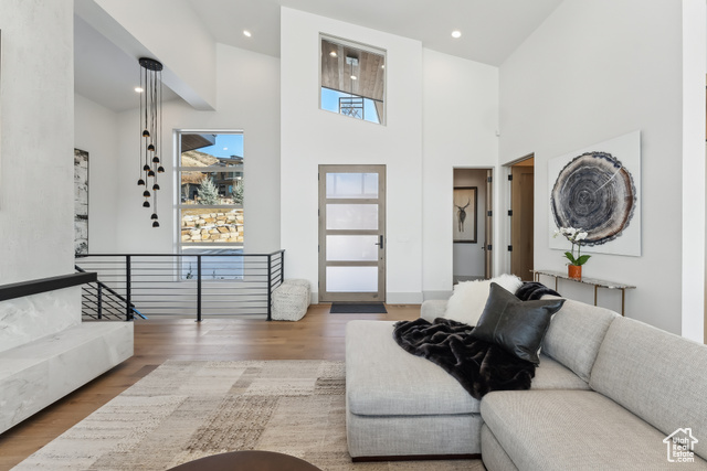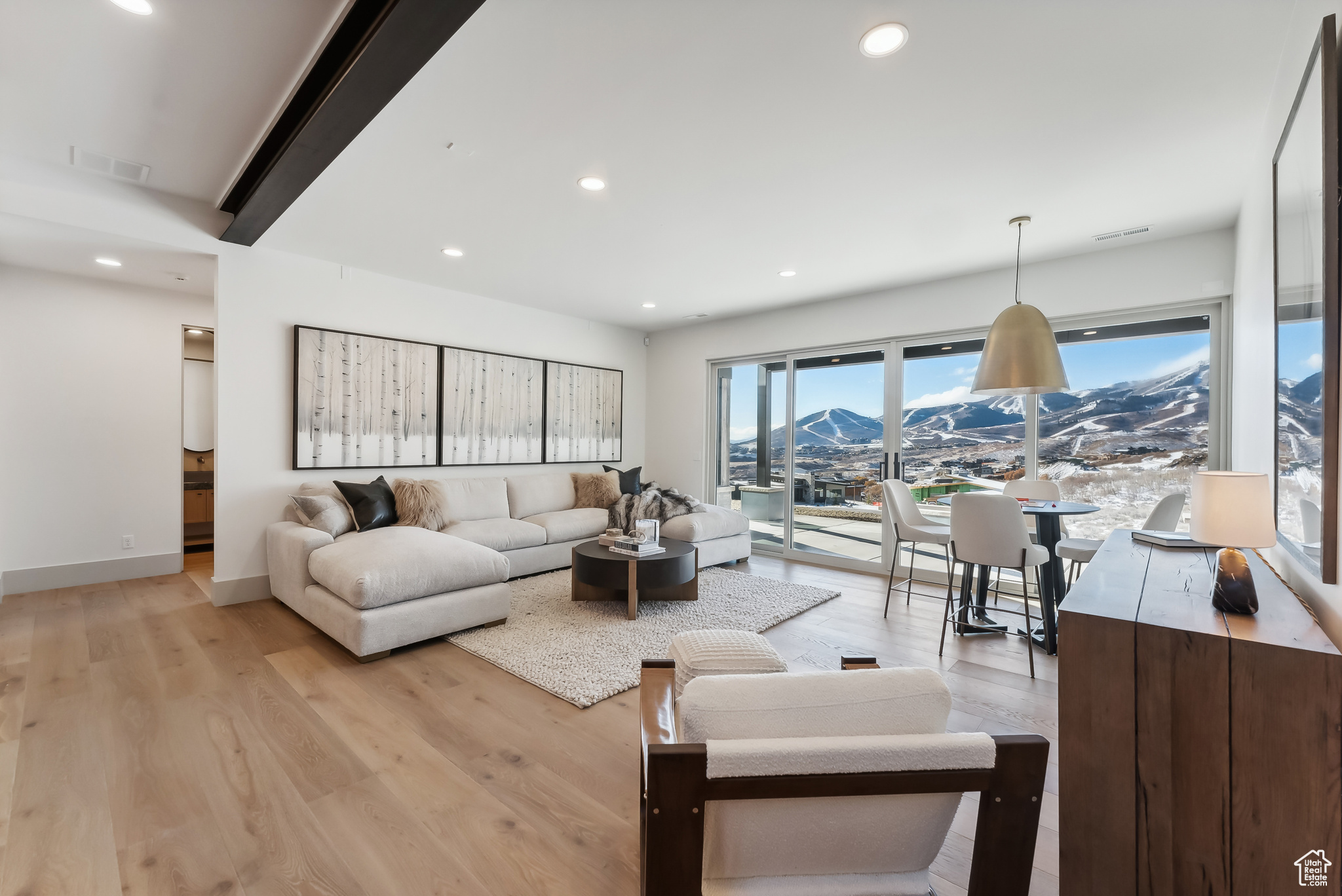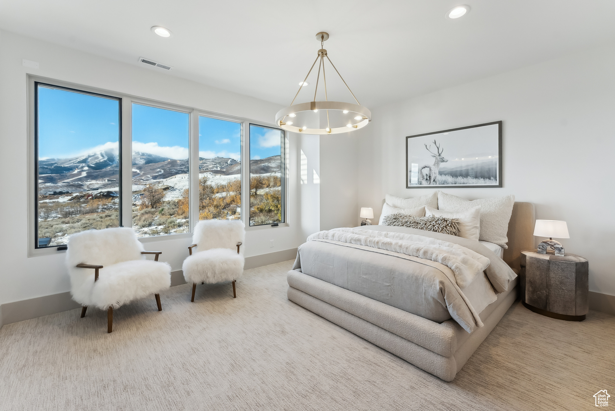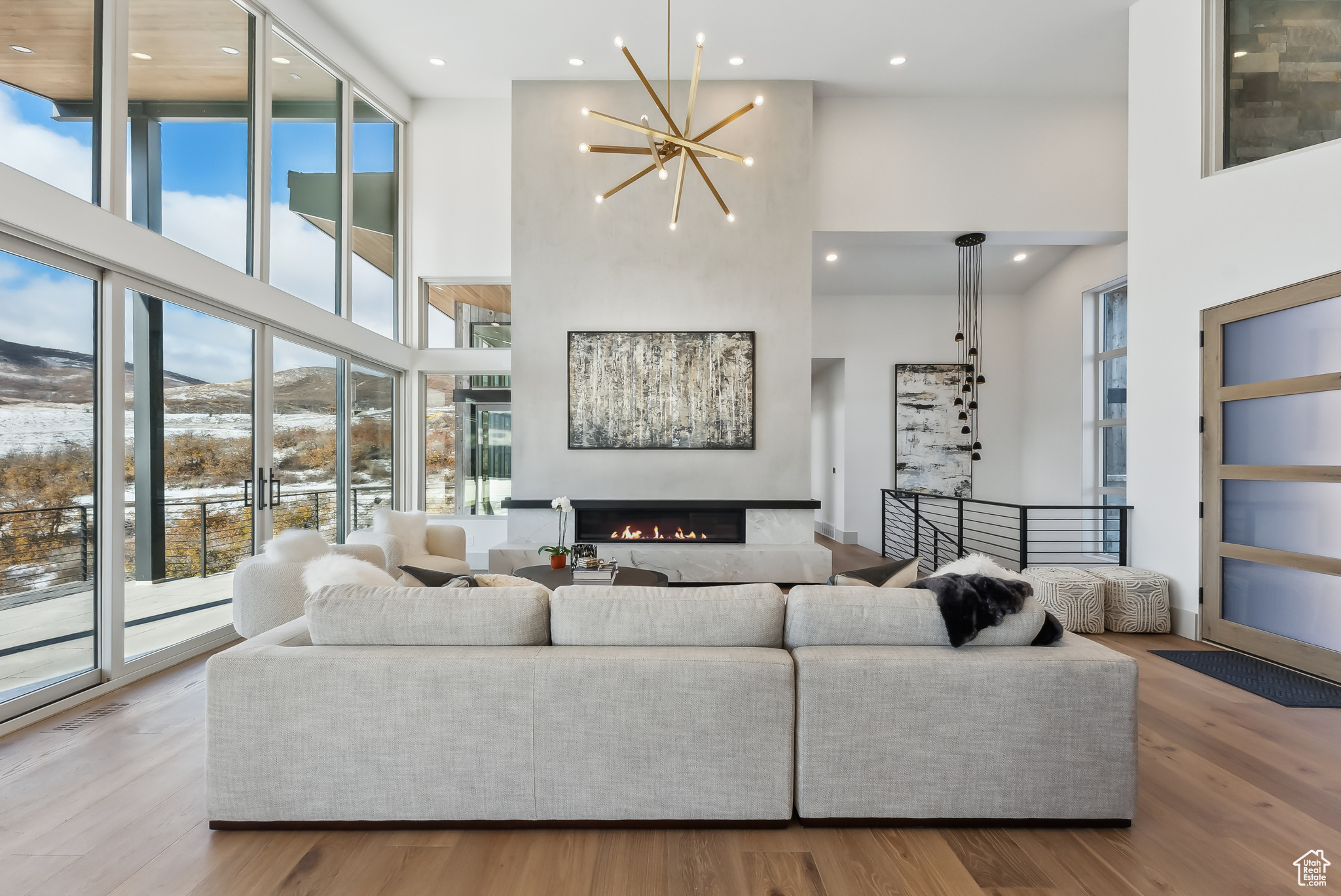 Stunning brand new home w/Deer Valley & lake views adjacent to SkyRidge open space & trails. Beautiful brand new home, move in ready just in time for ski season! SkyRidge offers direct ski resort shuttle service that drops off at Deer Valley's gondola and offers ski shuttle pick up at your front door! Great 2 level mountain contemporary floor plan with spacious main level primary complete with spa like bathroom and large walk-in closet with W/D hookups. Sweeping Deer Valley ski resort & Jordanelle lake views from great room, dining, kitchen, primary bedroom and large entertaining deck. Luxurious finishes throughout. Gorgeous kitchen with Thermador appliances, huge island in kitchen, natural stone countertops dramatic fire place, vaulted ceilings, Heated driveway, oversized 2 car garage. 4 ensuite bedrooms plus 2 powder baths. Spacious downstairs family room has a charming wet bar with ice maker, fridge, sink and wine storage. This home is situated on a fabulous lot directly adjacent to SkyRidge open space AND is walking distance to the future SkyRidge Club house and future amenities including, pool, restaurant, fitness, golf and so much more. Huge kitchen with spacious butlers pantry. Generous laundry room with double sets of W/D's. Custom outdoor fire feature on patio by family room. Built by McCarthy Custom Homes & Highland Group Design. Staged by Sticks & Stones. Furniture not included in List price. Easy to show, Call listing agent.