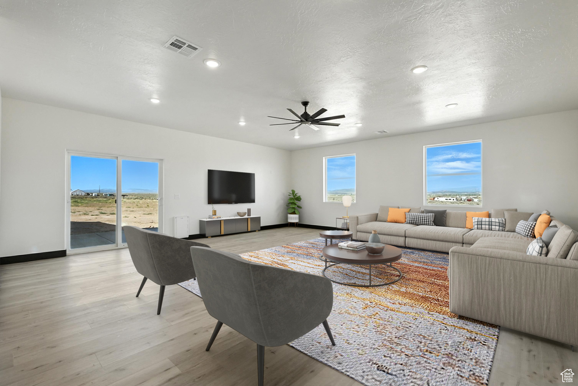Welcome to your dream home where modern design meets rural freedom. This sprawling 3,000+ sq ft single-level masterpiece offers the perfect blend of comfort, space, and independence, all set on 1.25 acres with animal rights and no CC&Rs. Expansive open-concept floor plan with high ceilings and abundant natural light Chef's kitchen with quartz countertops, premium appliances, and a massive walk-in pantry Spacious primary suite with spa-style bathroom and walk-in closet. Designer finishes throughout-crafted for beauty and function. Breathtaking 360 views of surrounding mountains and open skies. Generous 1.25-acre lot-bring your animals, build a shop, or enjoy wide-open space. With no CC&Rs truly make this property your own. Private shared well for reliable and affordable water access.