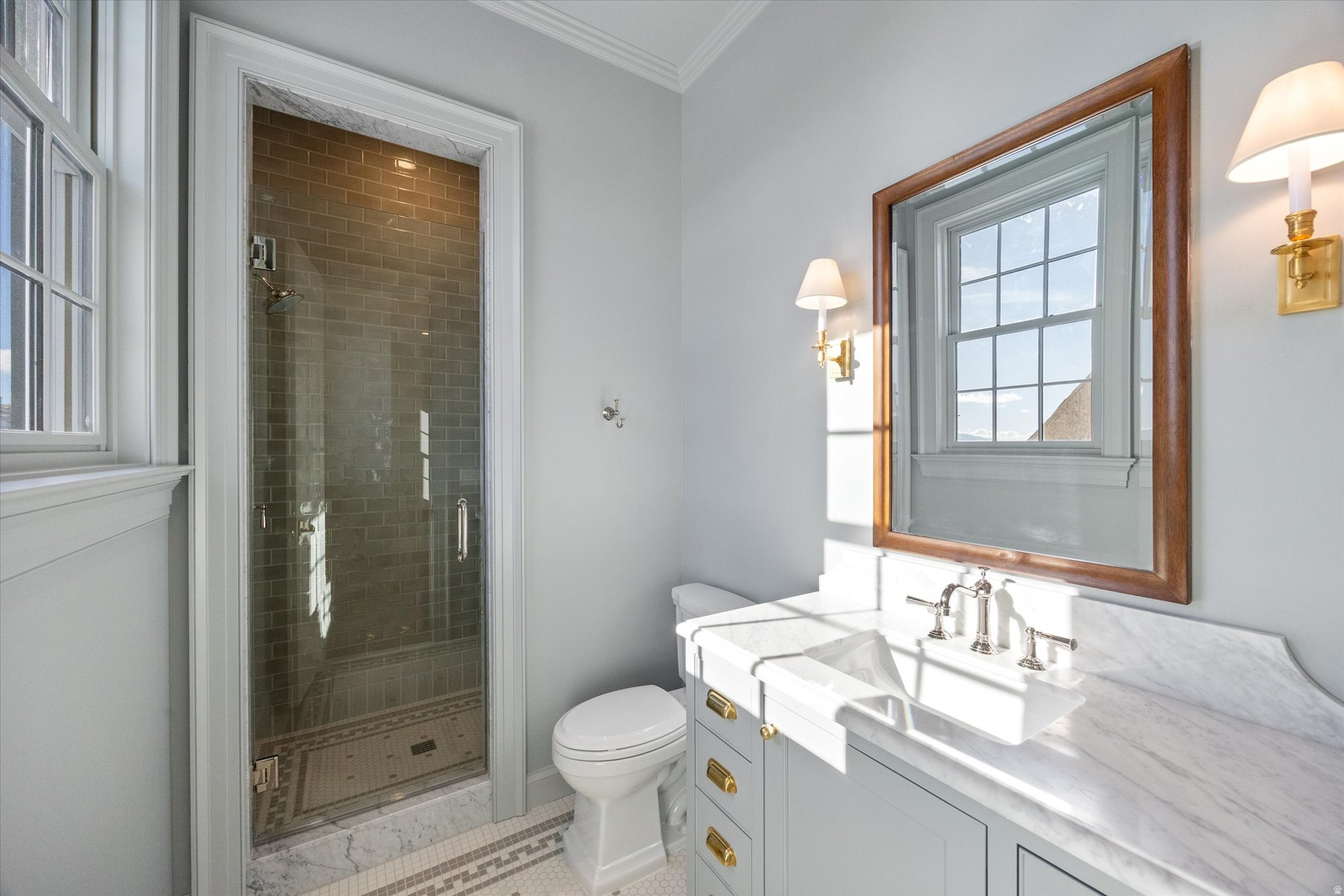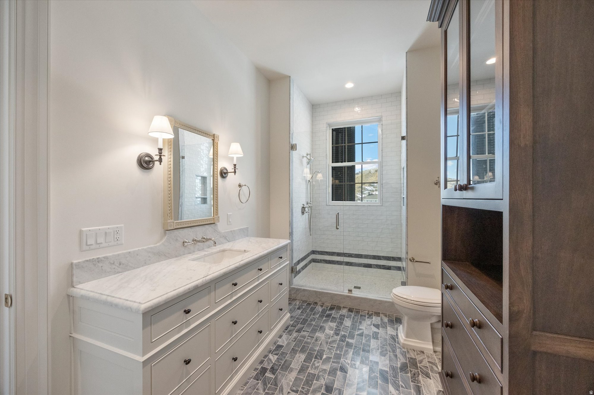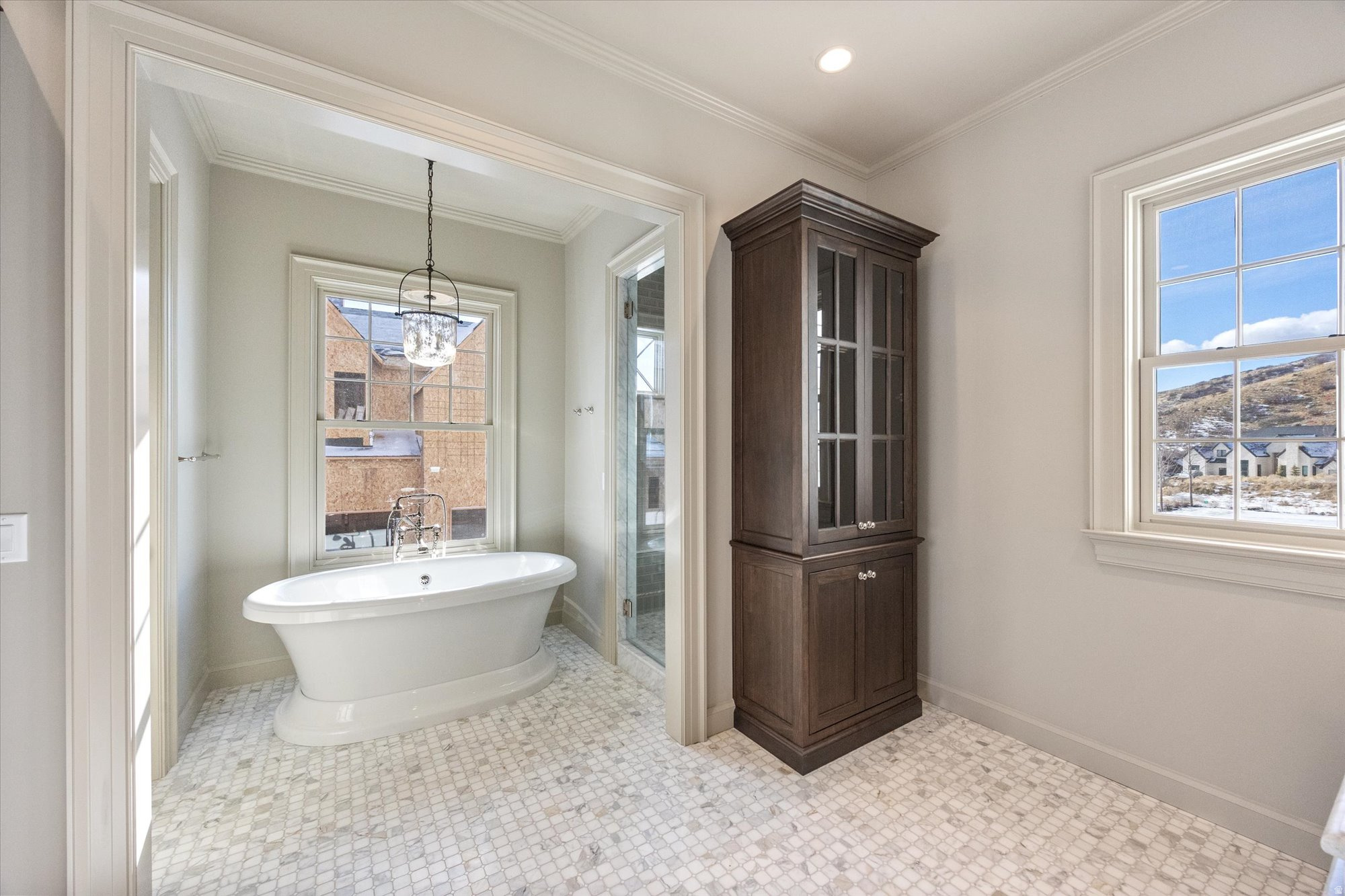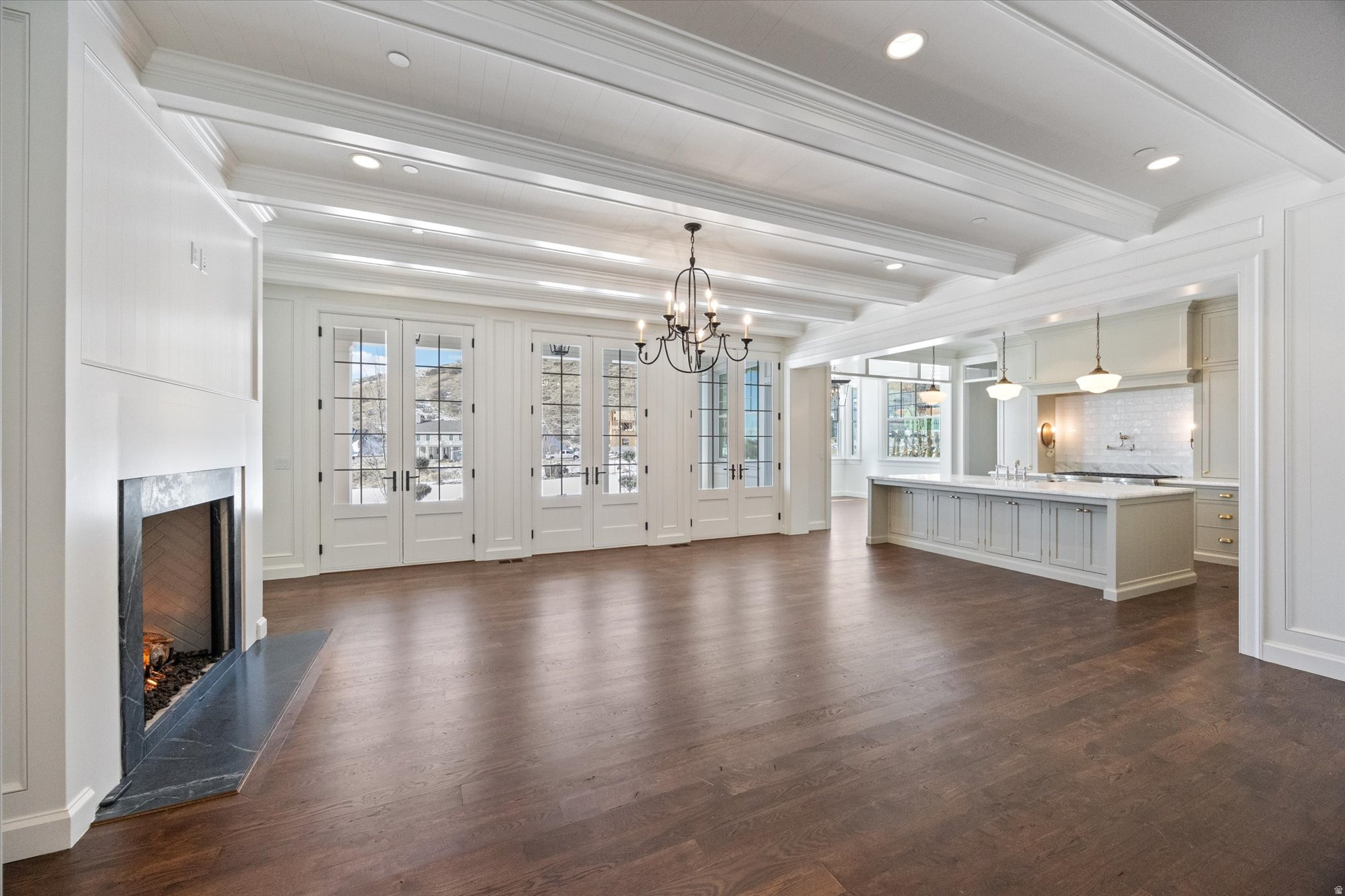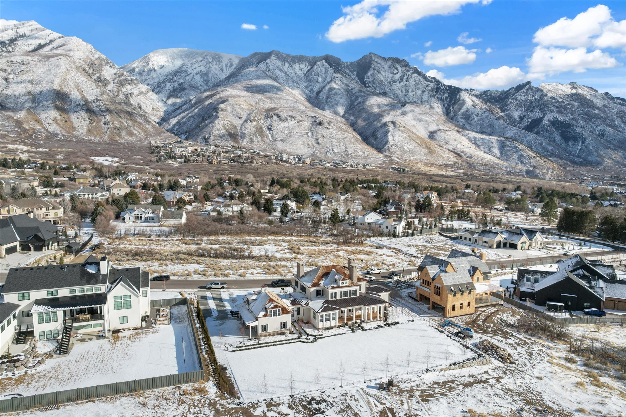 Classic architecture at its finest. This colonial style home is located in the middle of one of the most exclusive neighborhoods in Alpine. The Ridge consists of estate lots that are nestled up against the Wasatch Range with breathtaking views of Lone Peak and Box Elder. Every detail of this incredible home has been meticulously planned by award-winning designers Alex Adamson for the interior and Emily Brooks Wayment for landscaping. Set on a flat, rectangular lot, this home will feature a large covered patio that overlooks the nearby mountain trail and spacious yard. The interior will impress with custom millwork and cabinetry, expertly curated fixtures, and intentionally designed living spaces. The large entryway gives way to a formal dining space and entertainer's great room with wall-to-wall French doors. The kitchen is a home chef's haven with a Wolf range, Subzero refrigeration, Cove dishwashers, and walk-through scullery with supplemental oven and pebble ice maker. A large, window adorned breakfast nook rounds out the space. The owner's wing of the main level includes a luxurious wardrobe room and primary suite with fireplace and morning deck. The second level will lead to three spacious en-suites with walk-in closets and a secondary laundry room. Ten foot basement ceilings expand the below-grade space, which will feature a glass door gym, theatre room, recreation area, tho additional bedrooms with en-suite bathrooms, and vast storage areas. The space above the garage is complete with a guest suite that will include a private bedroom, bathroom, kitchenette, and laundry closet. Full landscaping included in price. Do not miss out on the opportunity to call this one-of-a-kind home your own. Expected completion Fall 2025. More progress photos coming soon.
