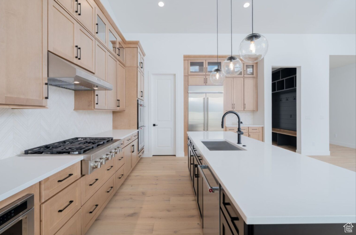 This stunning home is move in ready! The award winning floor plan has upgraded features throughout. A welcoming entrance offers views of hardwood floors and luxurious finishes. The stunning kitchen boasts a designer backsplash, modern cabinets, and upgraded countertops. The casual dining area is adjacent to the kitchen and provides a convenient and intimate setting. The great room is the perfect setting for relaxation with its cozy 55" fireplace and ample natural light. The primary suite is in the back of the home for a more intimate, private setting. A luxurious primary bathroom boasts a dual-sink vanity, freestanding bath, a walk-in shower, a private toilet area, and large walk-in closet conveniently connected to the laundry room. A stacking door system leads to a full outdoor living space that offers outdoor living, dining, and entertaining. The community is situated just minutes away from shopping, dining, and entertainment! Call agent for details/showings.