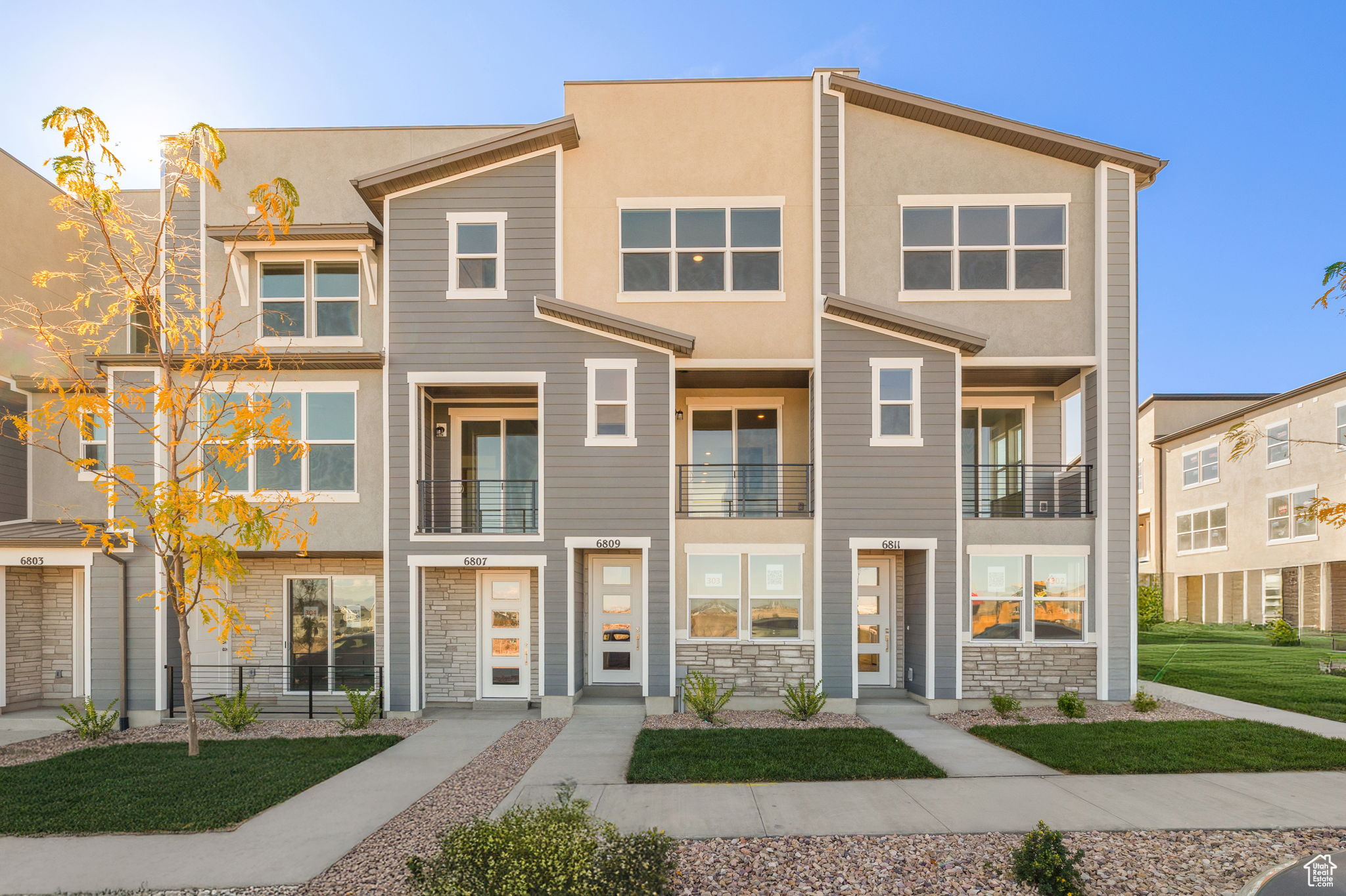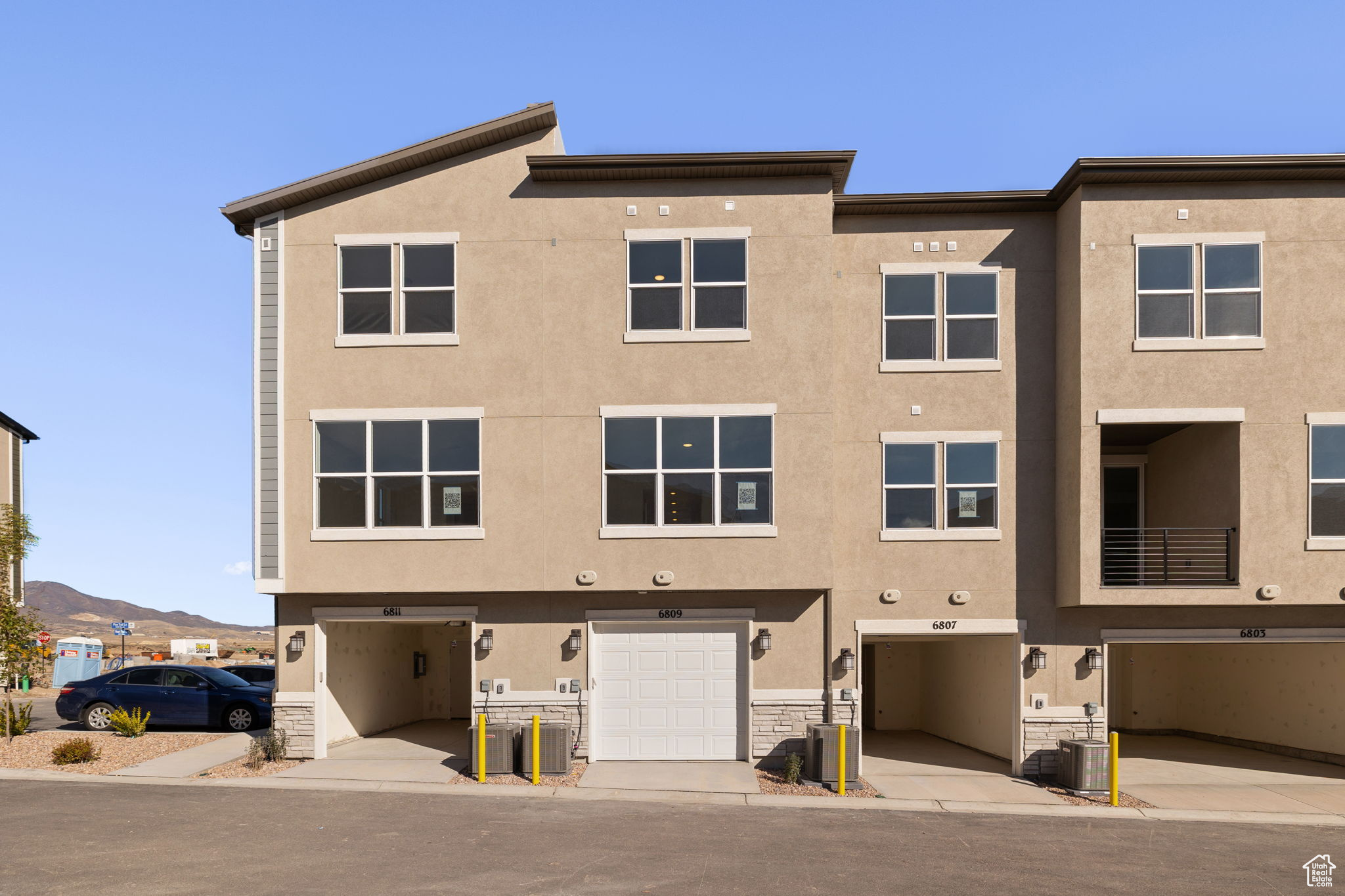 Welcome to Joshua Tree in Herriman, a vibrant townhome community where modern design meets effortless living. The Holland plan at Joshua Tree a stylish 3-story townhome featuring 3 bedrooms, 3.5 baths, and 1,730 sq ft of thoughtfully designed living space. Enjoy modern finishes like granite countertops, stainless steel appliances, and 9' ceilings, plus a private deck. With energy-efficient features, a spacious primary suite, and landscaping maintained by the HOA, this home blends comfort, convenience, and low-maintenance living in the heart of Olympia.