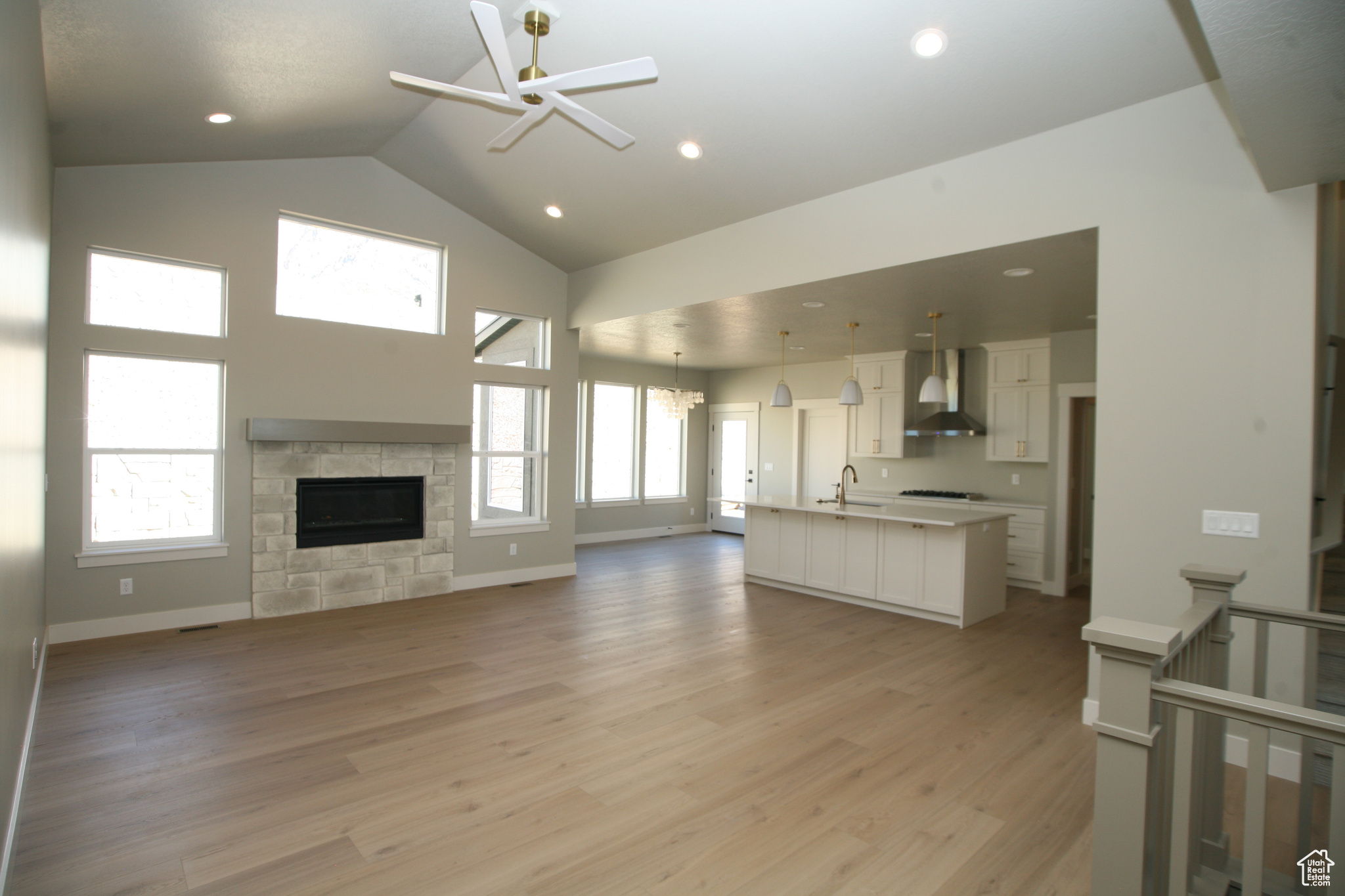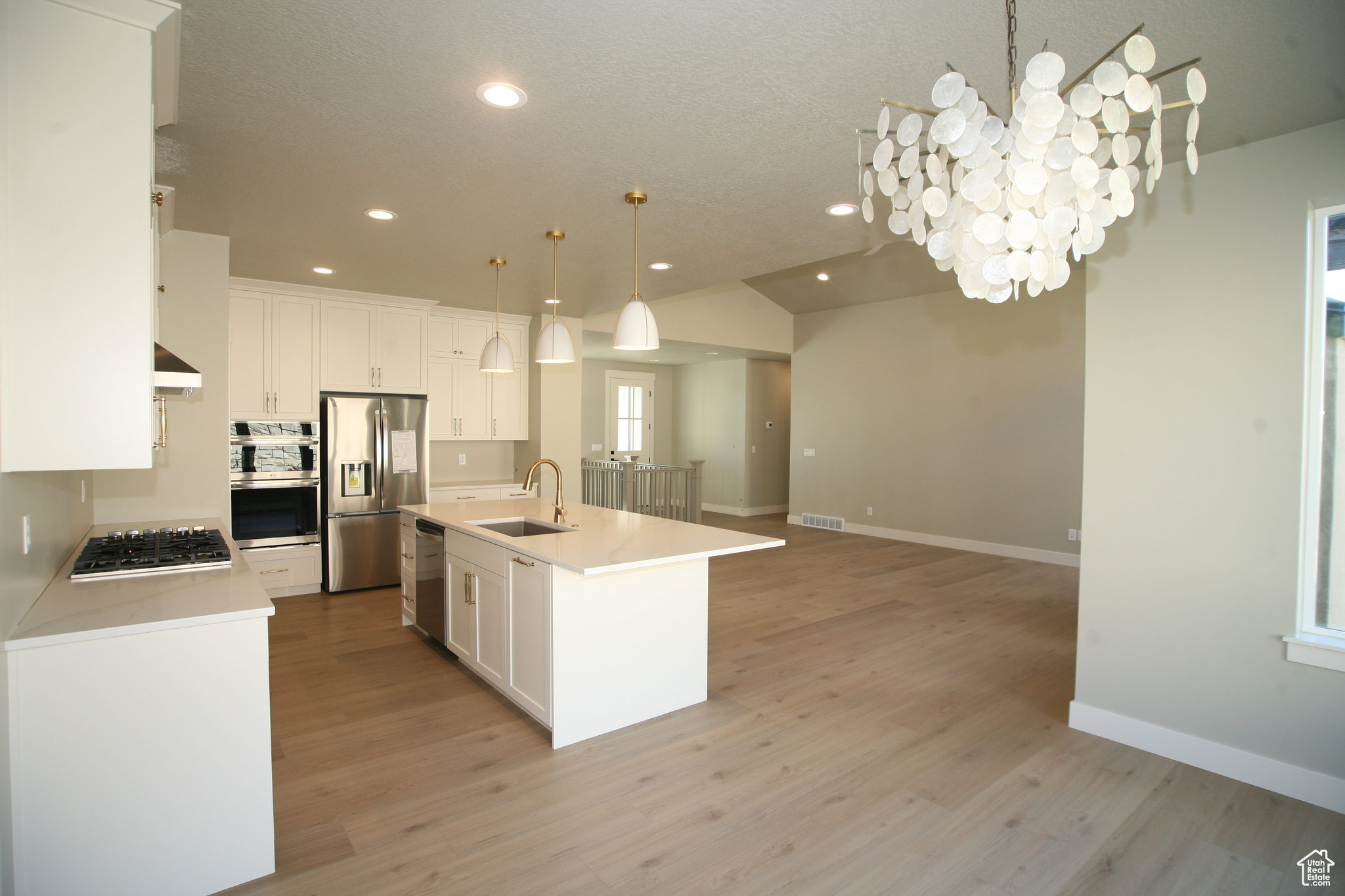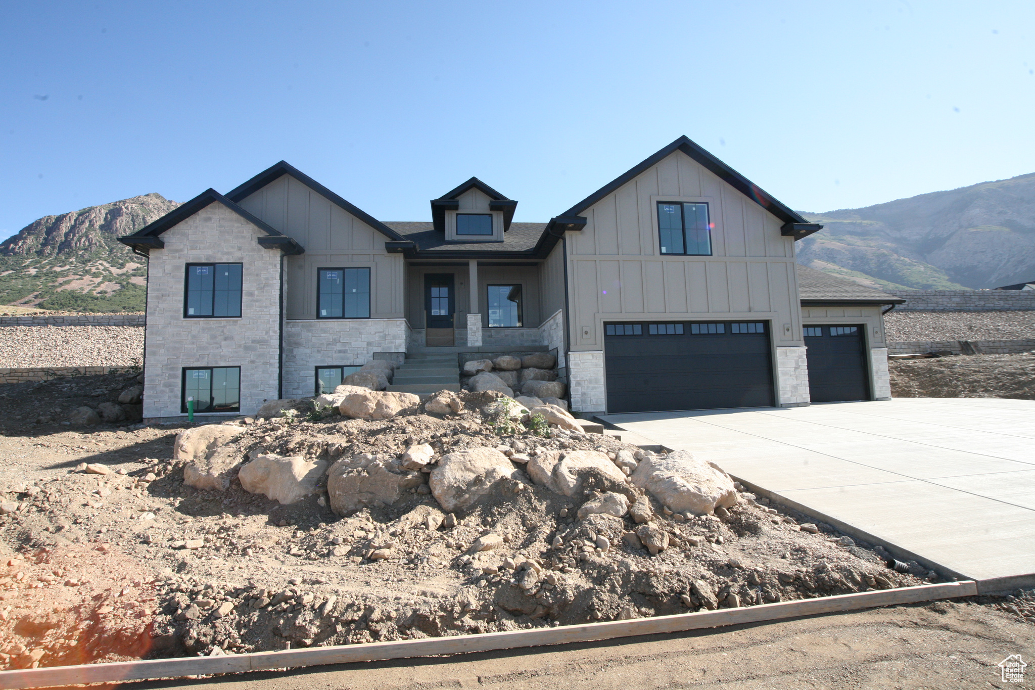 Brand New Home surrounded by mountains and valley views. All the features of a custom home are included in this home. The grand entry, gourmet kitchen, with gorgeous custom cabinets and quartz countertops and stunning backsplash make this kitchen a dream, for those that love to cook you will love the upgraded appliances, Wall ovens, gas cooktop, chef grade hood and fridge is included. Don't forget the storage with walk in pantry. The nice great room, with vaulted ceiling, stone fireplace and wall of windows make this area so spacious. The open stairwell and entry makes this home say welcome. The bonus space off the main level is so nice could be used for so many things, and the views are amazing. The Master suite getaway gives you a spa feel with freestanding tub, double wide shower, with double sink vanity and walk in closet gives you the space you need to relax. Closets and storage areas are well planned. The structural details you will enjoy with 9 foot basement ceilings, 9 foot and 11 foot main level ceilings and grand vaults. The home a nice 3 car garage with nice height, and a wonderful RV Pad. The basement space has 2 additional bathroom, 3 bedrooms, Laundry, Kitchen with full appliances. Home is finished, it will be ready to move into 1/30/25 only thing left is kitchen backsplash and final cleaning. You will love the home if you like quality features, with a great flow and amazing views. If this home does not fit your needs check into our 4 other homes available in this same neighborhood.