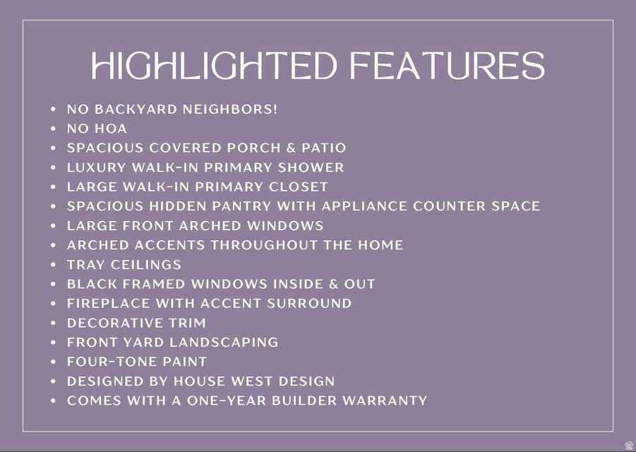No HOA and no backyard neighbors!!! This thoughtfully crafted new build pairs timeless style with practical comfort. Featuring tray ceilings, black-framed windows, and a fireplace with accent surround, the open layout is both airy and inviting. Enjoy a luxury walk-in primary shower, freestanding tub, and a large closet, plus a hidden pantry with appliance counter space to keep things tidy. Arched accents and large front arched windows add architectural charm. Out back, a spacious covered patio awaits. Located in a nearly complete community just minutes from trails, golf, dining, and schools-with easy access to Sand Hollow, Zion, and more. One-year builder warranty included!