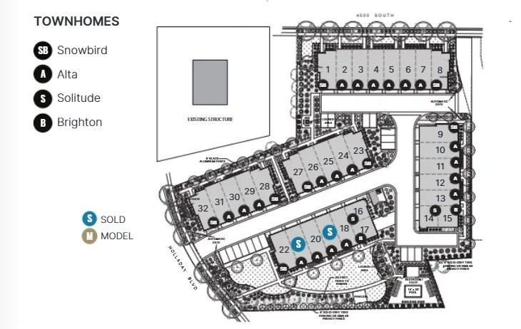 This brand new luxury townhome gated community is nestled in the heart of Holladay below majestic Mount Olympus. First phase will be move-in ready by the end of the year. Conveniently located near ski resorts and within walking distance to shopping, restaurants, and parks with easy access to I-15 making commuting a breeze. Designed to offer comfortable and modern living, this community is a perfect place to call home. Features include a year round heated spa, solid hardwood custom cabinetry, 10' ceilings and rooftop decks with privacy walls on every townhome! Enjoy maintentance free living with landscaping and snow removal taken care of! Other floor plans available.