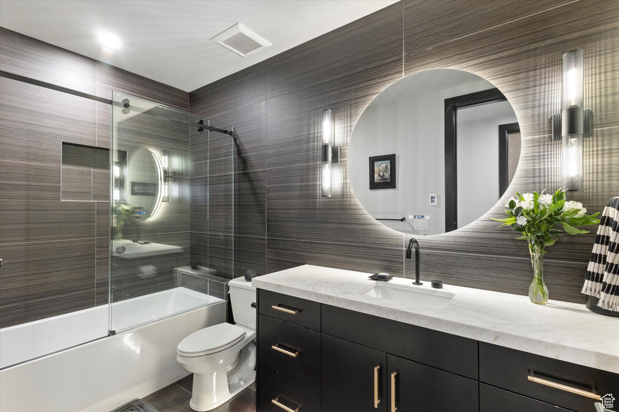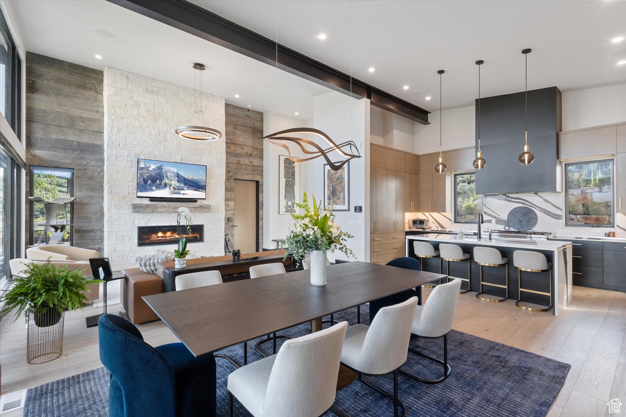Welcome to your mountain sanctuary-an exquisitely crafted, furnished, 4.5-bath plus study, and 4.5 bathroom custom home in the private, gated community of Tuhaye. Set on 0.83 acres at the end of a quiet cul-de-sac, this 4,050 square foot residence blends timeless design with exceptional craftsmanship, offering sweeping southern views of the Uinta Mountains and Victory Ranch below. Designed for comfort and entertaining, the main level features a sunlit great room with floor-to-ceiling windows, wide-plank hardwood flooring, and a seamless flow between the kitchen, dining, and living spaces. A chef's dream kitchen is outfitted with Thermador appliances, including a six-burner gas stovetop with griddle and double ovens. Enjoy outdoor living and dining from the expanded south-facing deck that captures breathtaking fire-side views and year-round mountain beauty. The home offers two luxurious primary suites on the main level, with additional bedrooms and a large game room on the lower walkout level. A hidden speakeasy adds a unique and memorable touch-perfect for intimate gatherings or aprs-ski evenings. The lower patio offers more space to entertain with a hot tub and spectacular views. Austin limestone and reclaimed barn wood add warmth and texture throughout the home. Designer lighting by Hubbardton Forge and radiant-heated tile floors further elevate the space. The oversized garage includes built-in cabinetry and an epoxy finish for a clean, custom look. Full Talisker Club Membership is included granting exclusive access to a wealth of world-class amenities: the Tuhaye clubhouse, Basecamp, Moondance, Wildstar Kids Club, spa, fitness center, pools, tennis, pickleball, mountain biking trails, and the Mark O'Meara-designed championship golf course, plus a 9 hole par three course. You'll also enjoy access to Talisker's Empire Pass amenities, including the ski-in/ski-out ski lounge at Silver Strike,stunning lodge, pool, fitness center, and brand new spa. Talisker Club Membership available with separate purchase. Buyer to verify all info.