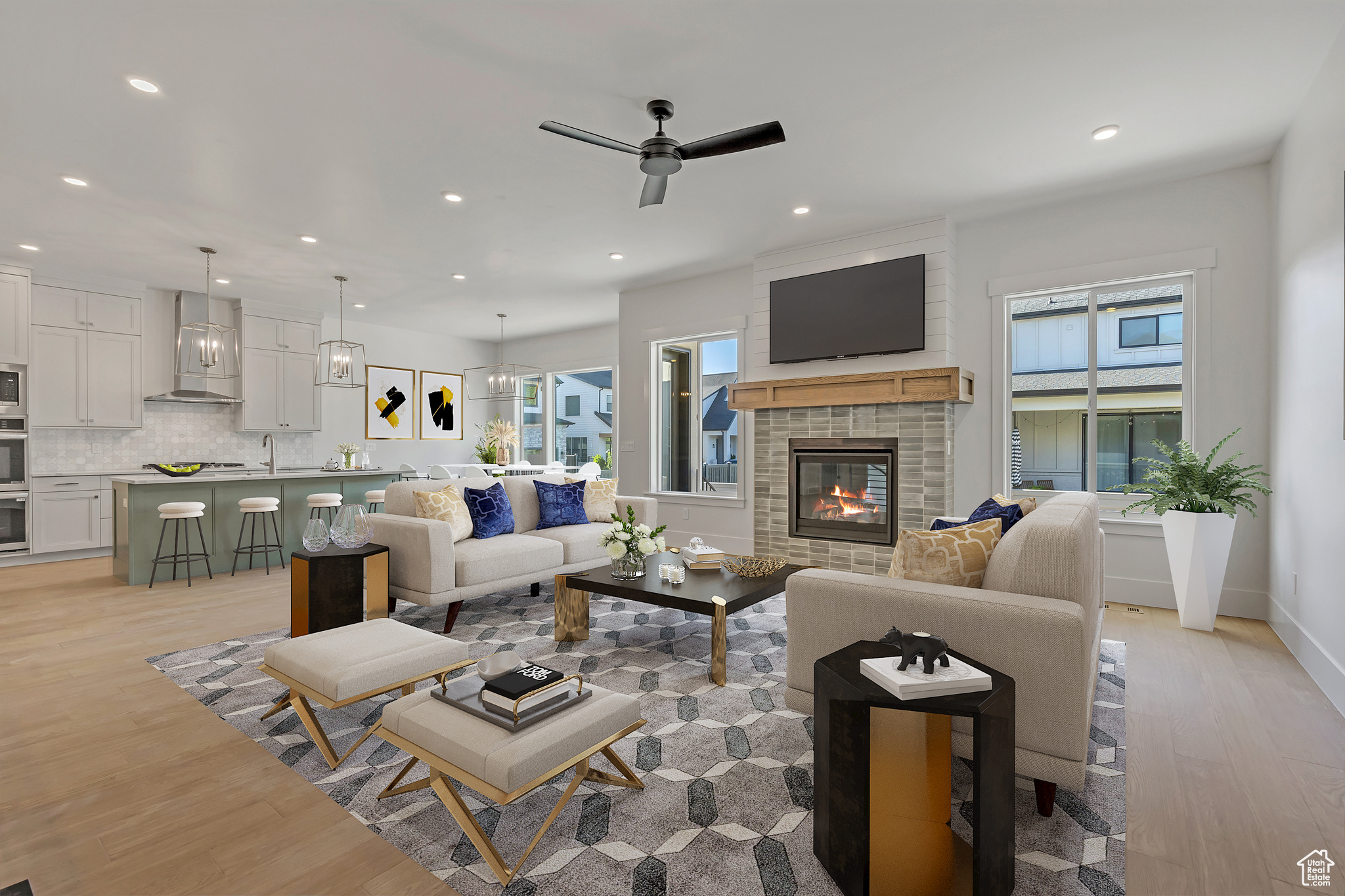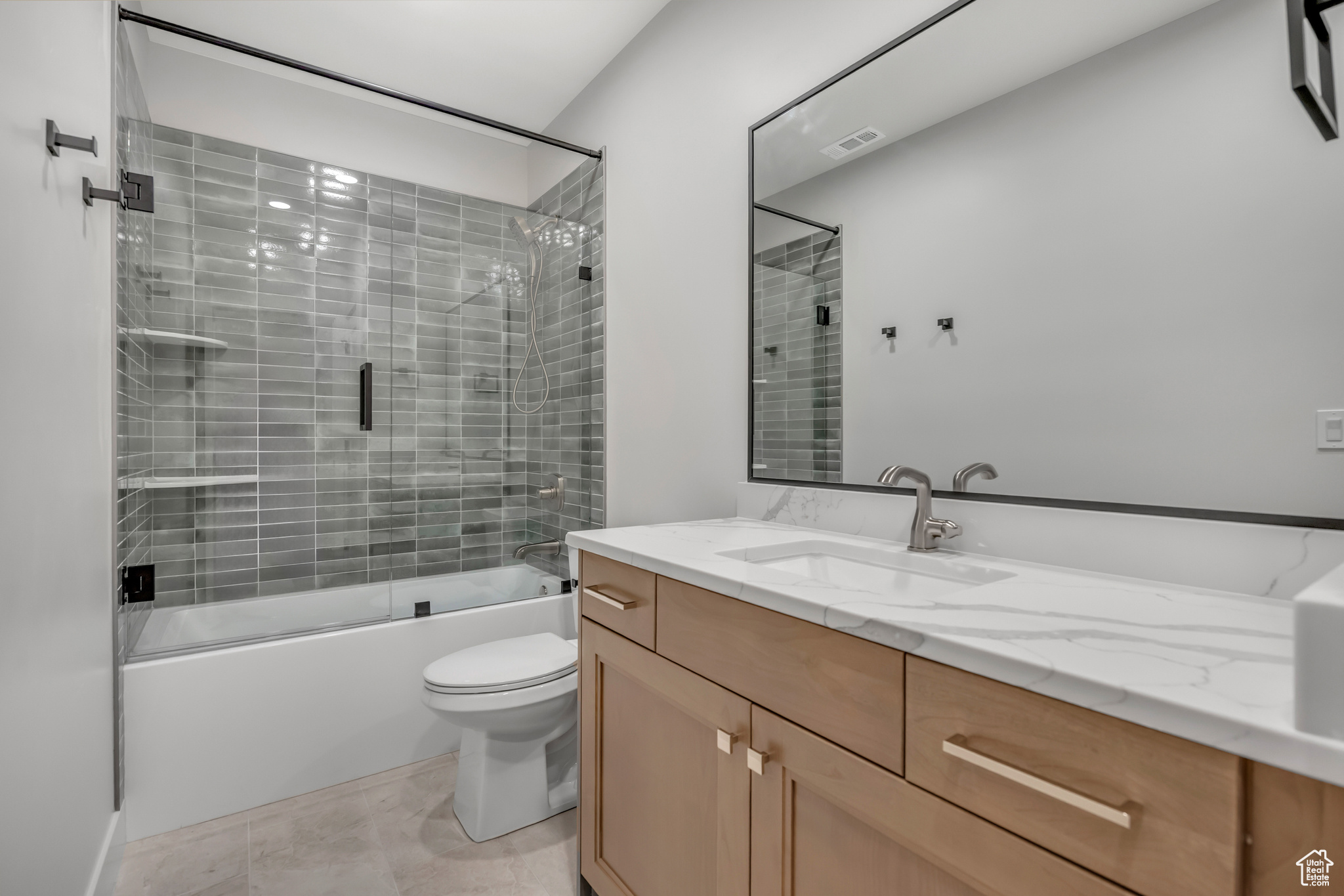 Move in ready and BRAND NEW this charming rambler offers the perfect blend of convenience and comfort with easy access to I-15 and Bangerter Highway. Boasting a fully finished basement, this home provides ample space for family living and entertaining. It includes 5 finished bedrooms, an office plus a gym/flex space, 4 full bathrooms and laundry space on the main level and basement! Custom options and thoughtful design details throughout make this home a must-see for those looking for functional, stylish main-floor living with plenty of room to grow. There are only a few homes available in this new community that are each curated with beautiful finishes. Do not miss the opportunity to make it yours!