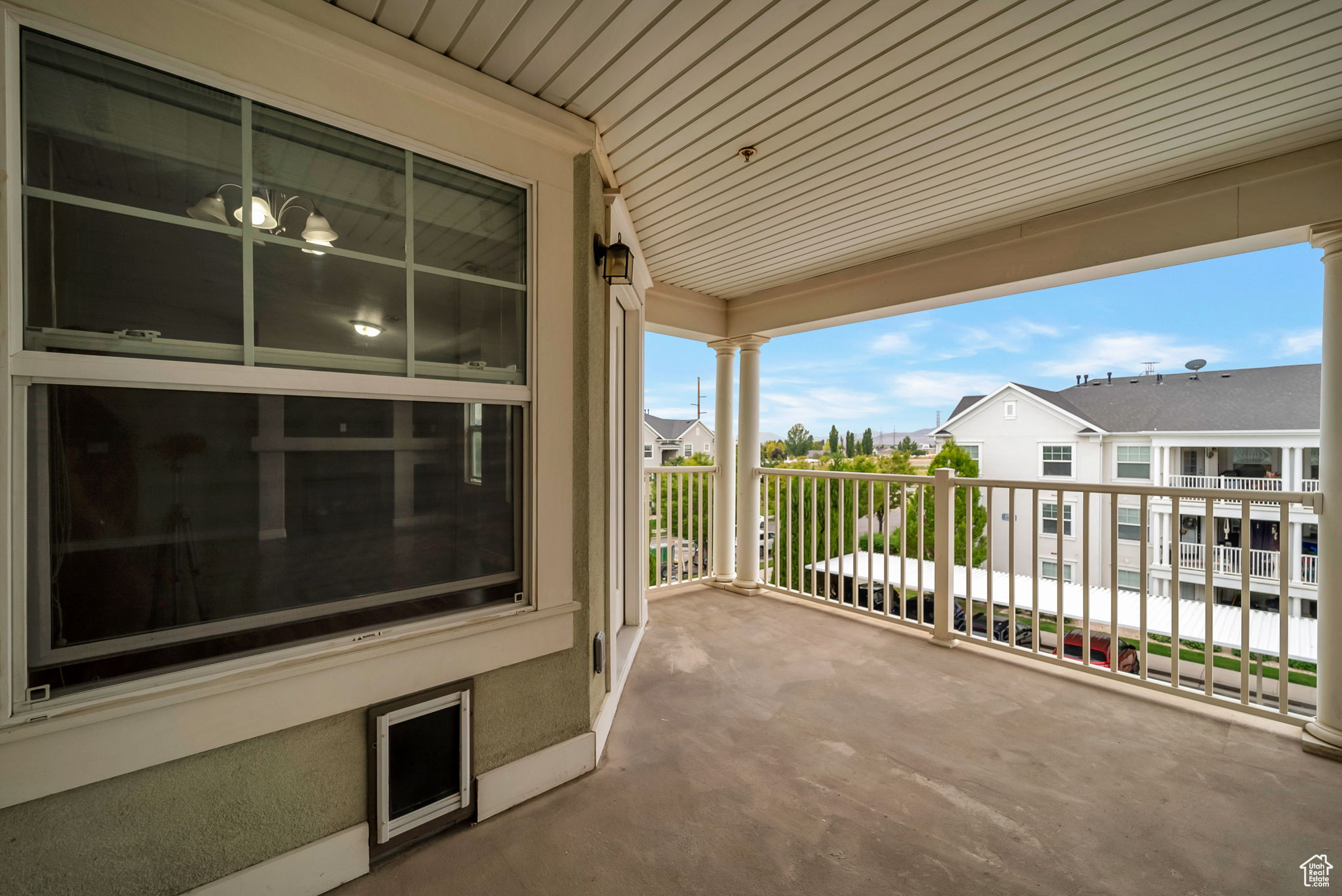 New Carpet! Take a look at this 3-bedroom, 2-bath top-floor condo nestled in the heart of the Daybreak community. Freshly updated with brand-new carpet, this home offers a bright, open layout with vaulted ceilings that create an airy, spacious feel. Enjoy evening sunsets from your private covered deck, complete with a built-in pet door-perfect for your small dog or cat to roam freely. The oversized laundry room and generous walk-in closets provide ample storage and convenience, while your covered parking space keeps your vehicle protected year-round. Whether you're a first-time buyer, downsizing, or seeking a low-maintenance lifestyle in a vibrant neighborhood, this condo checks all the boxes. With access to Daybreak's trails, parks, and community amenities, you'll love where you live.