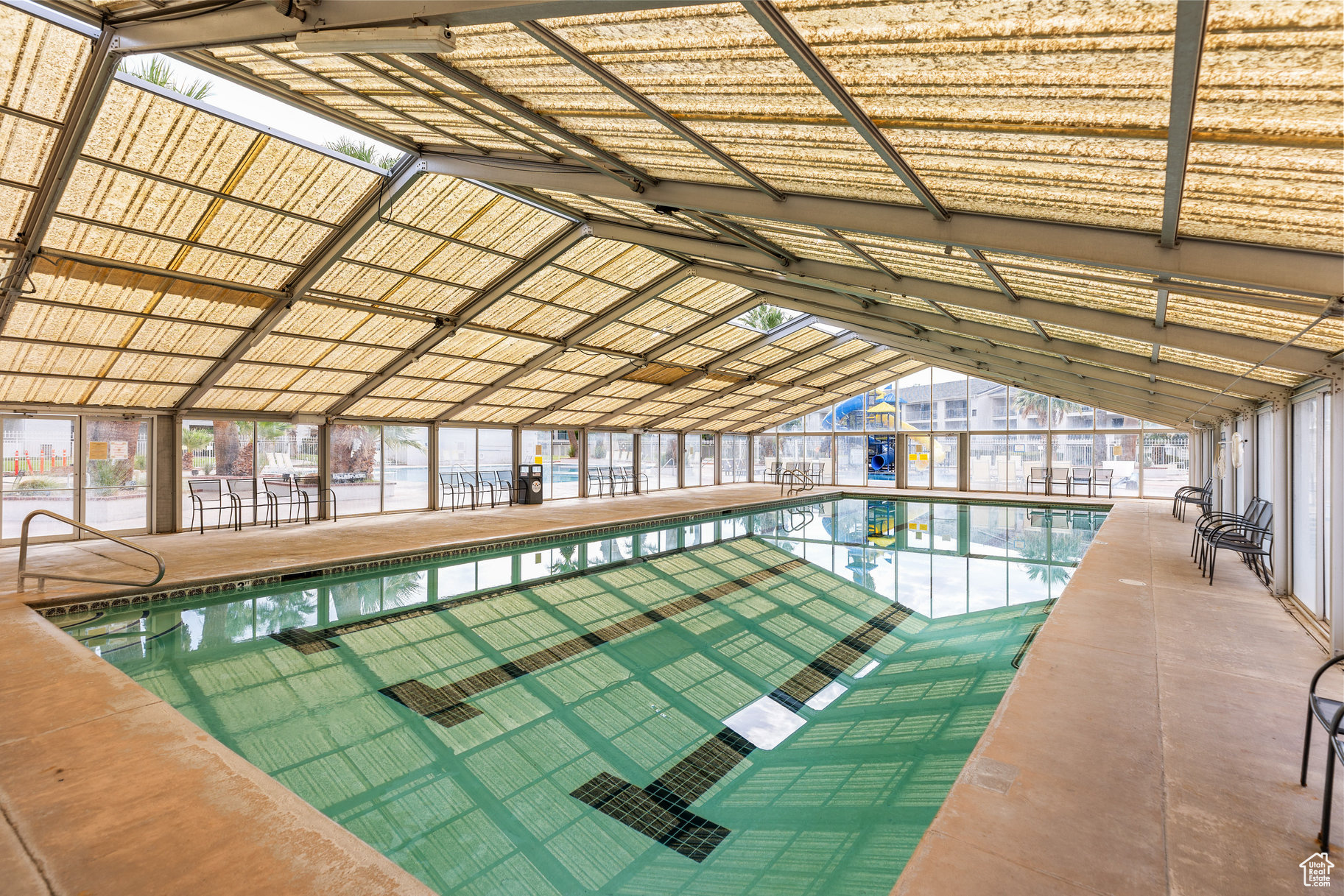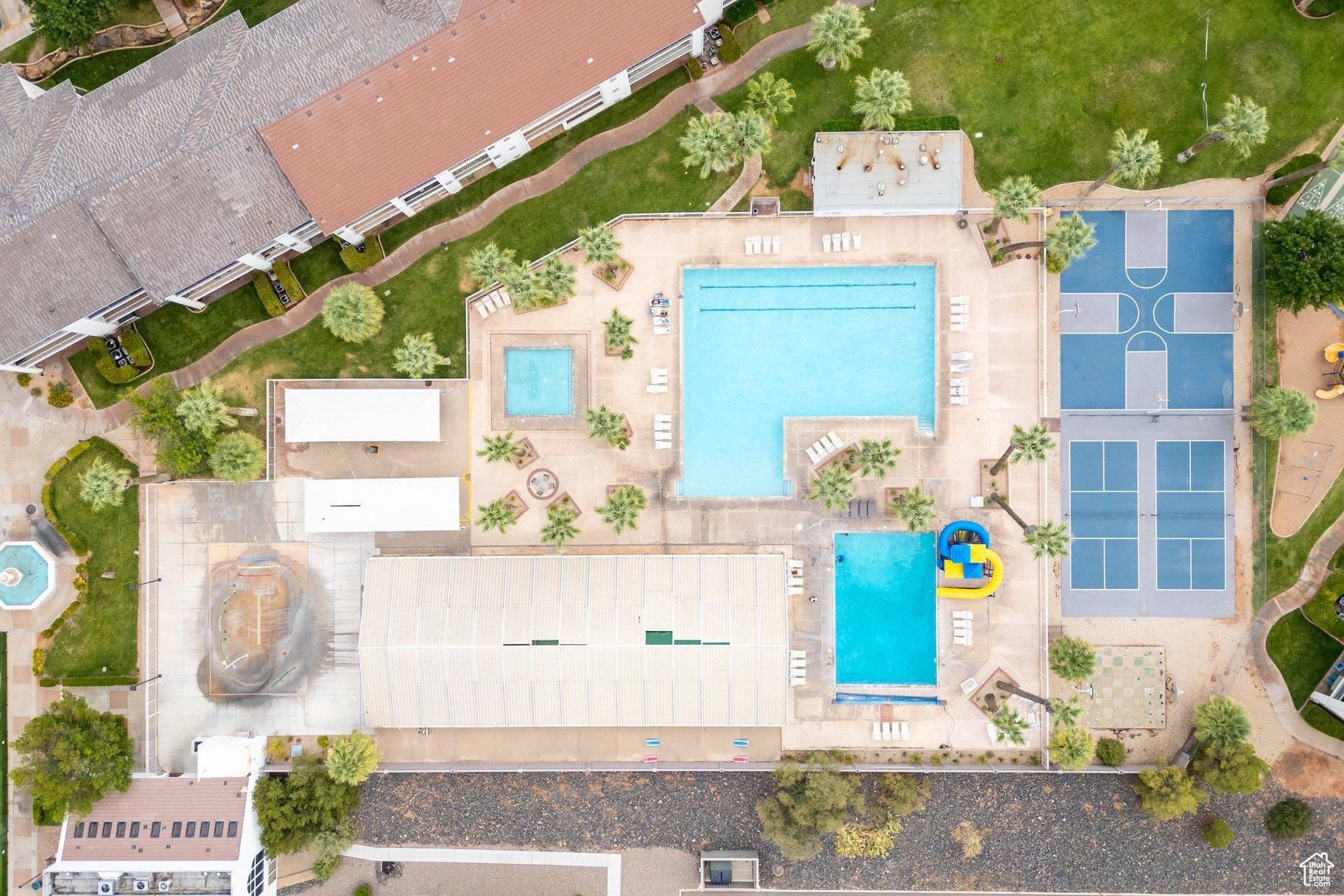 Enjoy the best of both worlds-personal getaway and Short Term Rental zoned investment opportunity-in this 1-bedroom, 1-bath condo in the sought-after Las Palmas community. This inviting vacation rental unit features a functional layout with a cozy living area (including a queen sleeper sofa with an Air Dream mattress), a patio overlooking the pool, plantation shutters, painted cabinets, new LVP flooring, and kitchen can lights. The bathroom offers a walk-in shower with grab bars, new toilet, and updated mirror. Elevator access means no steps, and the detached garage includes built-in wood shelving for extra storage. HVAC was replaced in 2022, and a furniture package option makes it nearly turn-key. Las Palmas offers beautifully landscaped grounds, 6 pools, 4 hot tubs, pickleball and tennis courts, bacci ball, a clubhouse, and playgrounds-perfect for your own use or attracting rental gueshis condo's prime location puts you close to the Greater St. George paved trail system, Snow Canyon State Park, Sullivan Soccer Park, golf courses (including PGA TOUR's Black Desert Golf Course), and countless hiking and cycling trails. It is close to the Zen bike trail system and within a short drive, you can explore Zion, Bryce, the Grand Canyon's North Rim, Sand Hollow, Quail Creek, Gunlock Reservoir, and Dixie National Forest. St. George's unique location at the intersection of the Mojave Desert, Colorado Plateau, and Great Basin, offers one of the most beautiful landscapes in the country-making this condo an incredible place to stay, play, or earn. The water heater was newly replaced in 2025 for added peace of mind All information herein is deemed reliable but is not guaranteed. The buyer is responsible to verify all listing information, including square feet/acreage, to the buyer's own satisfaction.