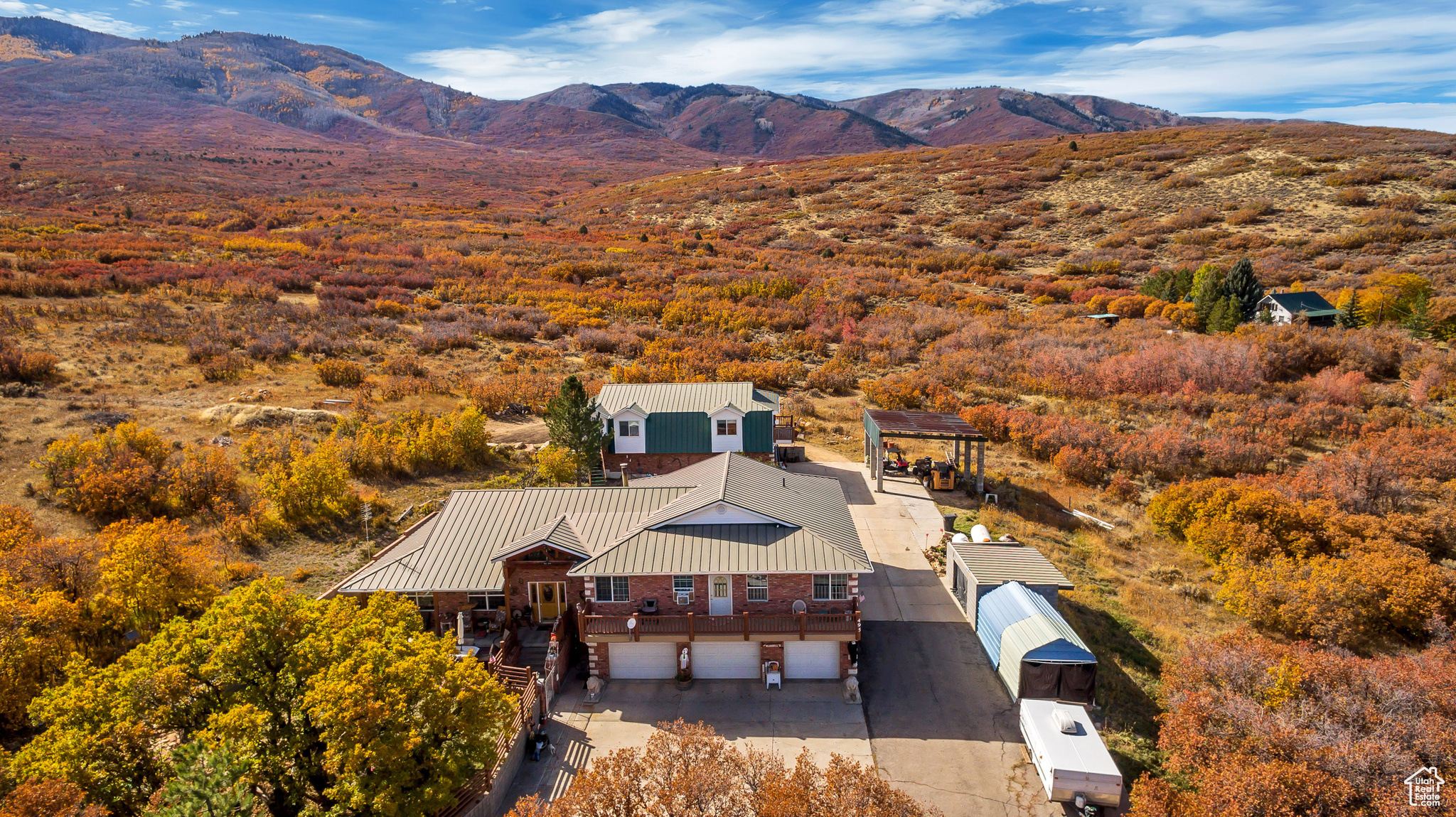 This home has been updated immensely including new interior custom paint, brand new carpet, updated electrical , updated showers, brand new gutters, new garage door motors, and list goes on and on! ***Come live in a custom built home in the quaint little town of Wallsburg! 15.61 acres Mountain views over looking Little valley!! The home was built in 1997 by a builder that intended on occupying the property forever! Now the seller is needing to down size. This all brick beauty boasts 4 bedrooms & 3 full bathrooms. The home has many upgrades including large rooms great for entertaining. There is a formal dining room, pool table/game room. Huge open kitchen featuring a detached bar that sits 8 barstools comfortably. Updated S&S appliances, extra large pantry. The home includes custom wood timbers & large picture windows. The casings & floor boards are real hard wood. flooring includes carpet, ceramic tile & (real hard wood). Enter the enormous master suite which includes a sitting area overlooking the valley & it also has a wet bar. The master suite also has a walk out balcony that extends the entire length of the master suite. The property also has a lot of storage which includes massive walk in closets in all the bedrooms. The property is heated with 2 large propane tanks that were recently filled. The home has a septic tank & a private well. The four car garage that is attached to house is approx..(1261 sq. ft.) includes 220 power & water. The home is heated with radiant heat (boiler system) & also has a wood burning stove.. Located directly behind the house is a detached garage that has living space above. The mother in law appt. is approx. (1617sq. ft) 2 bedrooms, full kitchen, full bath & laundry, family room & a large storage area. There are 2 entrances for the apartment. The garage below features power, with a 220 outlet, heated, plumbed with a half bath. The garage can fit 4 vehicles comfortably & is approx. (1470 sq. ft.). The home & detached garage both have metal roofs. There a couple of outbuildings that stay with property. This home has plenty of space to park & store all your vehicles & toys. The property is also zoned for animals! Come make this your dream home! Schedule a private showing today.
