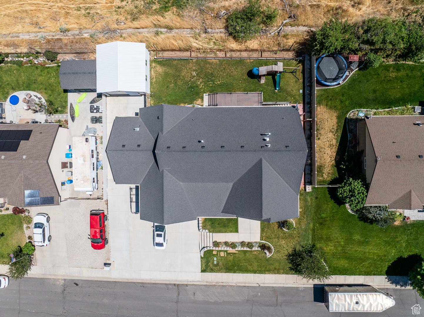 ** Price Reduced! ** The Main Floor has been repainted, all walls and base and case! Come check it out! This beautifully designed 5-bedroom, 3 full-bathrooms & One 1/2 Bath home nestled next to the mountains of Santaquin. This high-end property features thoughtful upgrades throughout and versatile spaces ideal for entertaining The main level boasts a large garage filled with storage, main level living, and a highly functional kitchen with a large fridge/freezer, double ovens, and a gas range. Create memories on the backyard deck, while getting a gorgeous view. Downstairs, discover a fully finished basement with its own kitchen, laundry hookups, and private entrance-ideal for guests, extended family, or rental potential. A standout feature is the custom movie theater room, perfect for entertaining friends in style. Step outside to enjoy a large patio, manicured yard, and a fully equipped workshop shed-perfect for hobbies or additional storage. Basement access is also achievable through the backyard. With ample parking and beautiful mountain views from nearly every angle, this home truly has it all.
