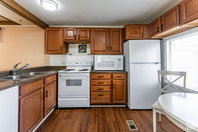This fantastic home is located in the beautiful Monte Vista 55+ community in Roy. It offers 2 bedrooms, brand new laminate flooring, carpet, all new paint throughout, new interior doors, blinds, updated bathroom with new lighting, full kitchen with granite countertops, loads of cabinets, new fridge, dishwasher & lighting plus new-ish furnace & water heater. Enjoy having a large covered patio with brand new trex decking, carport, shed and nice yard with sprinklers. The lot rent includes basic cable, water, sewer and trash. Anyone interested in this home needs to be approved by the park prior to submitting an offer. Don't wait, take a look at this affordable home today!