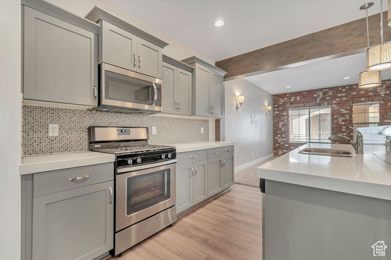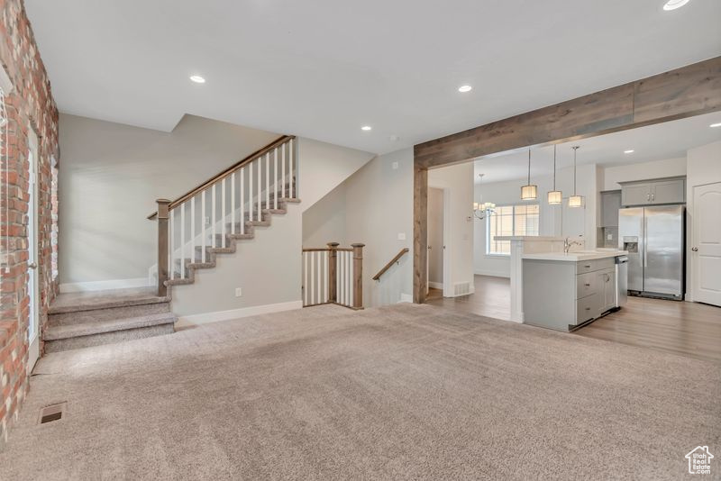 Located just five minutes from scenic American Fork Canyon, you'll have easy access to hiking, camping, and outdoor recreation. A large city park with a splash pad, walking trails, and shopping is also within walking distance. Enjoy top-tier community amenities, including a heated outdoor pool and spa, a gazebo with patio grill, a fully equipped gym, a theater room, and an entertainment space with a fireplace and full kitchen. This is maintenance free living at its finest-comfort, convenience, and outdoor adventure all in one unbeatable location. This beautifully upgraded 3-bedroom,2.5 bathroom townhome is located in one of Highland's most desirable areas. Designed with an open floor plan and flooded with natural light, the home offers a perfect blend of modern style and everyday comfort. The main level features a spacious great room complemented with wood beams and a brick wall accent, 9-foot ceilings, and recessed lighting. The kitchen boasts quartz countertops, stainless steel appliances, and abundant cabinet and pantry space. Step outside to a private balcony-ideal for grilling or unwinding. Upstairs, the luxurious primary suite is a true retreat, complete with vaulted ceilings, oversized vanity, and a generous walk-in closet. The lower level offers a versatile home office or flex space to suit your lifestyle needs.