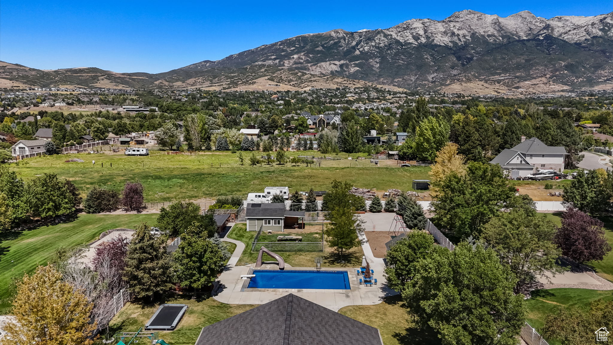 Multiply Offers***Send your Best Offer by September 29th@5:00*** Your Dream Gathering Place Awaits***Look no further - this is the home that truly has it all. From breathtaking views of the majestic mountains to the luxury of privacy and space, in an unbeatable location, this residence was designed for living, entertaining, and making memories. Picture summer evenings by the pool, surrounded by those you love, in a home that welcomes every occasion. This remarkable 5,070 sq. ft. retreat features: 8 spacious bedrooms and 3.5 bathrooms. A versatile basement apartment - perfect for guests, rental income, or multi-generational living. Storage galore with generous closets ready to be filled. Solar panels for energy efficiency. A private yard designed for pets, play, and your dream garden. It's more than a house - it's a place to gather, grow, and enjoy life to the fullest. See for yourself the warmth, space, and happiness this incredible home has to offer. Schedule your private showing today - homes like this don't come around often! Key Features: Instaheater Water Heater. The pool is 20 x 40, with a 4' shallow end and a 9' deep end. Windows and HVAC have been updated in the last 10 years. Square footage figures are provided as a courtesy estimate only and were obtained from the County Records. Buyer is advised to obtain an independent measurement. Buyer backed out before any due diligence was done.