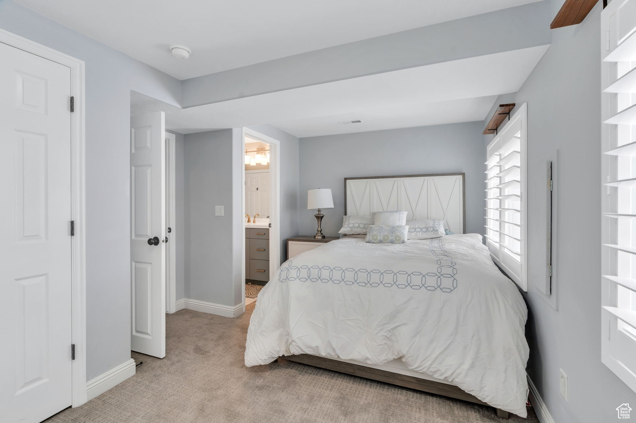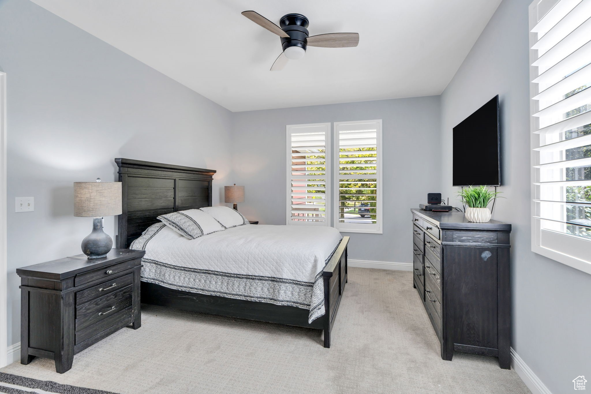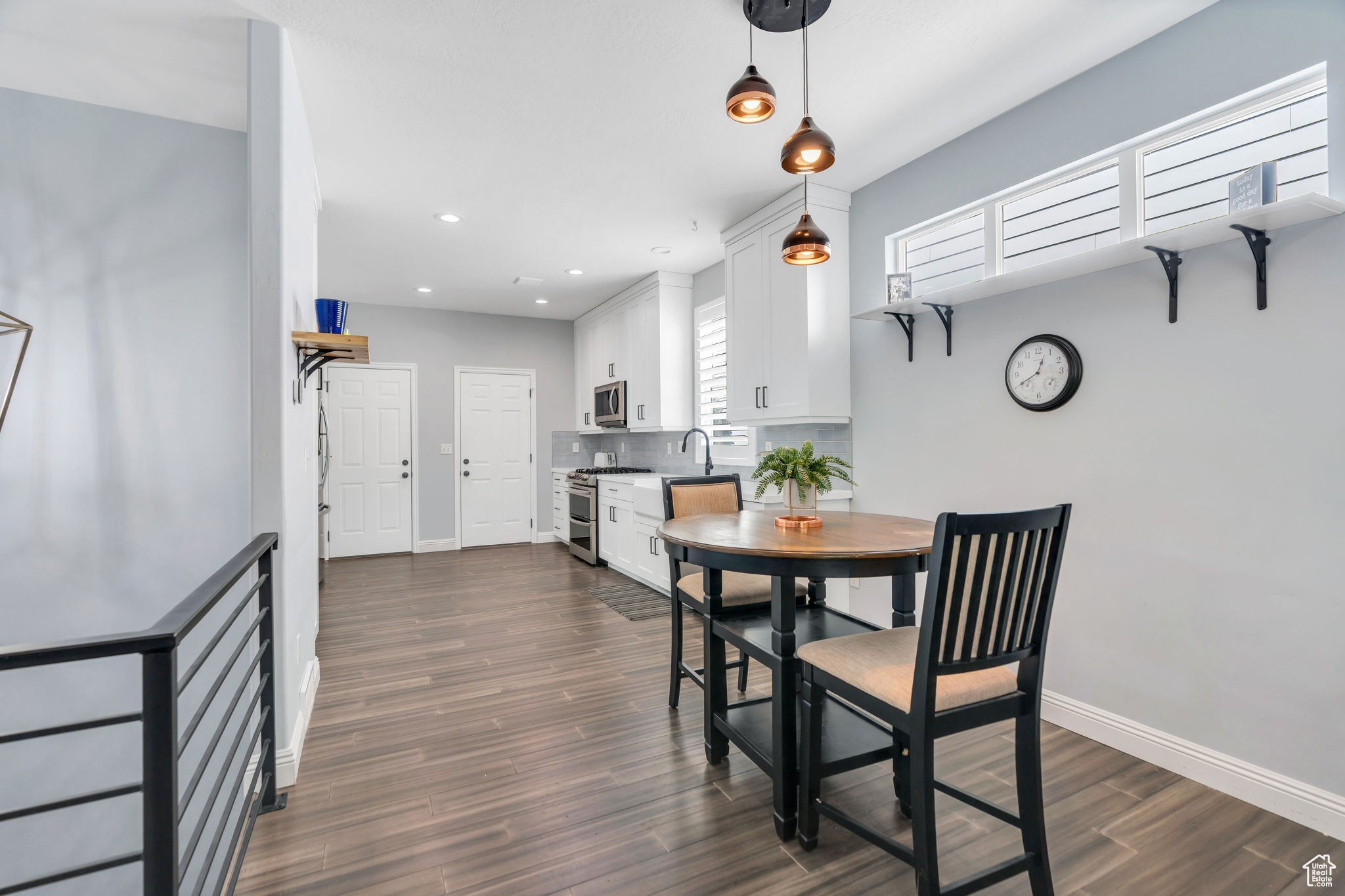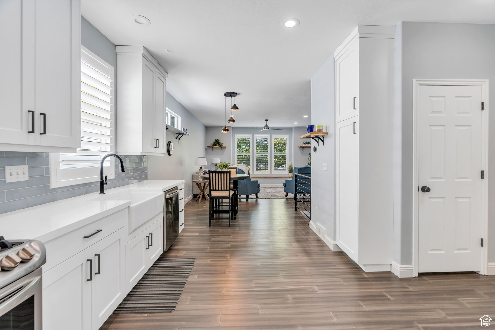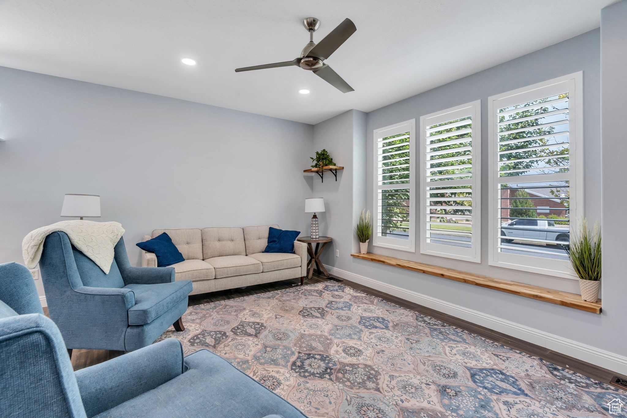 Nestled on a quaint, tree-lined street, this inviting Daybreak rambler offers the best of main-floor living. Step inside to a living room, alongside a bright, open kitchen featuring crisp cabinetry, stainless steel appliances, and plantation shutters and a main floor primary suite complete with a large walk-in closet. The finished basement expands your living space with a full bedroom and bath, plus a versatile flex room highlighted by a large built-in bookcase for added storage. Perfectly positioned, this home sits just across the street from the scenic Founders Park Trail and is only a short walk to Downtown Daybreak, where dining, shopping, and entertainment-including theaters-await. Sports enthusiasts will enjoy proximity to the SL Bees stadium, while the nearby Daybreak Community Center, home to the neighborhood's only indoor gym, offers basketball courts, volleyball, an indoor track, weight room, pool, and more. This is your chance to enjoy the ease of a thoughtfully designed rambler, paired with the unmatched lifestyle that Daybreak has to offer. Ask us how you can receive a 1% credit toward your closing costs when purchasing with our preferred lender!