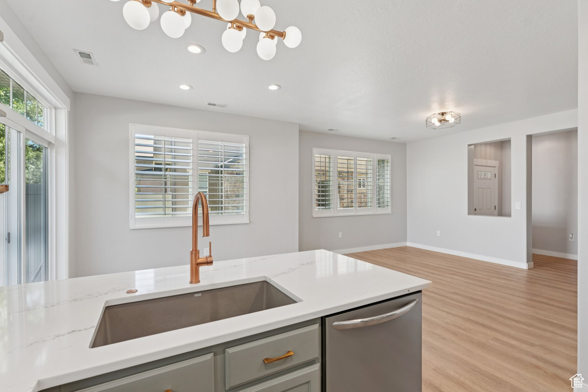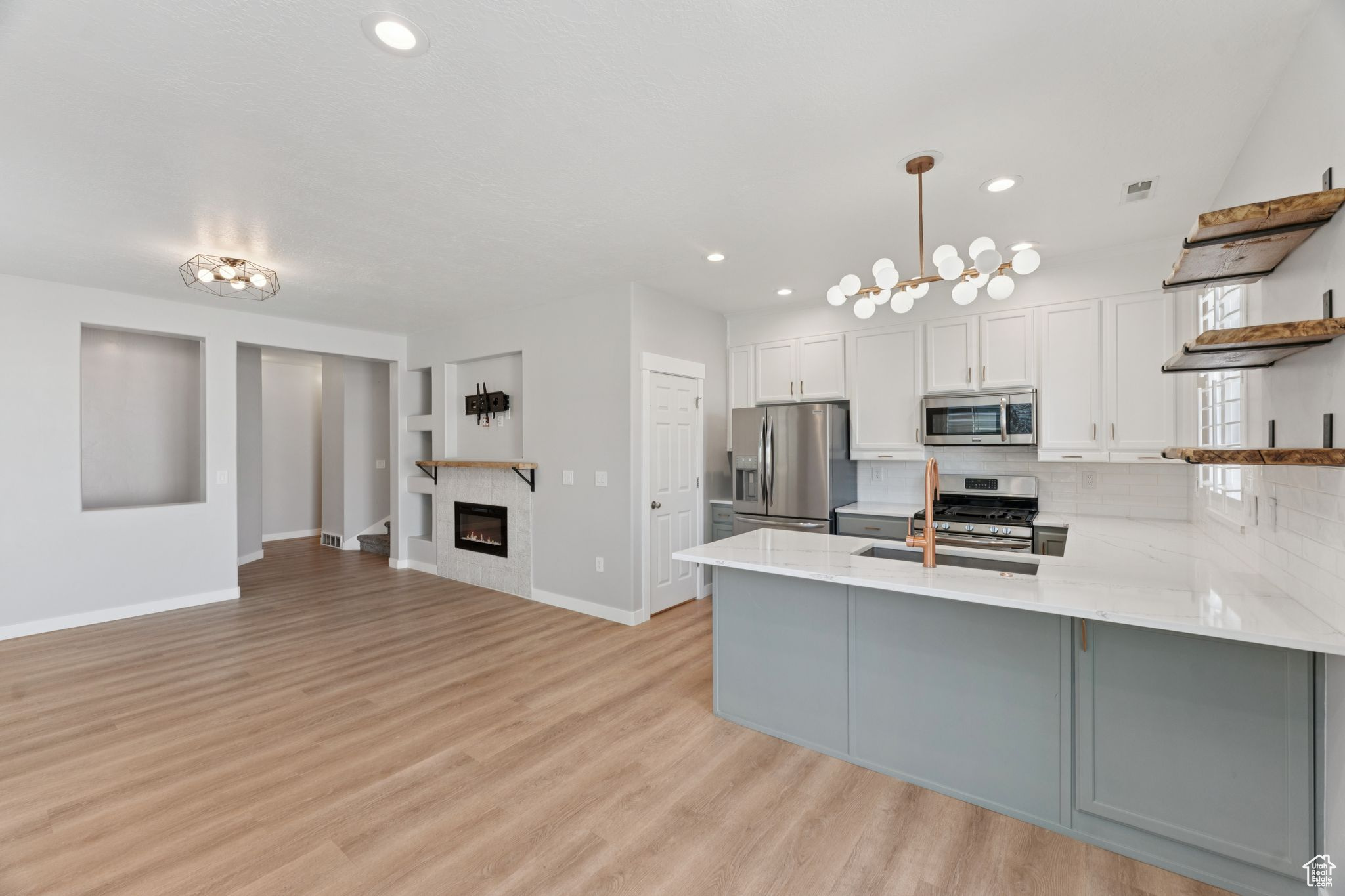 Located in the highly desirable Foxboro North community, this beautifully remodeled 3-bedroom, 2.5-bath townhouse offers 1,475 sq ft of bright, inviting living space just 15 minutes from downtown Salt Lake City and only 10 minutes from the airport. Residents enjoy access to resort-style amenities including three swimming pools, hot tub, gym, basketball courts, playgrounds, game room, and scenic walking trails. Legacy Park is only steps away, hosting community events and the ever-popular Food Truck Mondays. Inside, the home has been thoughtfully redesigned with a modern coastal-cottage style that blends warmth and charm with functionality. The main floor's open-concept layout centers around a custom fireplace with a barnwood mantle, creating a cozy yet stylish focal point. The kitchen is a standout feature, with Frigidaire Gallery appliances, quartz countertops, a large farmhouse sink, freshly painted cabinets, and beautiful open barnwood shelving. Copper fixtures and lighting complete the look, offering timeless character. Upstairs, the spacious primary suite includes a private bath, while two additional bedrooms provide flexibility for guests, family, or a home office. All bathrooms have been updated with tasteful finishes to match the home's coastal style. A washer and dryer are included, and the home comes equipped with a water softener for added convenience. Outdoor living is just as enjoyable, with a private fenced patio ideal for morning coffee, summer barbecues, or evenings by a fire pit. The single car attached garage offers both parking and storage, while the exterior's stone accents and covered entry enhance the home's curb appeal. This Foxboro North townhouse combines the best of location, design, and community. With a fresh remodel, modern upgrades, and unmatched neighborhood amenities, it's move-in ready and waiting for its next owner. Schedule your showing today and see why homes in Foxboro are so sought after.