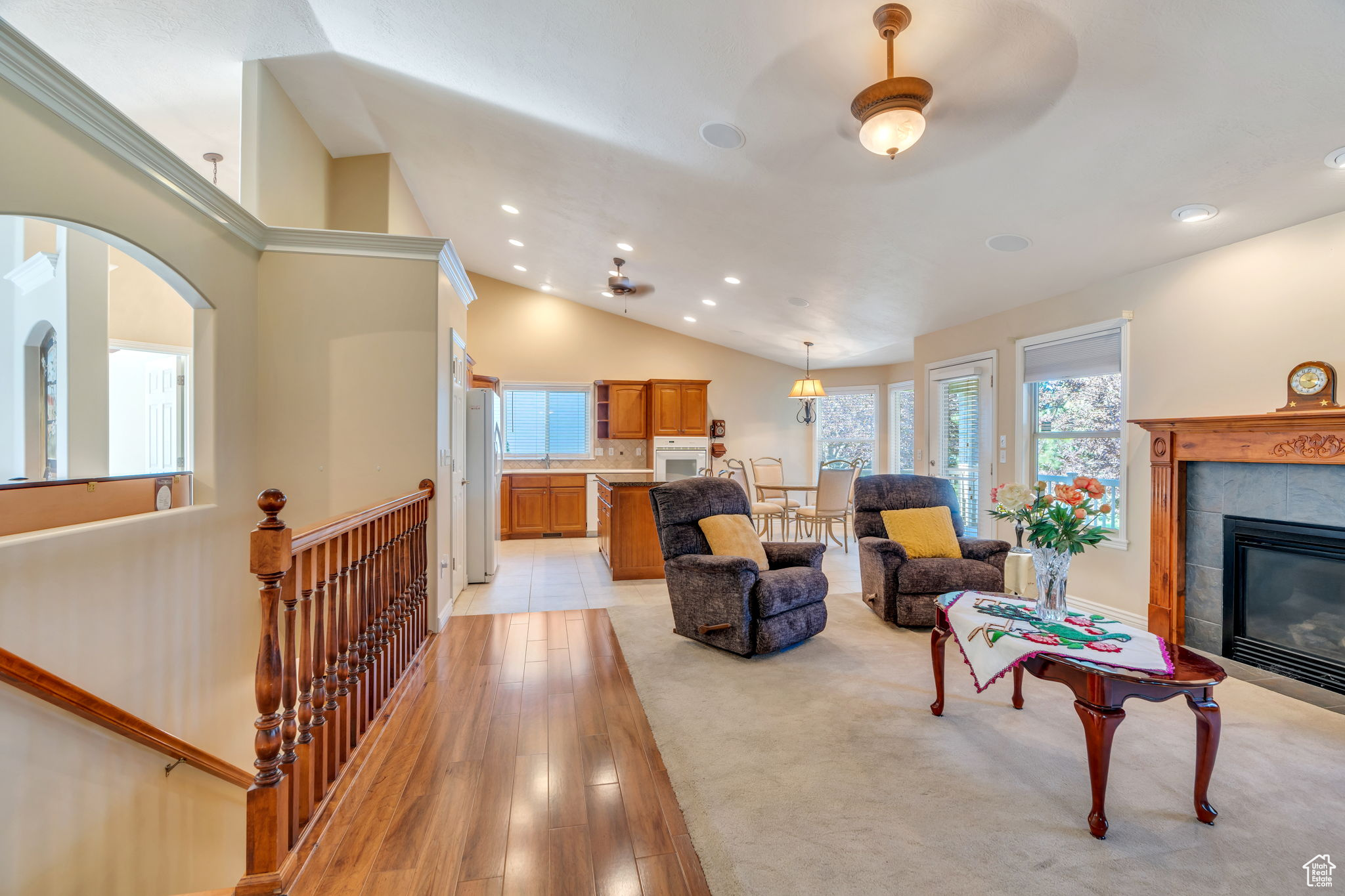 **Move-In Ready & Gorgeous 55+ Rambler in North Ogden! Motivated Seller ** This stunning home boasts 5 bedrooms, 3 bathrooms, and exceptional storage options. As you enter, you'll be welcomed by an inviting main-level layout, with a spacious family and dining room, a kitchen equipped with a breakfast bar and nook, and a cozy fireplace, enhanced by beautiful LVP wood flooring. Enjoy main-level living with 2 bedrooms and 2 bathrooms, including the roomy primary suite featuring an en-suite bathroom, jet tub, and walk-in closet. Step outside to a covered Trex deck, perfect for relaxing or entertaining while taking in breathtaking mountain views and unobstructed landscaped gardens. The fully finished basement offers an additional 3 bedrooms, a full bathroom, a large family room, exceptional storage, and a private walkout-ideal for guests, hobbies, or extra space. The homeowners' association (HOA) provides comprehensive exterior care, which includes landscaping, lawn maintenance, pest control, sprinkler system upkeep, and snow removal, ensuring a hassle-free and maintenance-free living experience. Additional features of this home include a transferable IBEX home warranty, furnace humidifier, ceiling & deck speakers, roof heating snow strips, plumbed for a water softener, new water heater expansion tank/pressure release valve, new Milgard windows in the primary bedroom and bathroom, and a new Tefco security door for the basement walkout. Conveniently located near shopping, dining, medical facilities, and golf, this home is just minutes away from Nordic Valley, Wolf Creek, and Powder Mountain. Enjoy comfort, convenience, and peace of mind in a quiet, well-kept neighborhood with stunning mountain views, front and back yard. Schedule your showing today! Agents, please schedule through Aligned Showings with a 2-hour notice. For any questions, contact the Listing Agent.
