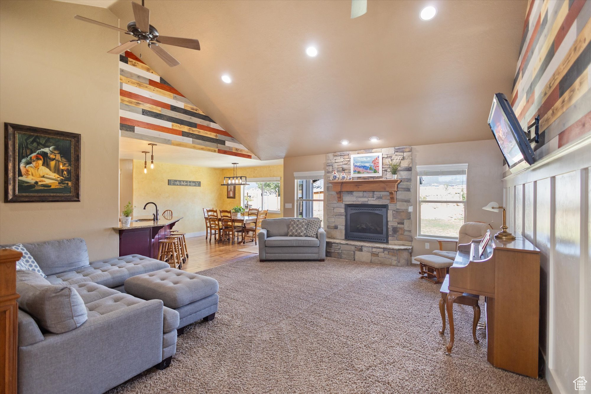Welcome to your next chapter in Mount Pleasant-where space, comfort, and self-reliant living come together. This 5-bedroom, 3-bath home with main-level living is designed for both everyday ease and memorable gatherings. The open great room greets you with soaring ceilings, custom wood accent walls, and a kitchen built for connection-complete with granite counters, breakfast bar seating, and rich wood cabinetry. Downstairs, a large recreation room, bedrooms, and bonus spaces give everyone room to spread out. Upstairs, a versatile bonus/school room flexes to your needs. Step outside to find fenced garden beds ready for planting, a play area, and chicken coop with milking stand-all with sweeping mountain views. With 15'x44' RV parking (with full hookups), a spacious garage, and thoughtful storage throughout, this home balances modern convenience with country charm. You'll find all the amenities you need in Mt Pleasant - grocery store, home center, hospital, furniture store, aquatics center, the cutest shops, and even a drive-in theater! Not to mention all of recreation of hiking, biking, ATV trails, snowmobiling and UTV on Skyline Dr. The list goes on and on! Come see what it's all about!