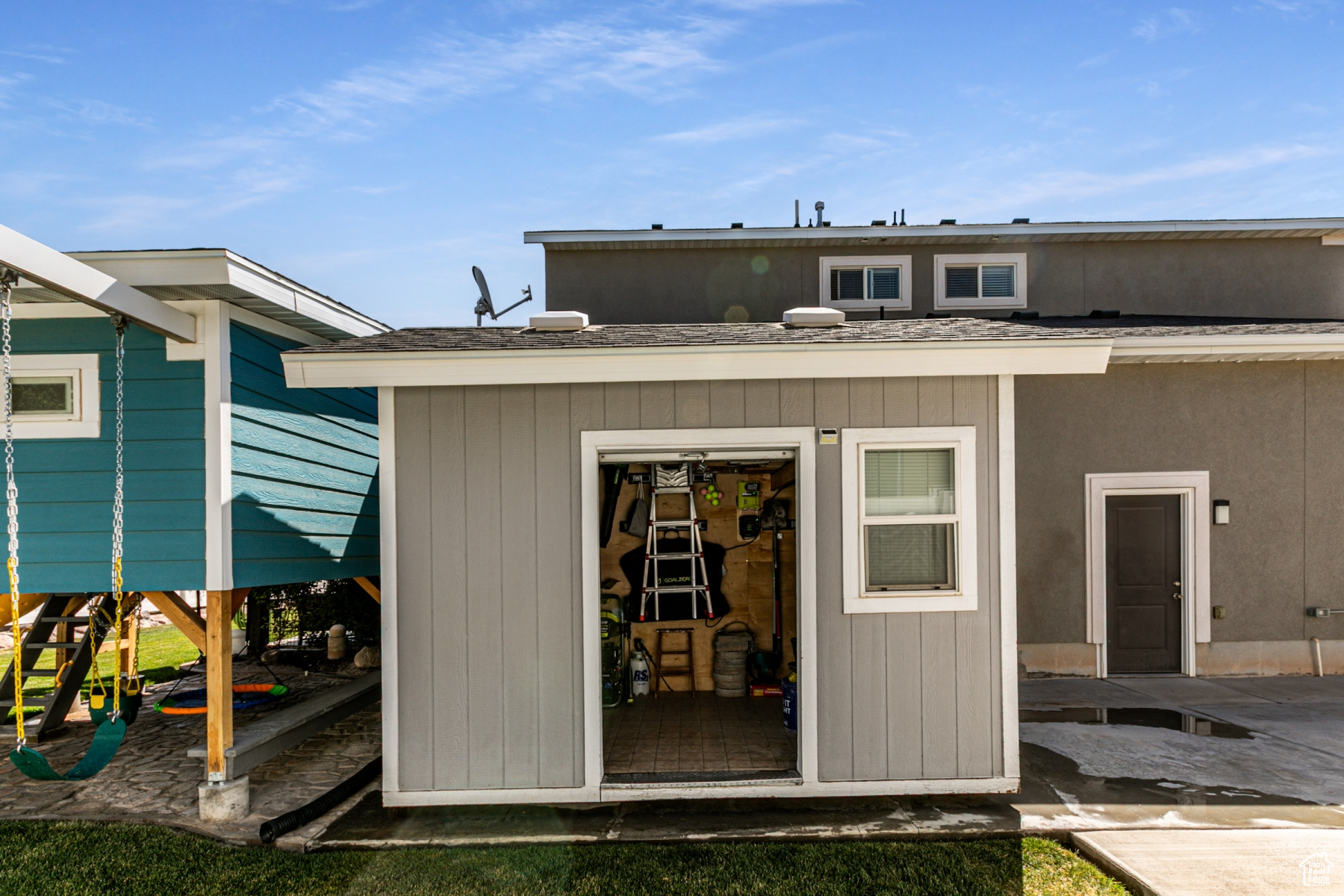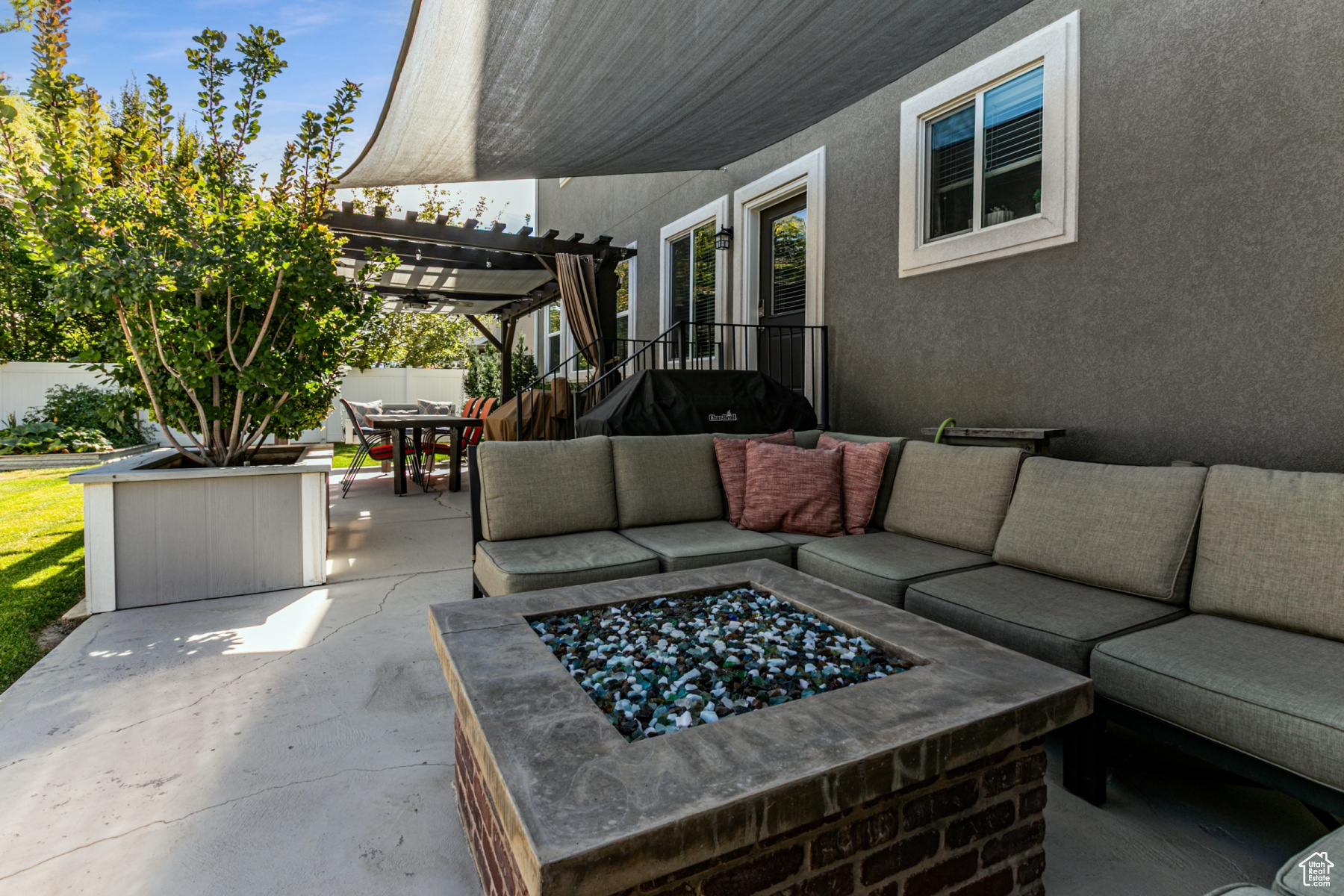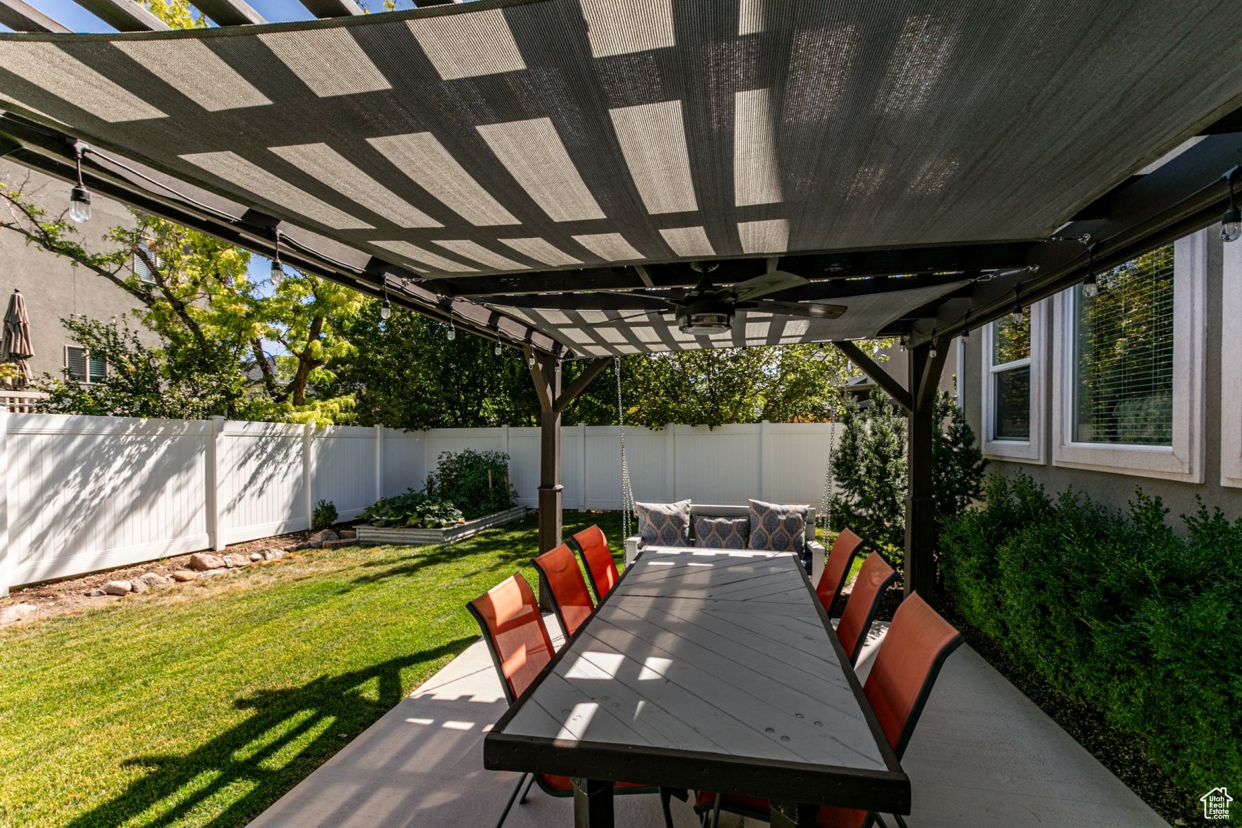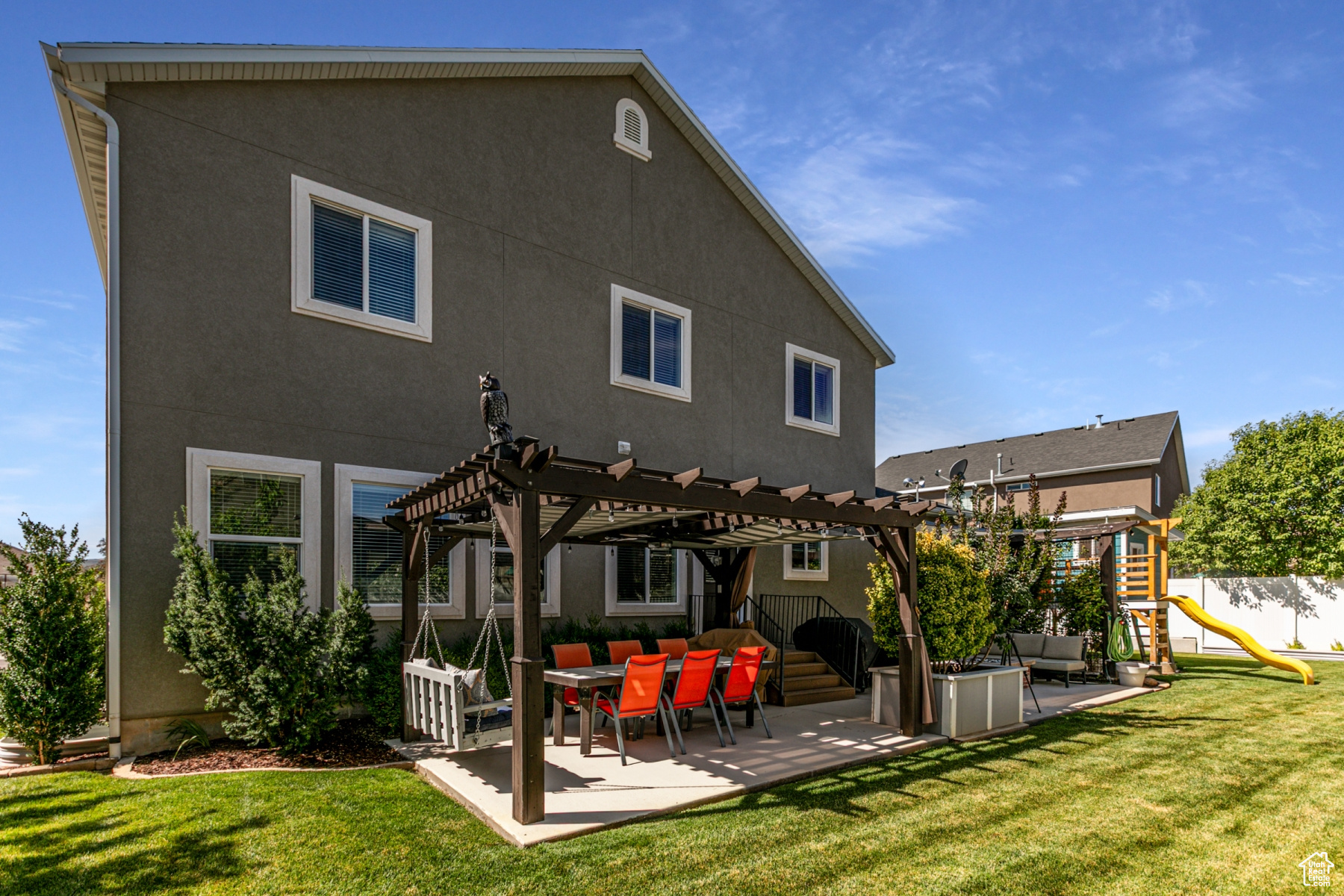 Immaculate 6-Bedroom Home with Dream Backyard and RV Parking in Riverton. Welcome to a meticulously maintained six-bedroom, four-bathroom home in a beautiful neighborhood where pride of ownership shows. This gorgeous home was built with 2x6 upgrade construction, blown-in insulation and boasts an energy efficient rating. A beautiful gas fireplace makes the primary living space cozy with the open kitchen/living room concept. You'll love how clean and perfectly maintained the home is. A wide staircase leads upstairs to four bedrooms and two bathrooms and a giant laundry room complete with a 6-basket laundry table. You've got to see it. Large closets, full bathrooms, wide hallways, a soaker tub in the master bath and utility room with an extra fridge gives this home all the wonderful extras. The basement can be used as a mother-in-law apartment with a mini kitchen and an extra room that does not have a closet. Furnace is new as of 11/24, is 97% efficient with 90000 BTU. This entertaining paradise includes plenty of parking, including large RV parking for toys and trailers, and a 30 amp RV power source on the side of the home. A shed with electricity, land a charming playhouse with swings are well situated on the property. The built-in has fireplace on the patio creates a cozy outdoor gather place and the patio is covered with pergolas, built-in lighting, and protective shade cells. Garden boxes and full landscaping create an outdoor paradise that is easy to maintain. Additional features include the 3-gar garage with dedicated woodshop space and lots of built in storage and shelves, as well as a sink. A community pool and clubhouse are available as well. A system of 8 cameras gives full view of the yard, porch and doors and is included iwth the property, as is the permanent holiday lighting. All appliances are included. Wide staircases and hallways give the home an extravagant feel. You've got to see it.