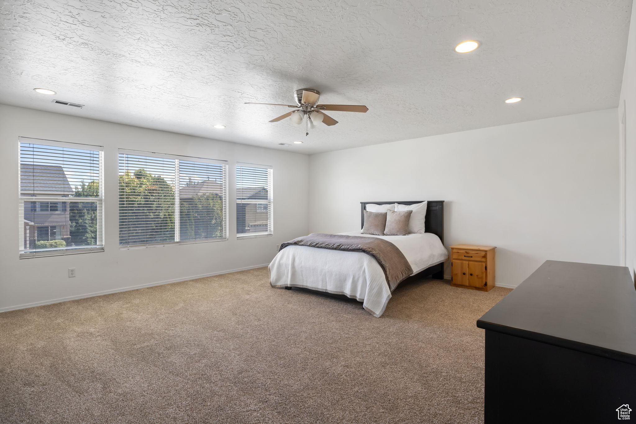 Ideal Lehi location with rarely found three car garage at this price. Located just minutes from Silicon Slopes, and I-15. Incredibly spacious two-story home with picturesque views! Enjoy this open floor plan with a gigantic must see primary suite (you won't believe the size of the primary suite walk -in closet). All bedrooms are boasting walk-in closets and ceiling fans. Brand new A/C system 2025. All new carpet throughout. The Loft can be easily be converted to a 4th bedroom. New front windows and newly added attic insulation add to the energy efficiency. This home also features an insulated three car garage with 8ft doors... plumbed gas hookup for garage heater, 220v and extra lighting. The dedicated RV space is more than a huge bonus. Step into the backyard and you will find new concrete with a beautifully landscaped outdoor retreat, lush greenery, inviting covered patio space and plenty of room for firepit nights. The neighborhood is serenely quiet with easy access to new shopping, food choices and hiking/biking trails.