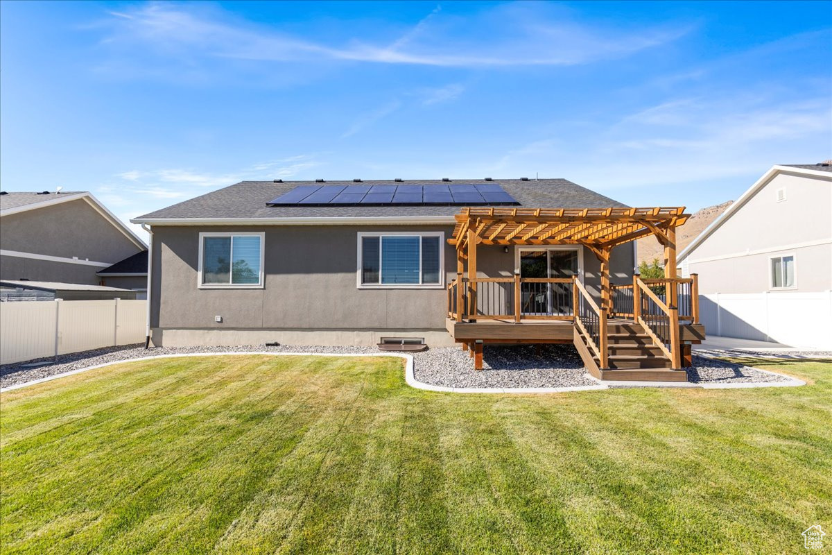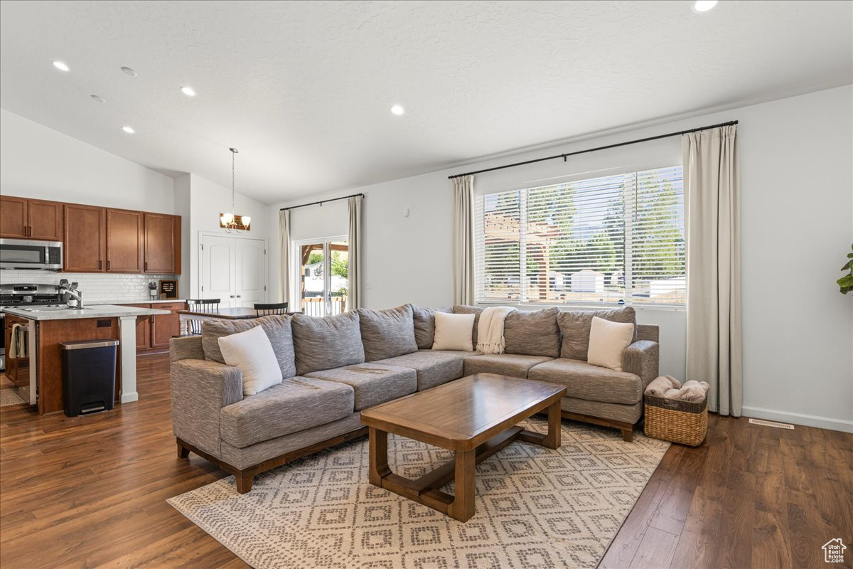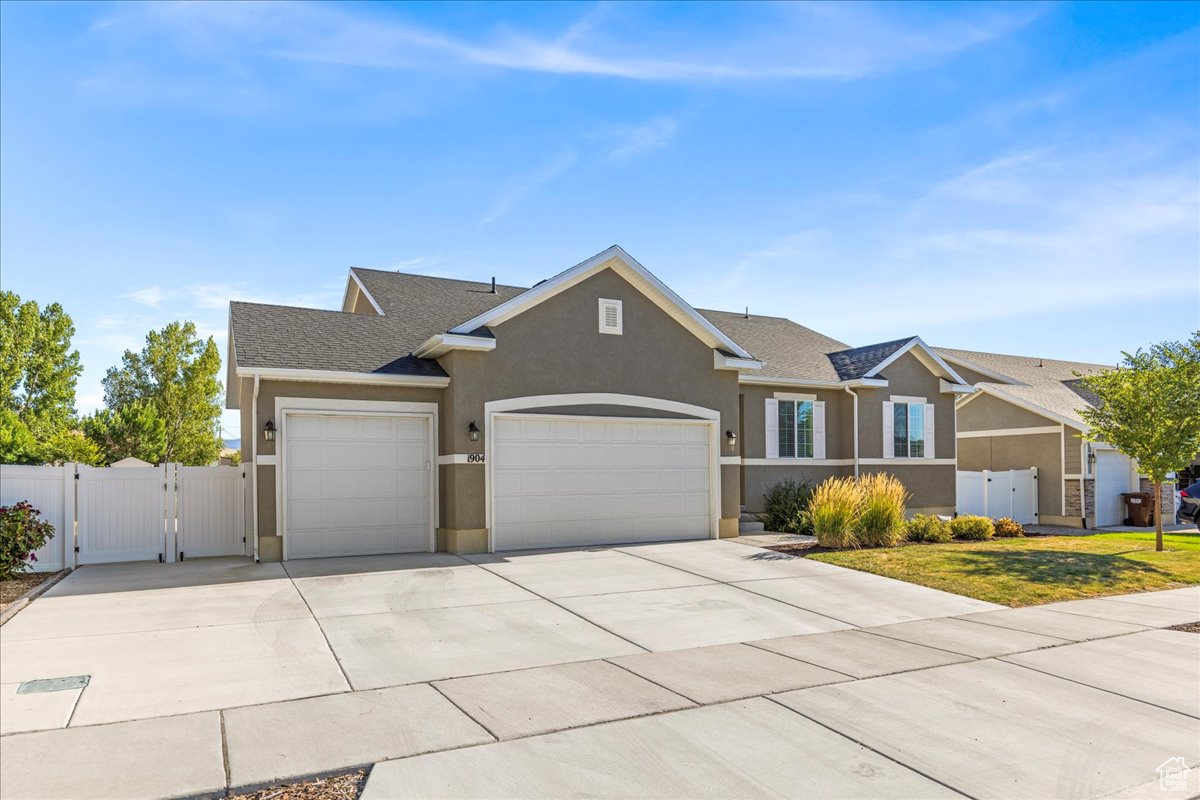 Your Dream Home Awaits! Discover the perfect balance of comfort and convenience in this beautifully designed 5-bedroom, 3.5-bathroom rambler, ideally located just 25 minutes from downtown Salt Lake City. Tucked away in a quiet setting yet close to everything, this home offers the lifestyle you've been searching for. Step into the open-concept main level where vaulted ceilings and natural light create a warm, inviting atmosphere. Whether you're hosting family gatherings or cozy evenings at home, the seamless layout makes entertaining effortless. Downstairs, the fully finished basement provides a spacious retreat-complete with a dedicated home office for productivity and private guest accommodations for added comfort. Outside, the professionally landscaped yard is ready for both relaxation and play. Enjoy summer evenings on the lush lawn, weekend barbecues, or simply unwind in your own backyard haven. The oversized 3-car garage offers plenty of room for vehicles, storage, and all your outdoor gear. This home isn't just a place to live-it's a place to thrive.
