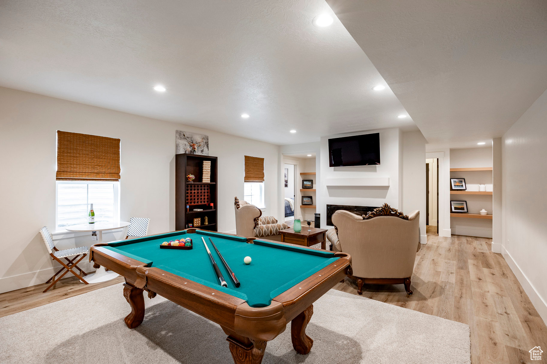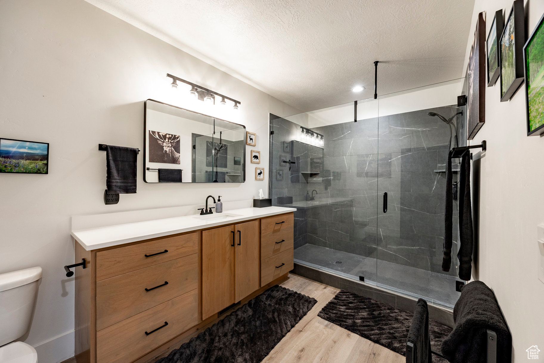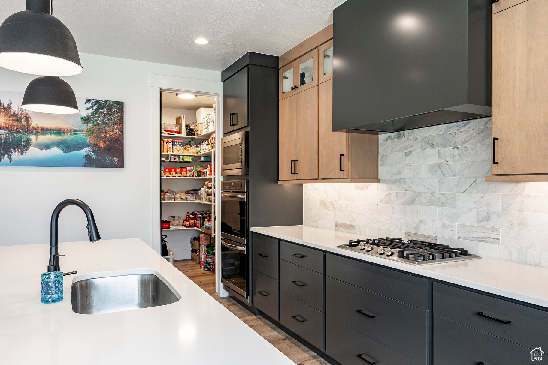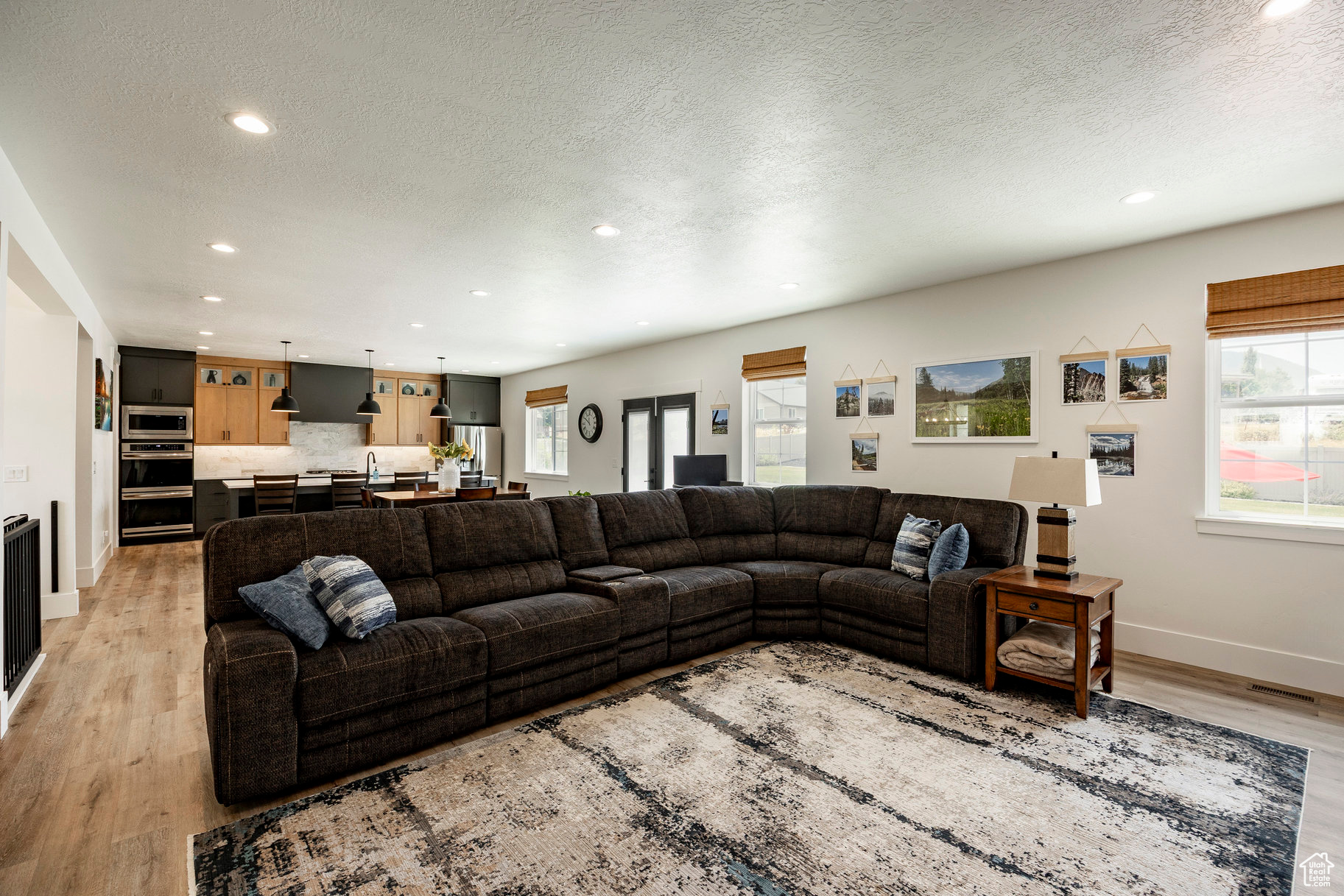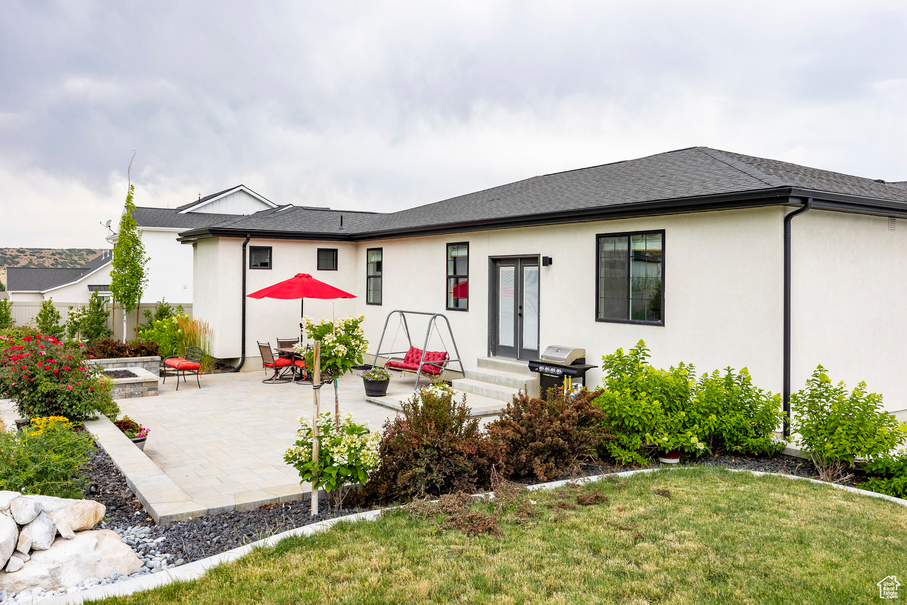 Absolutely striking 2022 custom-designed home in the serene community of Elk Ridge! This fully finished, 7-bedroom, 4-bath home offers custom finishes throughout with an ideal open floor plan designed for comfort and entertaining. You'll love the gourmet kitchen featuring quartz countertops, modern cabinetry, double ovens and a large custom island plus a deluxe walk-in pantry. The primary suite includes an oversized walk-in closet and a spa-inspired bathroom featuring a double vanity, glass encased tiled shower and separate soaking tub. And to provide additional comfort and organization, one of the bedrooms has been transformed to a functional and stunning walk-in closet with custom built-ins. Step outside to the fully landscaped, fenced yard and expansive hand-laid paver patio with gas fire pit, which showcases Dixon Peak. The massive 3-car garage is fully finished with extra tall doors, epoxy flooring and a 220-volt outlet for your EV. The side drive is perfect for storing all of your recreational toys. Additional features include extra tall ceilings (9'), two fireplaces, a sleek downstairs dry bar, in-floor HVAC ducting in the basement that allows for maximum ceiling height, customized bedroom closets and built-in cabinets and open shelving in both family rooms.