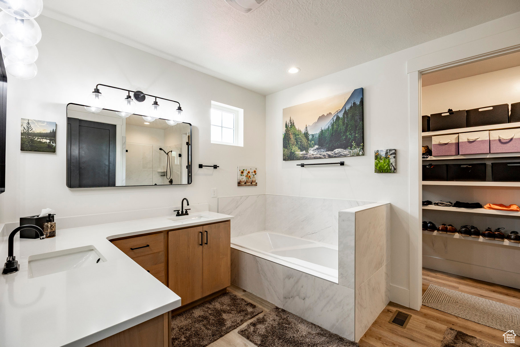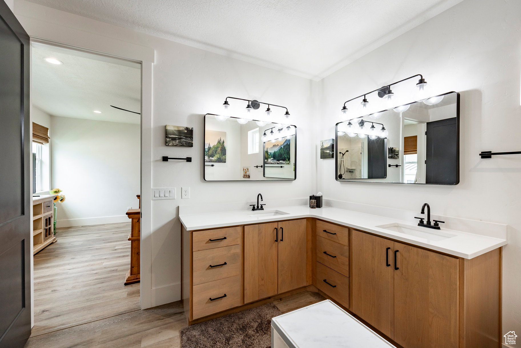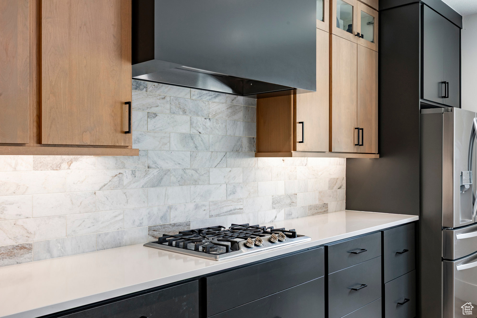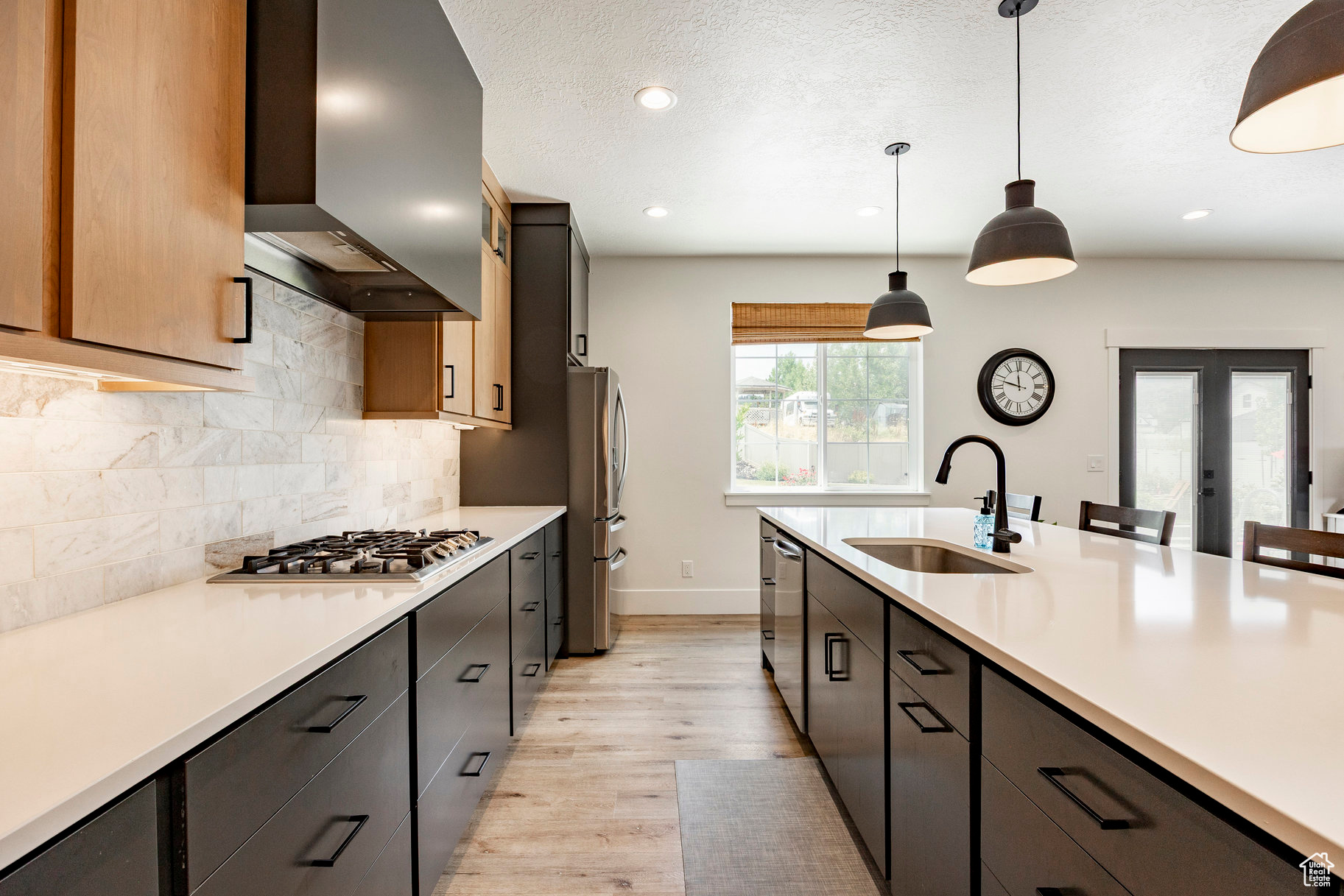 Absolutely striking 2022 custom-designed home in the serene community of Elk Ridge! This fully finished, 7-bedroom, 4-bath home offers custom finishes throughout with an ideal open floor plan designed for comfort and entertaining. You'll love the gourmet kitchen featuring quartz countertops, modern cabinetry, double ovens and a large custom island plus a deluxe walk-in pantry. The primary suite includes an oversized walk-in closet and a spa-inspired bathroom featuring a double vanity, glass encased tiled shower and separate soaking tub. And to provide additional comfort and organization, one of the bedrooms has been transformed to a functional and stunning walk-in closet with custom built-ins. Step outside to the fully landscaped, fenced yard and expansive hand-laid paver patio with gas fire pit, which showcases Dixon Peak. The massive 3-car garage is fully finished with extra tall doors, epoxy flooring and a 220-volt outlet for your EV. The side drive is perfect for storing all of your recreational toys. Additional features include extra tall ceilings (9'), two fireplaces, a sleek downstairs dry bar, in-floor HVAC ducting in the basement that allows for maximum ceiling height, customized bedroom closets and built-in cabinets and open shelving in both family rooms.