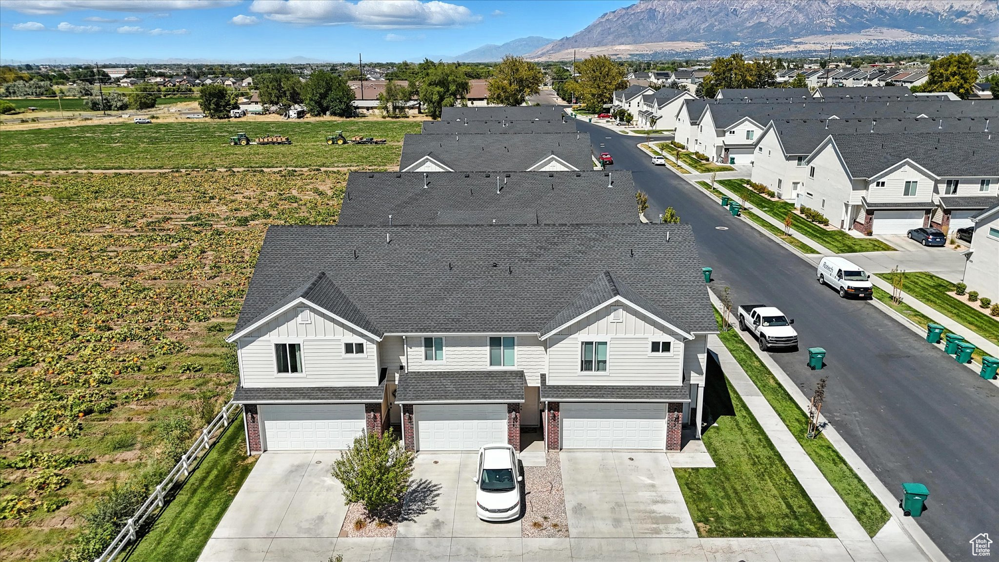 Darling end-unit townhouse with mountain views and a charming pumpkin patch next door! This home has been meticulously cared for and is truly move-in ready. The seller just installed a brand-new fence around the private patio, perfect for relaxing or entertaining. Step inside to a bright and open great room with 9' ceilings and large windows that fill the space with natural light. The kitchen and bathrooms feature beautiful quartz countertops, and all appliances-including the washer and dryer-are included. An oversized 2-car garage provides plenty of storage, making this home as functional as it is inviting. The home is conveniently located just 5 minutes from freeway access making for an easy commute in any direction. Don't miss your chance to own this well-loved townhouse! Square footage figures are provided as a courtesy estimate only and were obtained from a recent appraisal. Buyer is advised to obtain an independent measurement.