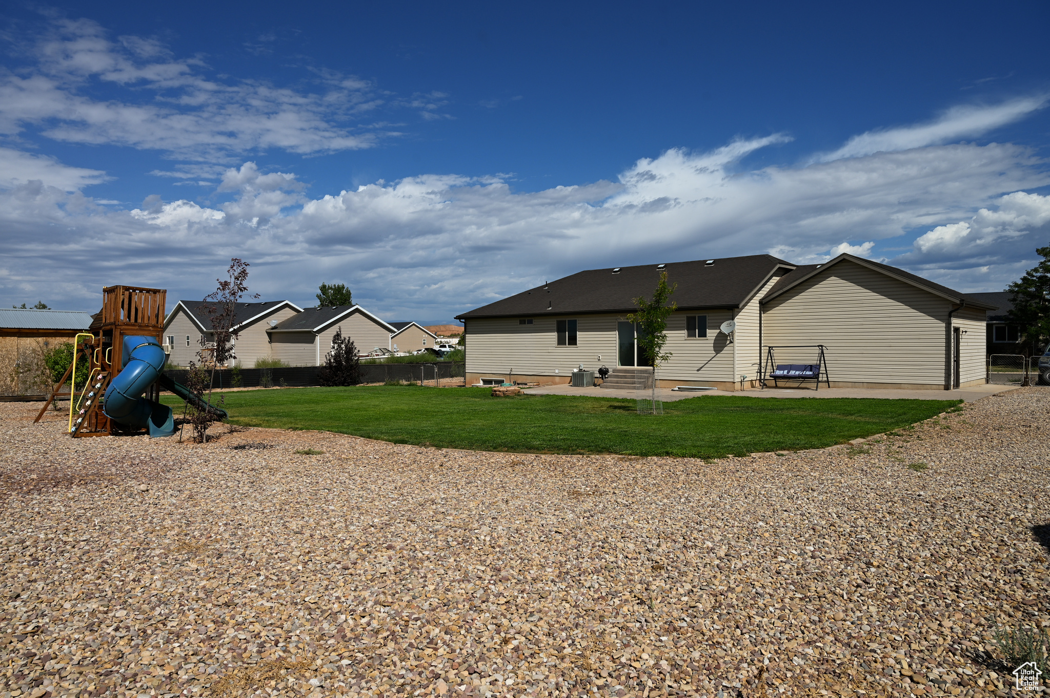 **HUGE PRICE DROP** This beautiful Roosevelt home offers four bedrooms and three full bathrooms with plenty of space for comfortable family living. Set on a nearly half-acre lot, the property is fully fenced to ensure a safe and welcoming environment for children and pets. The yard is thoughtfully landscaped with recently planted fruit and shade trees, while a children's playset, thriving garden, and gated side yard-ideal for a dog run or extra storage-add the perfect blend of fun and function. Inside, fresh flooring, a fully finished basement, and a spacious layout provide versatile living areas for every need. With a two-car garage and modern convenience throughout, this recently built home is move-in ready and waiting for your family to make it their own.