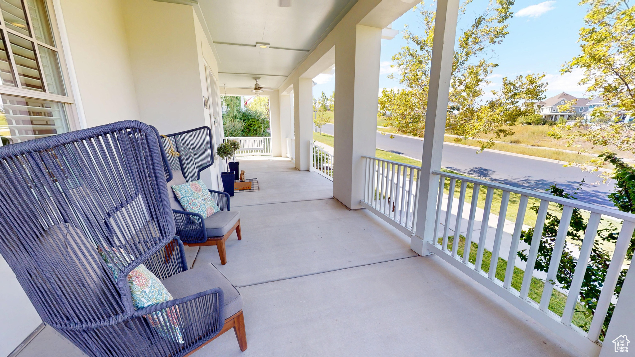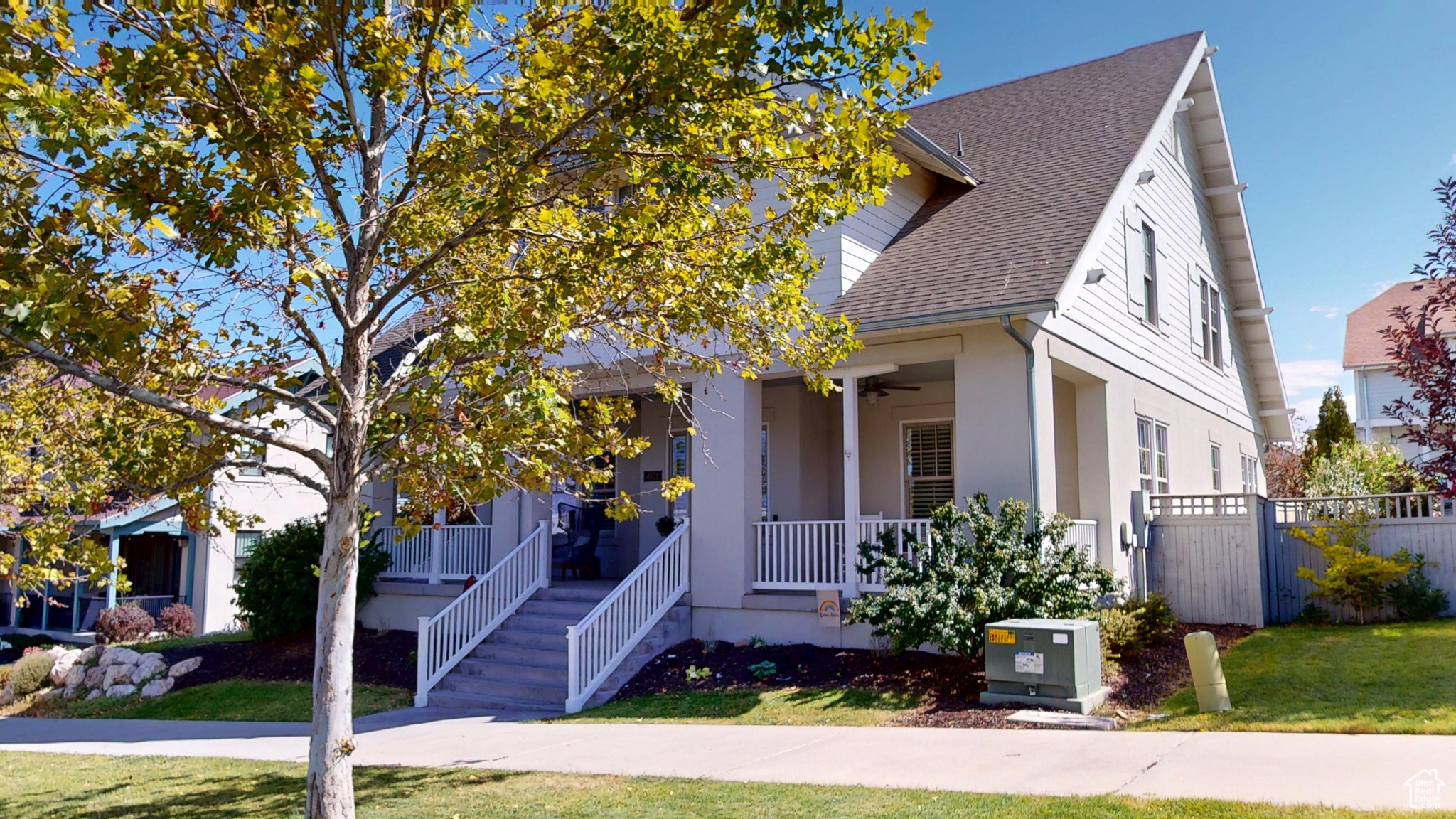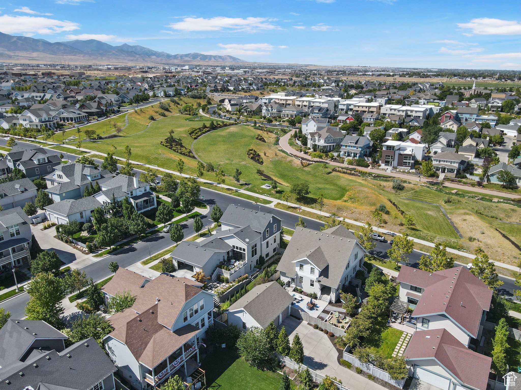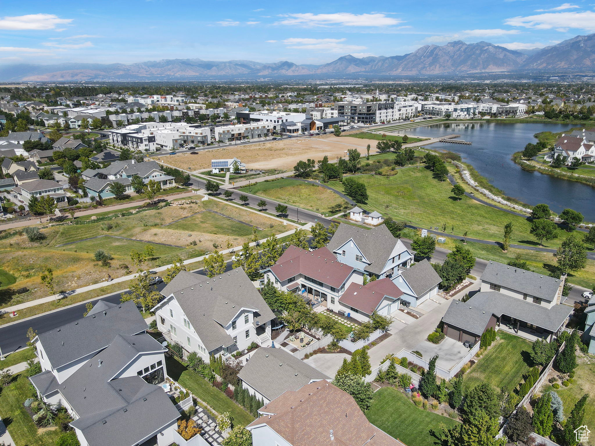 Amid the beautiful homes springing up in Daybreak, this one truly stands out. With its modern craftsman design, this home exudes elegance, blending timeless style with just the right amount of standout features. A spacious front porch, complete with ceiling fans, included porch swing, and inviting sitting areas, makes it the perfect spot to unwind and watch the neighborhood come to life or enjoy views of the mountain and Oquirrh Lake just down the street. Inside, a formal foyer opens to the dining and living areas, creating a sense of flow and space. The centerpiece of the living room is a stunning marble fireplace with lit shelving, adding both warmth and sophistication. Large windows throughout the home let in an abundance of natural light, highlighting the upgraded lighting, plantation shutters, and rich hardwood floors that tie everything together. The kitchen is a true showstopper, featuring sleek white shaker cabinets with glass front upper boxes, beautiful granite countertops, and a large island with ample seating. With top-of-the-line Caf smart appliances and glass pendant lighting, it's a space built for both functionality and style. Vaulted 18-foot ceilings open up to the loft, creating an airy, open feel. Spacious walk-in closets complete the bedrooms, and the primary suite is a private oasis with luxurious finishes. Both the main floor and upper floor feature dedicated laundry rooms, each with included washers and dryers-no more hauling laundry up and down. Recently replaced carpet and a new stair runner add to the home's fresh appeal. Downstairs, the fully custom finished basement is a highlight. From the executive-style home office, complete with alder cabinetry, wainscoting, wet bar, microwave, and mini-fridge, to the granite fireplace and hickory wood floors, no detail was overlooked. It's a space that must be seen to be fully appreciated. The wet bar adds even more convenience for hosting guests. Outside, the backyard is a true retreat, featuring a spacious entertainment area with a fire pit sitting area and even an included trampoline-perfect for fun and gatherings. The oversized garage has been thoughtfully finished with mud and paint, offering extra height, included storage, and added length for your convenience. The home also includes a fully fenced yard, a three-car detached garage, and an extra-long driveway. Across the street, enjoy a park with a walking path that leads to Oquirrh Lake, as well as nearby amenities like a playground, pool, and playing field. This home offers an exceptional blend of style, function, and comfort both inside and out. Square footage figures are provided as a courtesy estimate only and were obtained from County Records. Buyer is advised to obtain an independent measurement.