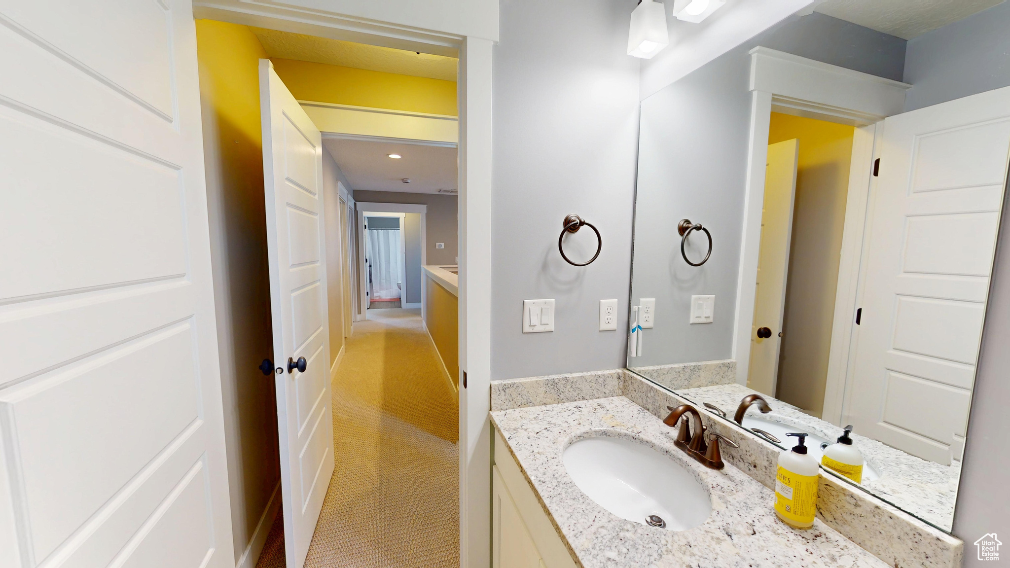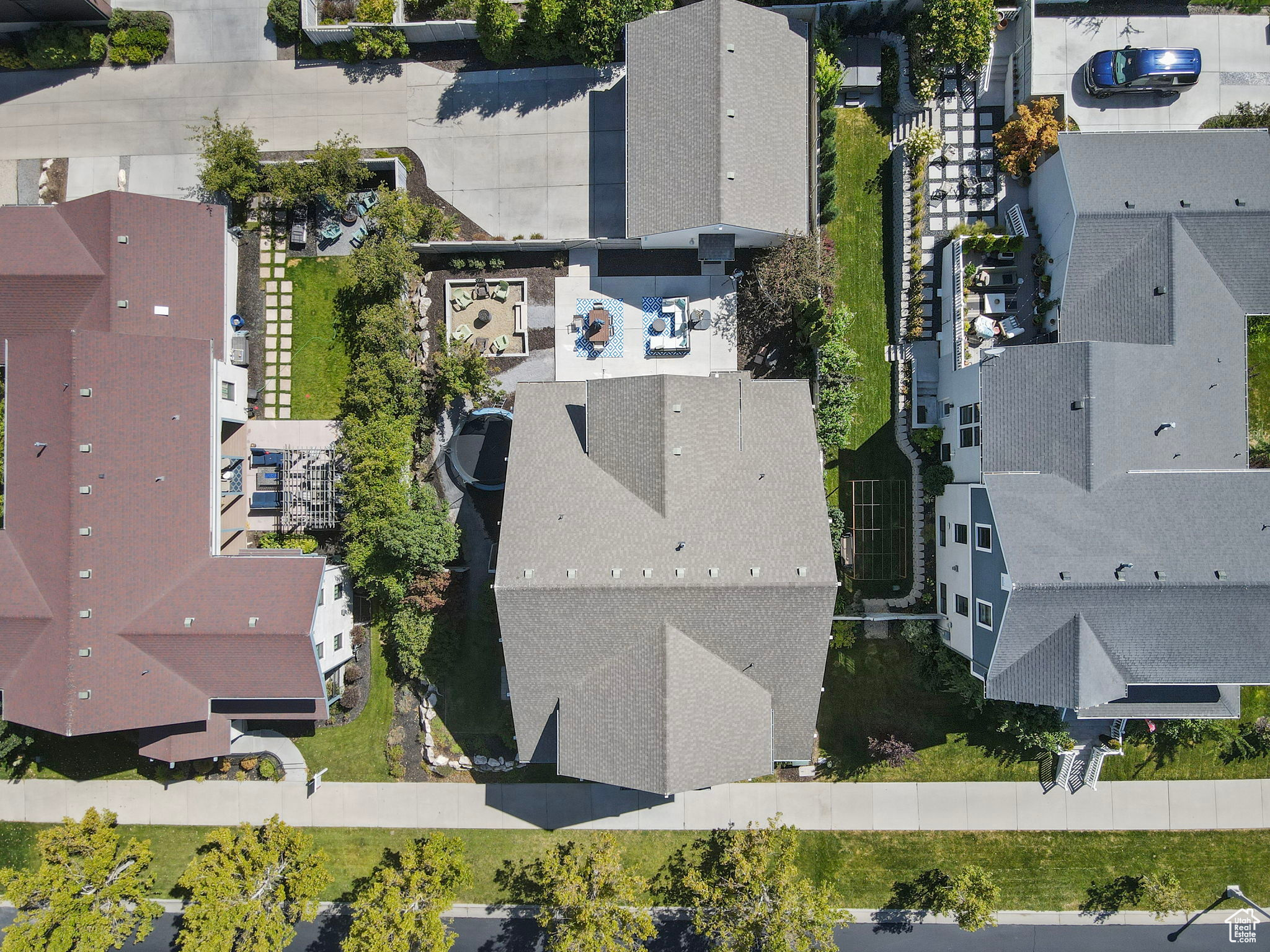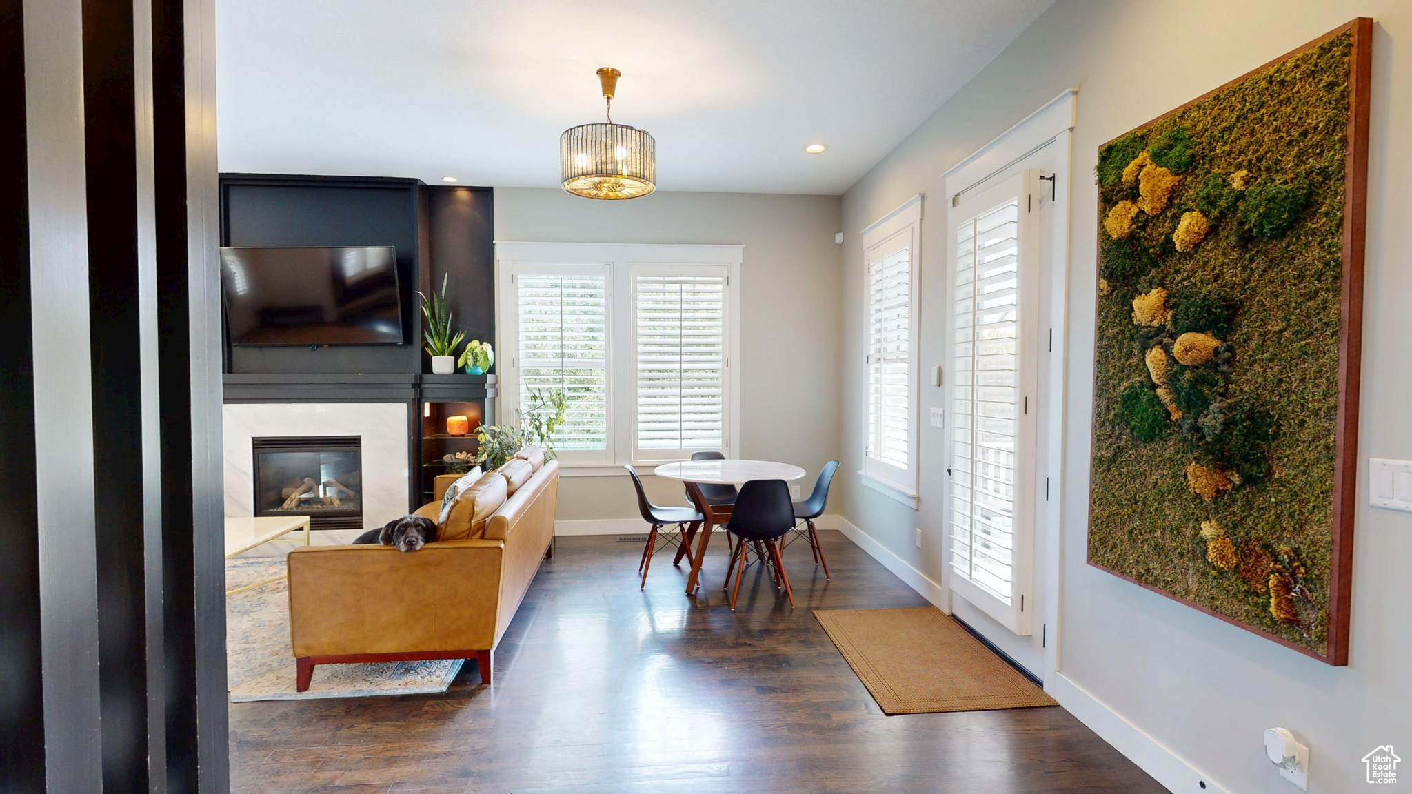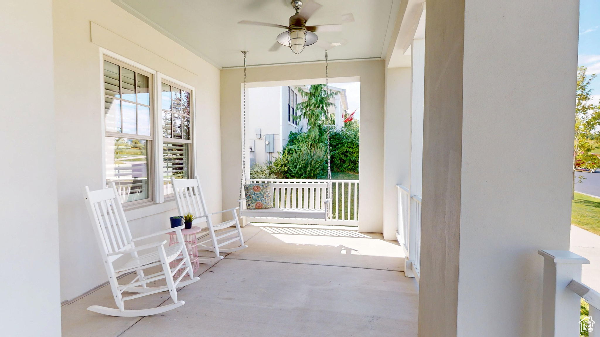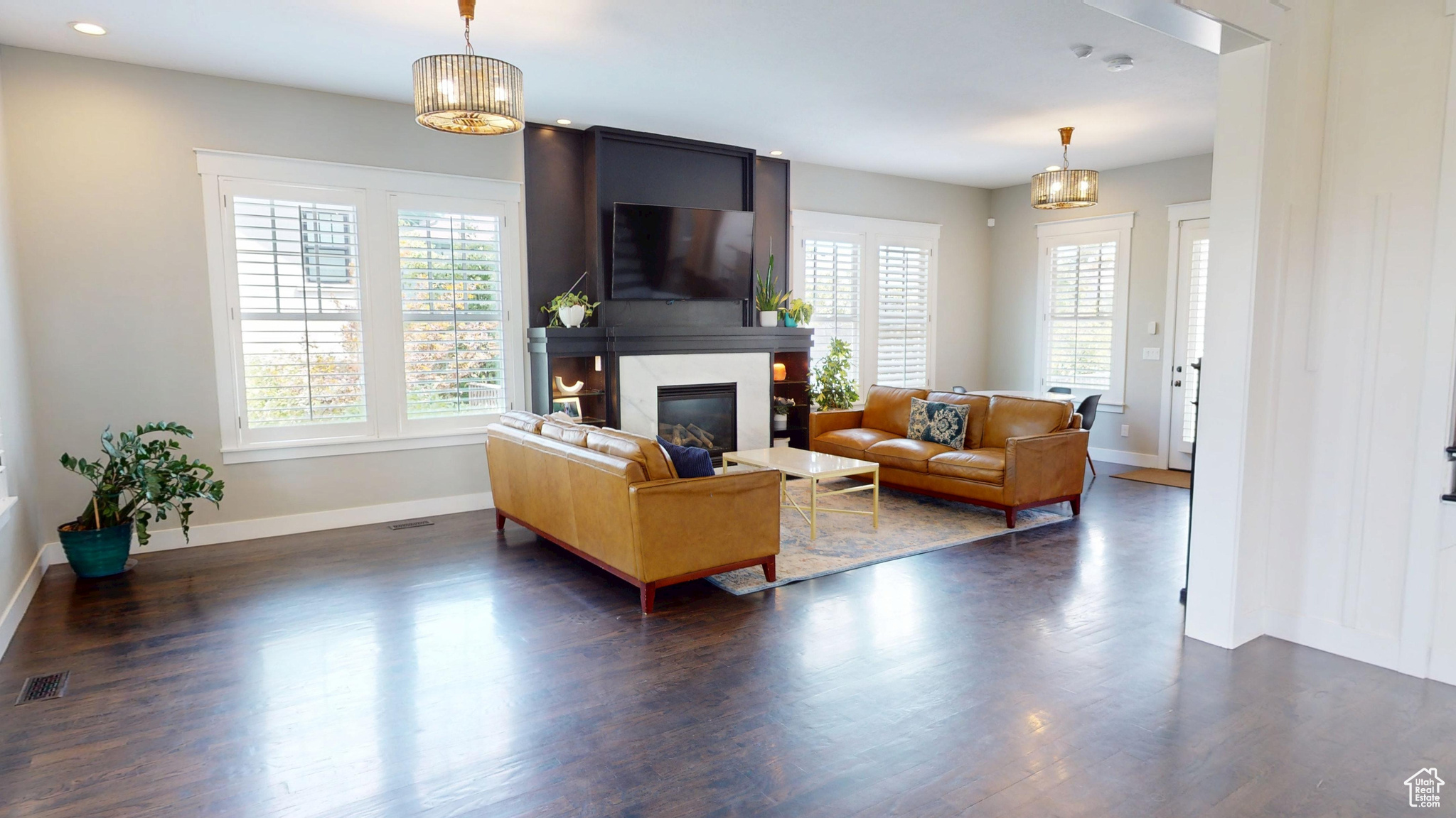 Amid the beautiful homes springing up in Daybreak, this one truly stands out. With its modern craftsman design, this home exudes elegance, blending timeless style with just the right amount of standout features. A spacious front porch, complete with ceiling fans, included porch swing, and inviting sitting areas, makes it the perfect spot to unwind and watch the neighborhood come to life or enjoy views of the mountain and Oquirrh Lake just down the street. Inside, a formal foyer opens to the dining and living areas, creating a sense of flow and space. The centerpiece of the living room is a stunning marble fireplace with lit shelving, adding both warmth and sophistication. Large windows throughout the home let in an abundance of natural light, highlighting the upgraded lighting, plantation shutters, and rich hardwood floors that tie everything together. The kitchen is a true showstopper, featuring sleek white shaker cabinets with glass front upper boxes, beautiful granite countertops, and a large island with ample seating. With top-of-the-line Caf smart appliances and glass pendant lighting, it's a space built for both functionality and style. Vaulted 18-foot ceilings open up to the loft, creating an airy, open feel. Spacious walk-in closets complete the bedrooms, and the primary suite is a private oasis with luxurious finishes. Both the main floor and upper floor feature dedicated laundry rooms, each with included washers and dryers-no more hauling laundry up and down. Recently replaced carpet and a new stair runner add to the home's fresh appeal. Downstairs, the fully custom finished basement is a highlight. From the executive-style home office, complete with alder cabinetry, wainscoting, wet bar, microwave, and mini-fridge, to the granite fireplace and hickory wood floors, no detail was overlooked. It's a space that must be seen to be fully appreciated. The wet bar adds even more convenience for hosting guests. Outside, the backyard is a true retreat, featuring a spacious entertainment area with a fire pit sitting area and even an included trampoline-perfect for fun and gatherings. The oversized garage has been thoughtfully finished with mud and paint, offering extra height, included storage, and added length for your convenience. The home also includes a fully fenced yard, a three-car detached garage, and an extra-long driveway. Across the street, enjoy a park with a walking path that leads to Oquirrh Lake, as well as nearby amenities like a playground, pool, and playing field. This home offers an exceptional blend of style, function, and comfort both inside and out. Square footage figures are provided as a courtesy estimate only and were obtained from County Records. Buyer is advised to obtain an independent measurement.