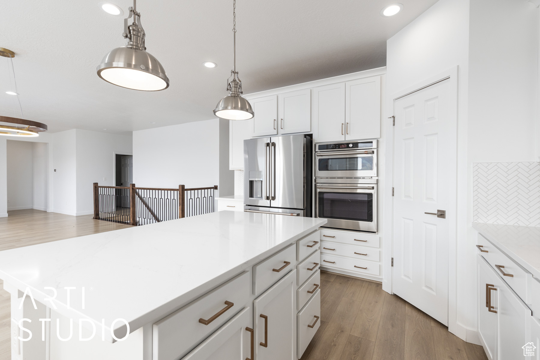 Step into this beautifully maintained one-owner custom rambler, offering nearly 4,000 square feet of thoughtfully designed living space on a .28-acre lot. With 5 spacious bedrooms, 3.5 bathrooms, and a 3-car garage featuring an epoxy-coated floor, this home combines elegance with everyday function. Soaring 9-foot ceilings on both levels of the home create an open, airy feel throughout. The gourmet kitchen is a chef's dream, featuring quartz countertops, GE Caf appliances including a convection/microwave combo double oven, and a reverse osmosis water purification system. The inviting great room centers around a sleek Frame TV mounted above a timber mantel and modern linear fireplace-perfect for entertaining or relaxing in style. The luxurious master suite includes dual closets (one walk-in), a spa-like bath with a jetted tub, separate Euro-glass shower, and double sinks. Additional highlights include a main-level office with French doors, top-down/bottom-up blinds, main-level laundry, and a fully finished walk-out basement with 9-foot ceilings, large family room, and generously sized bedrooms with walk-in closets. Enjoy energy-efficient upgrades and amenities like a tankless water heater, smart thermostat, and water softener. Outside, the fully fenced yard features a large patio and Wi-Fi controlled automatic sprinklers-ideal for easy outdoor living.
