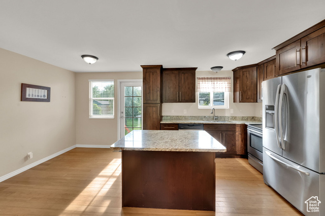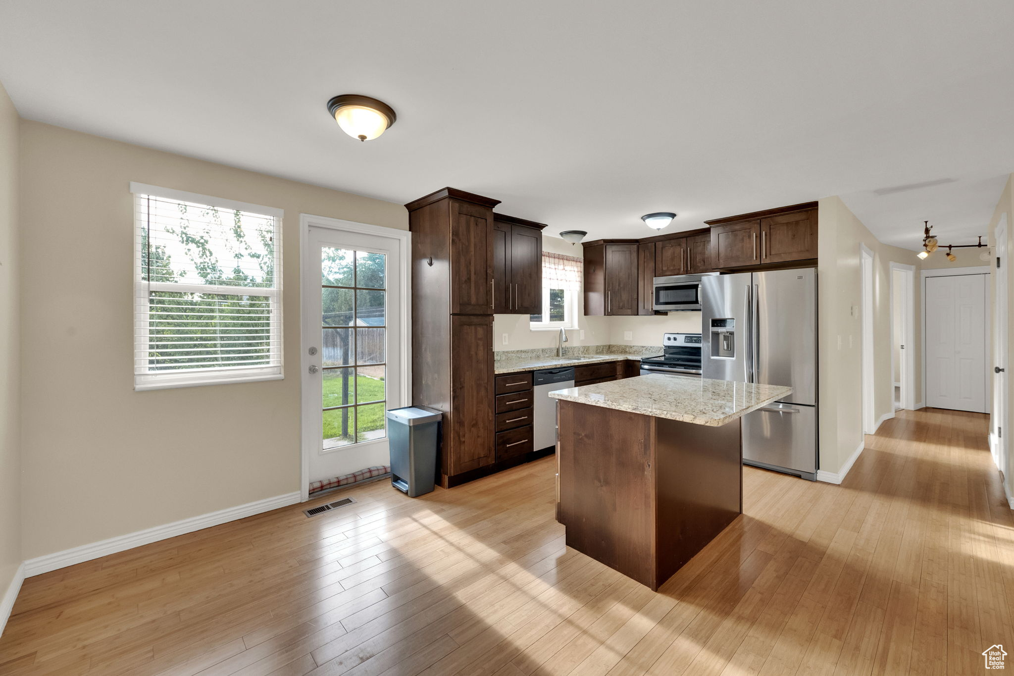 Welcome home! This spacious 2,000 sq. ft. rambler features 5 bedrooms and 2 bathrooms on a .18-acre lot. The home offers a beautifully finished dark wood kitchen that brings warmth and elegance to the heart of the home. The primary bathroom is stylish and inviting, and the generous floor plan provides plenty of room for both everyday living and entertaining. With two family rooms, there's ample space to host gatherings or create separate areas for relaxation. Outside, enjoy a private yard with a convenient storage shed, perfect for extra space and functionality. Centrally located with easy access to I-15 and I-215, this home is close to restaurants, shopping, and other amenities. Ideal for both comfort and convenience. Schedule your showing today!
