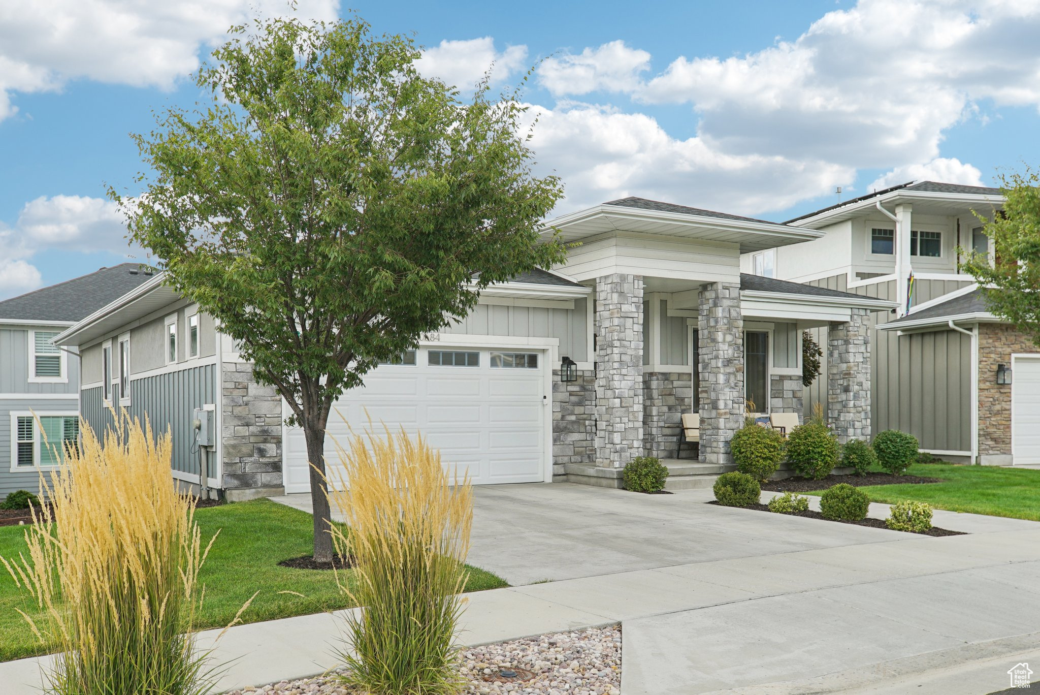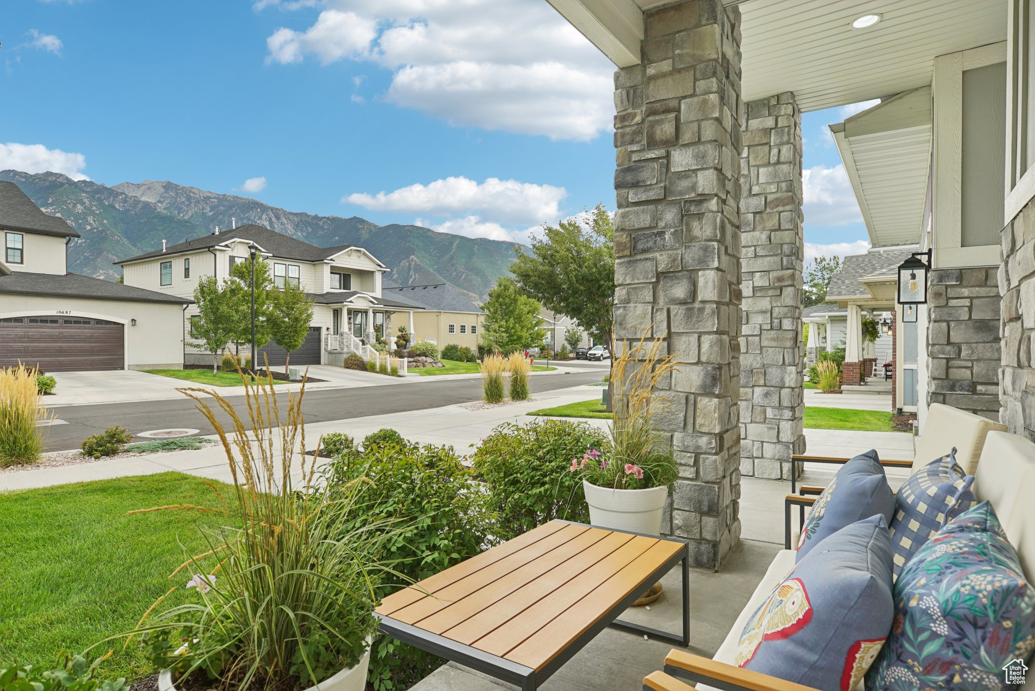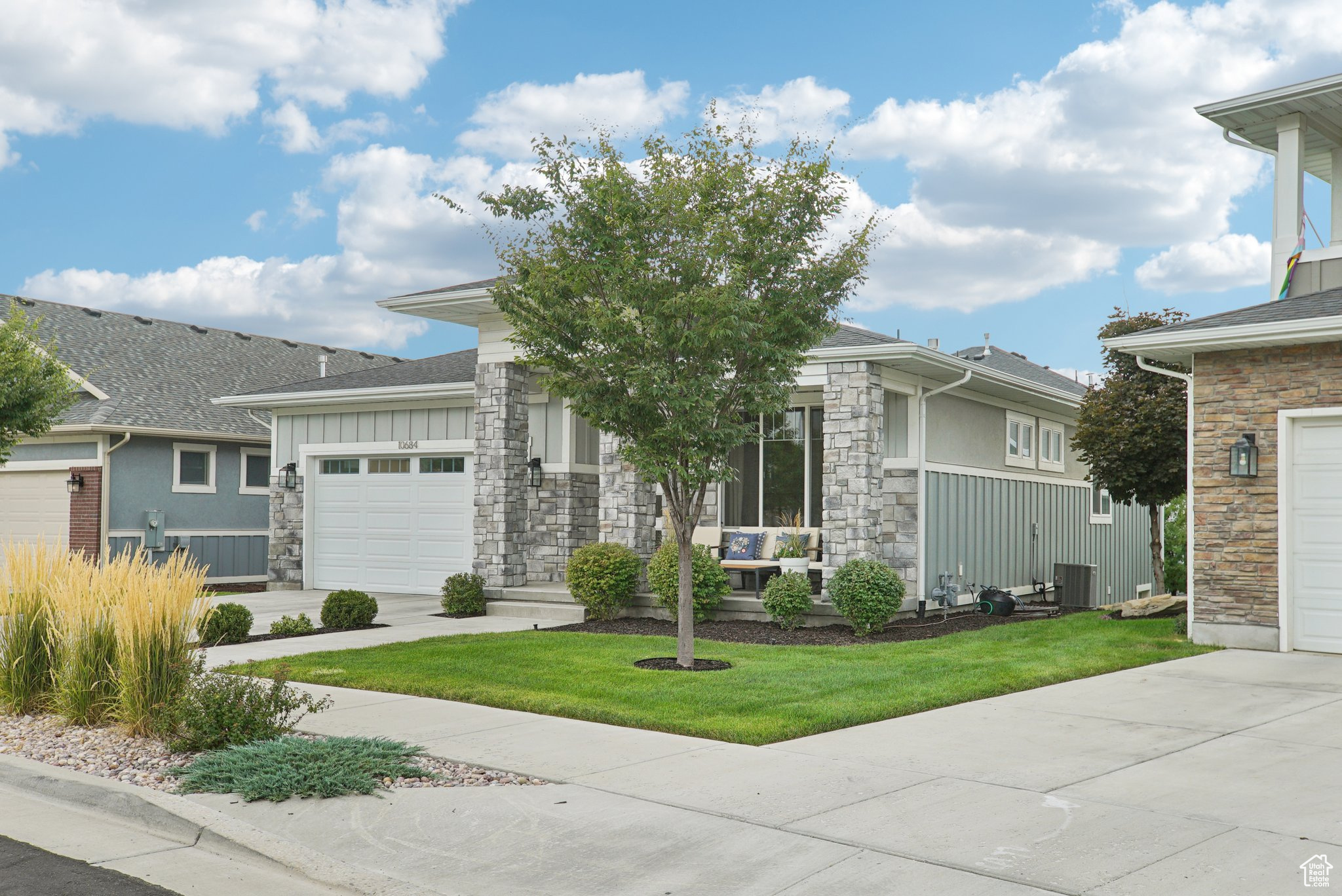 Beautifully built and well-kept home featuring 4 spacious bedrooms and 3 bathrooms. This property has been well maintained, it has full landscaping with stunning curb appeal and a modern exterior design and main level living. Enjoy wonderful evenings on the front porch looking at the mountains. The garage includes sleek epoxy flooring and built-in shelving for convenient storage. Inside, enjoy a versatile bonus room and a dedicated gym room in the basement, perfect for your fitness needs. Just a 1-minute walk to Dimple Dell Regional Park, offering endless outdoor recreation and scenic trails right at your doorstep. Pickleball and basketball courts are right around the corner, and the home is connected to an HOA, adding extra amenities and convenience. square footage figures, are provided as a courtesy only, buyer and buyer agent to verify all. Please note that all yard areas are maintained by the HOA, and fencing in any common space is not permitted.